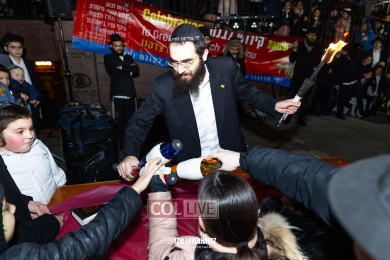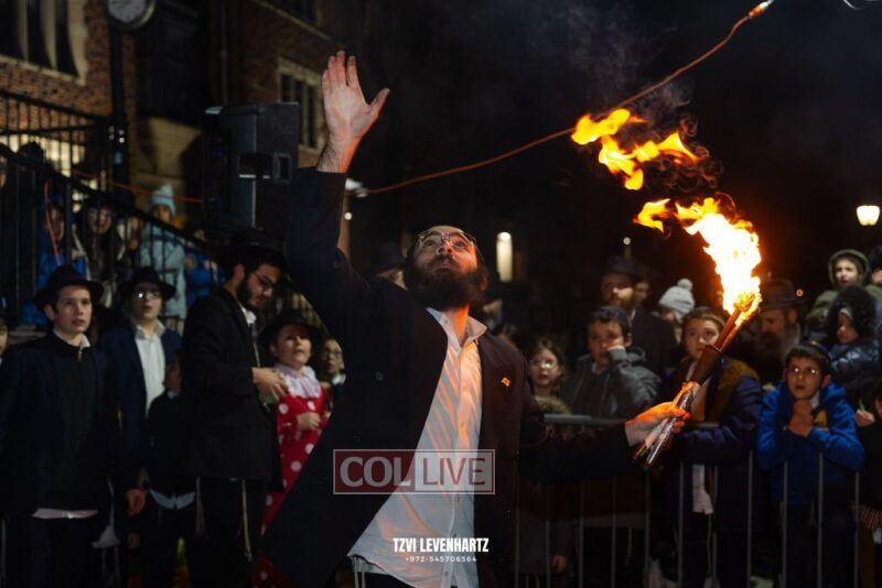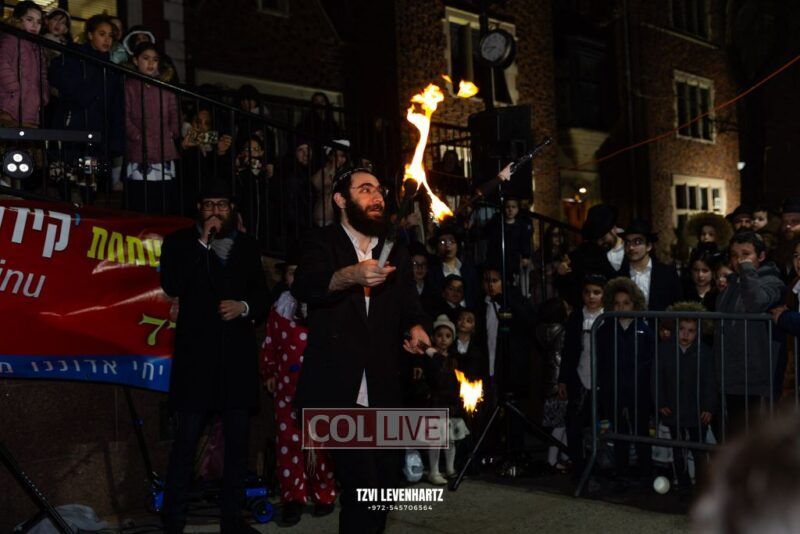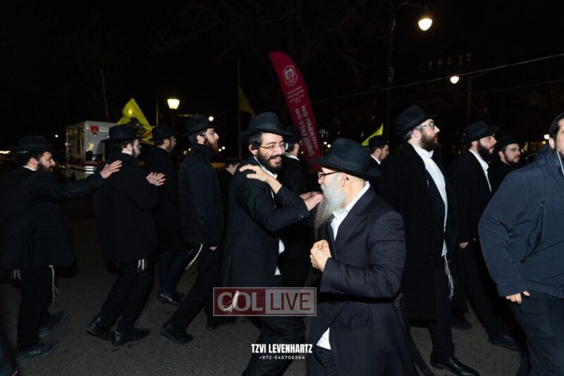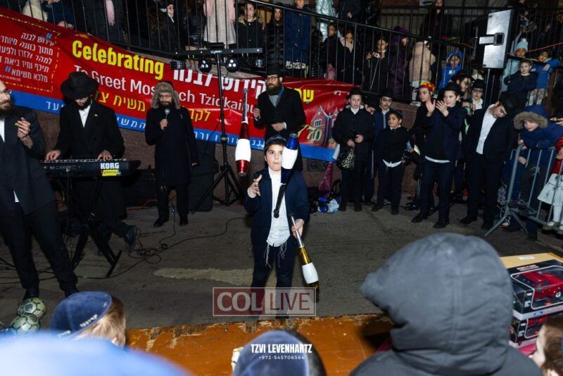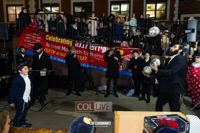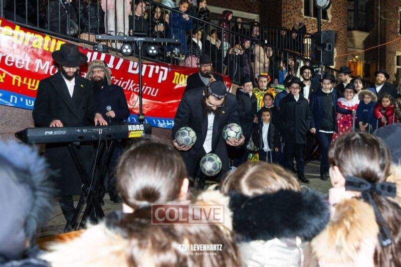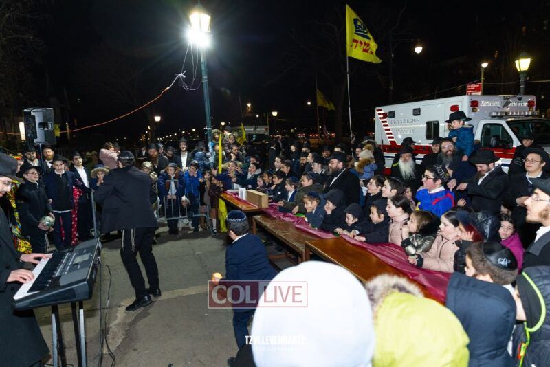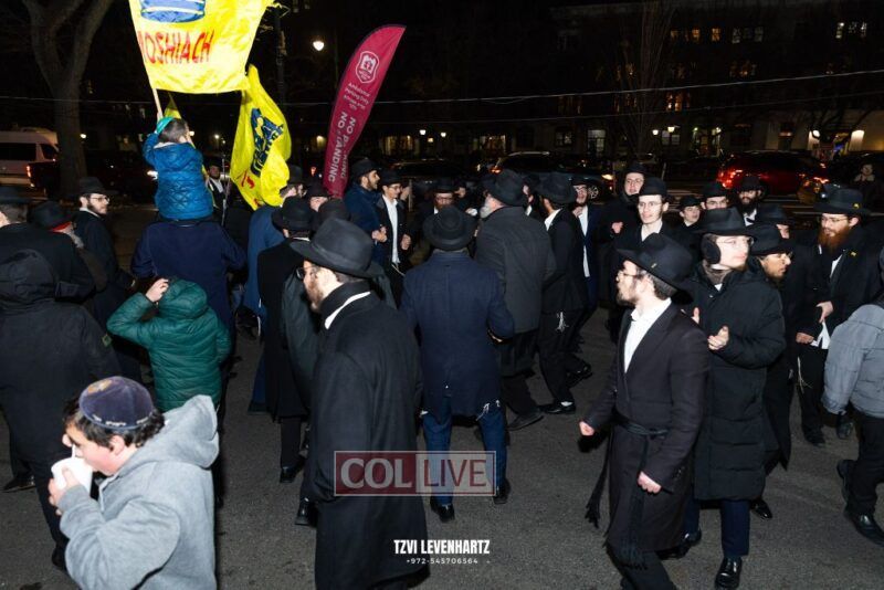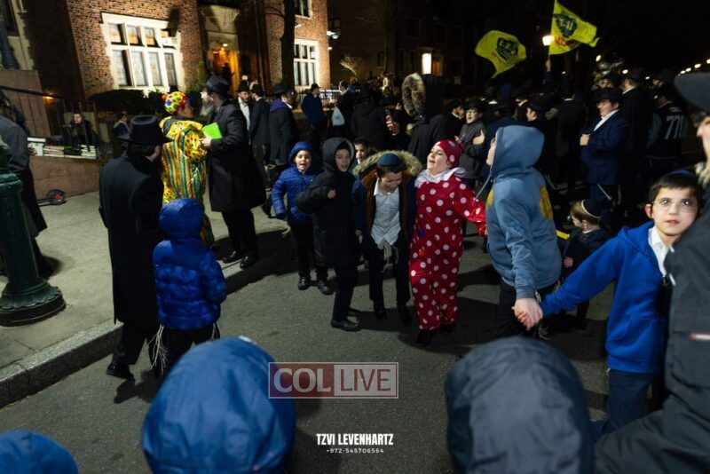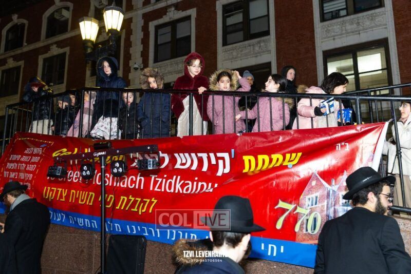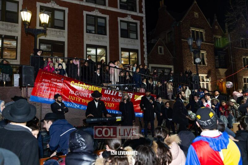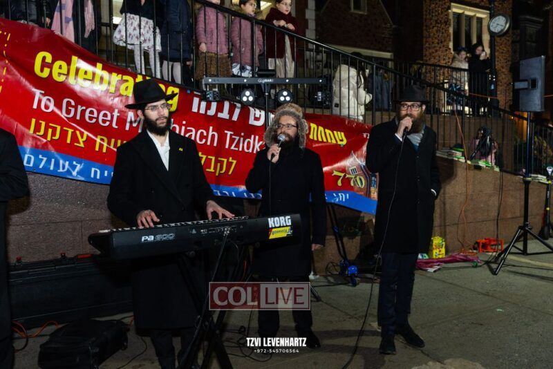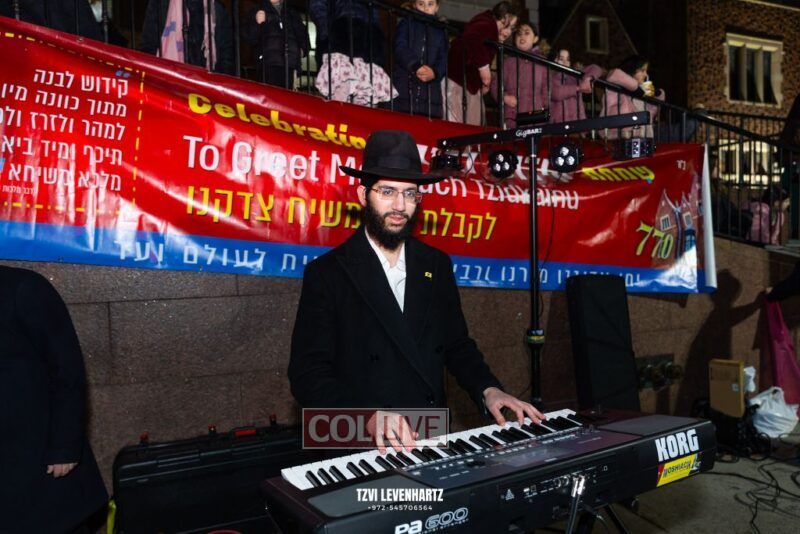 Joyous dancing to live music with singers Yisroel Shmueli and Chony Zucker took place at 770 Eastern Parkway on Motzei Shabbos celebrating Kiddush Levana in the month of Adar. Photos
