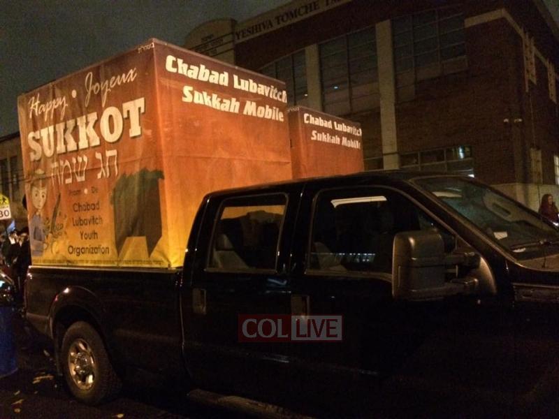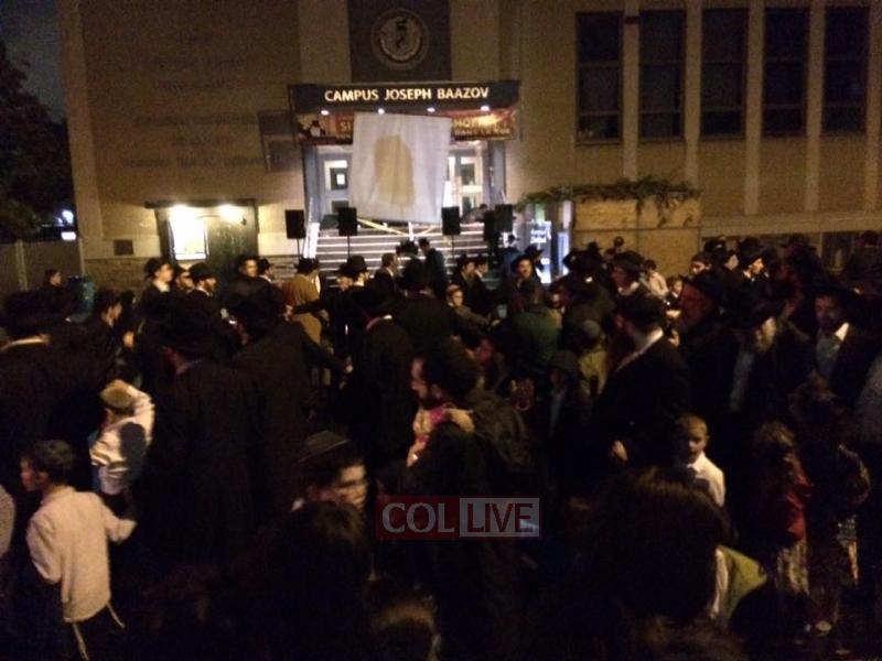 The Montreal Chabad community celebrated Simchas Beis HaSho'eiva in front of the Lubavitch Yeshiva with live music, dancing in the rain and a barbecue. Photos