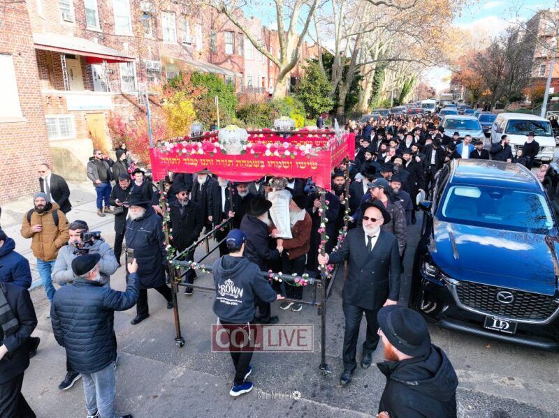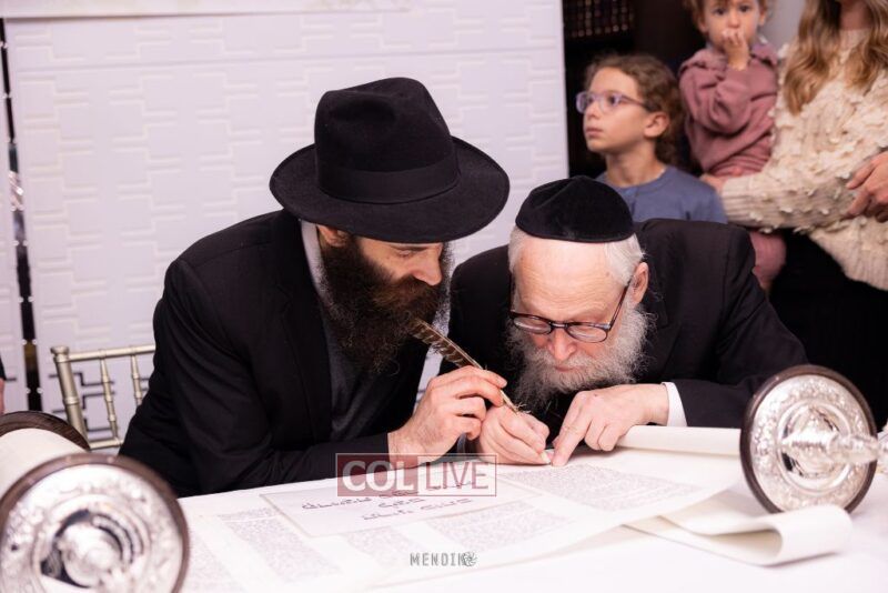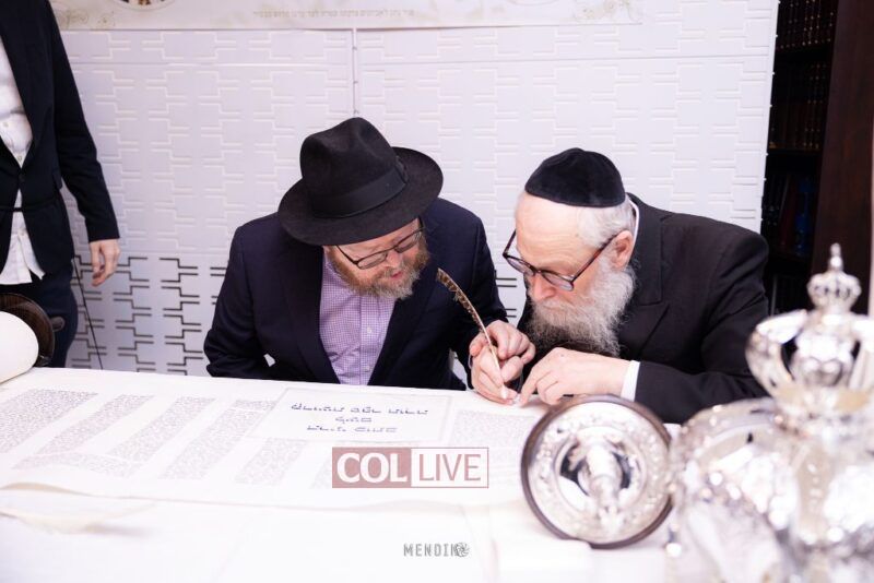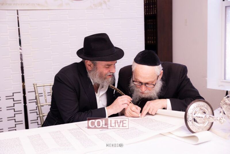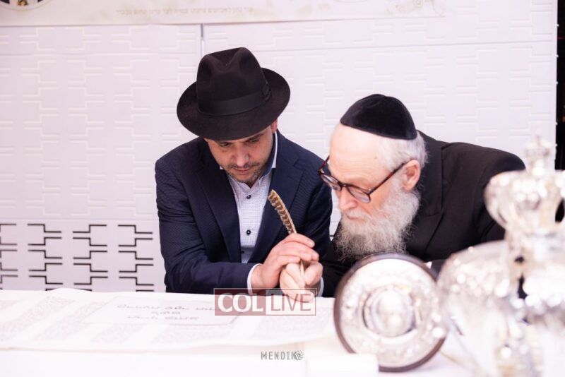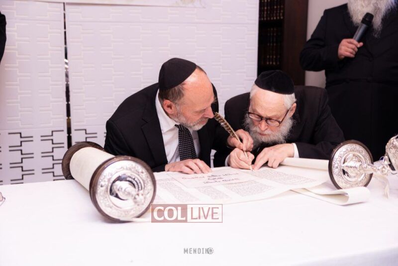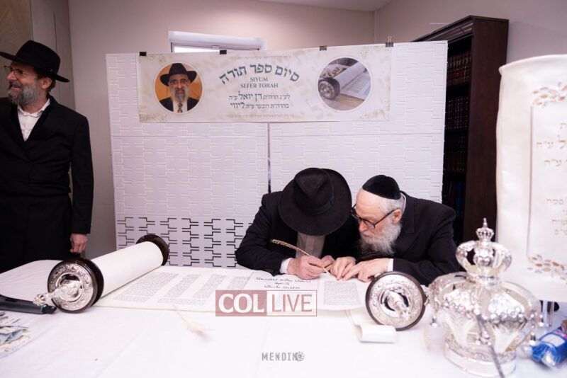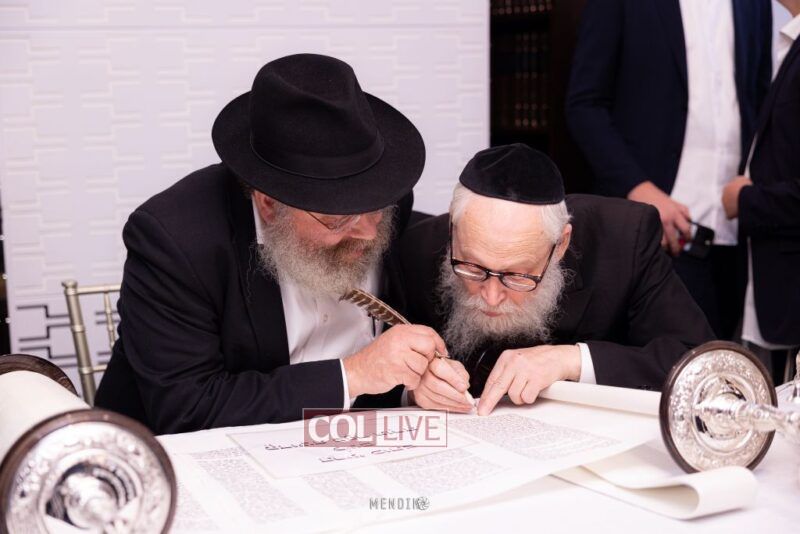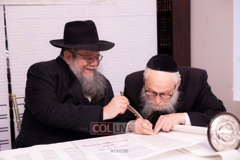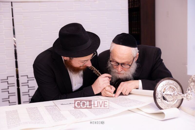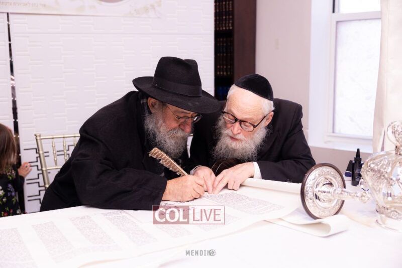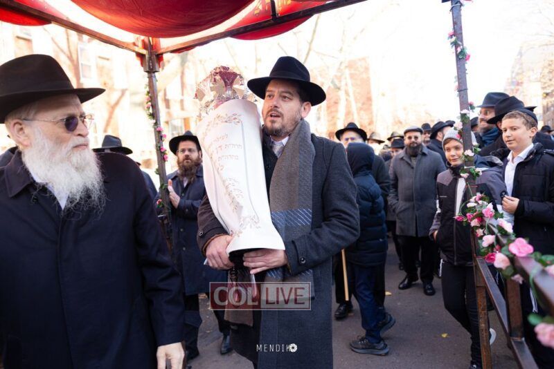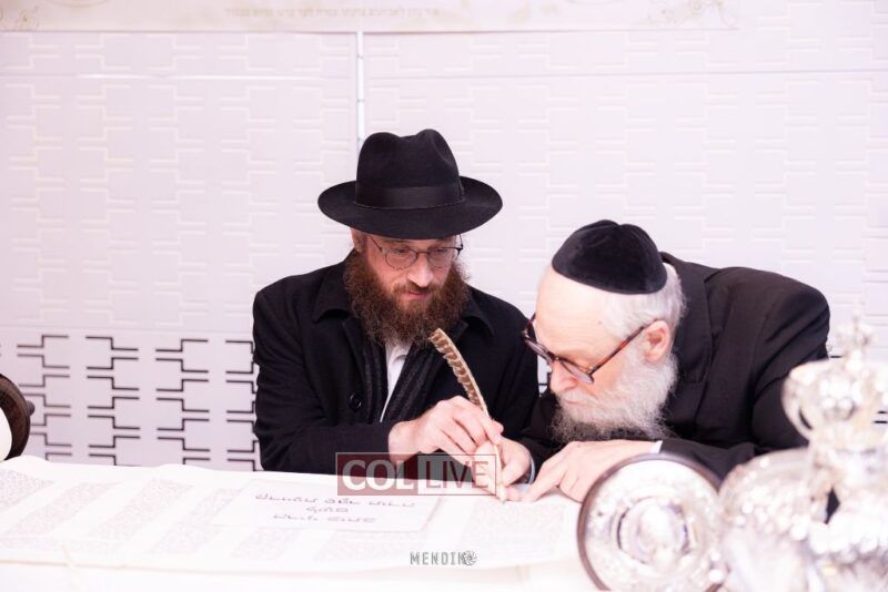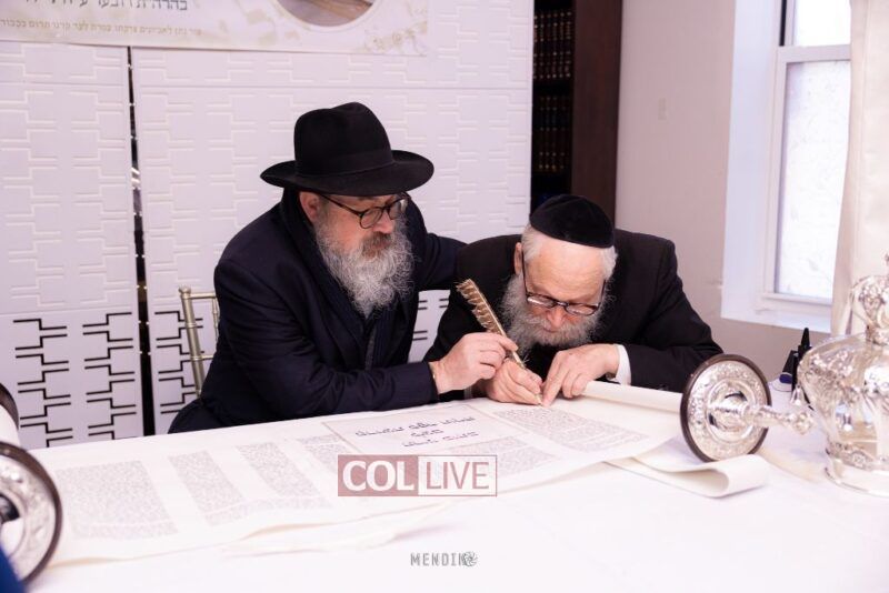 After the completion of the letters, the Sefer Torah was danced through the streets from Ulam Chana to Beis Eliezer Yitzchok Shul. Lively hakafos in the shul and seudah followed the procession.