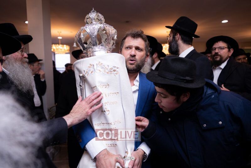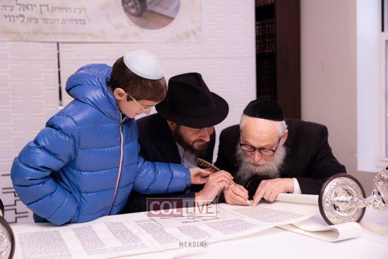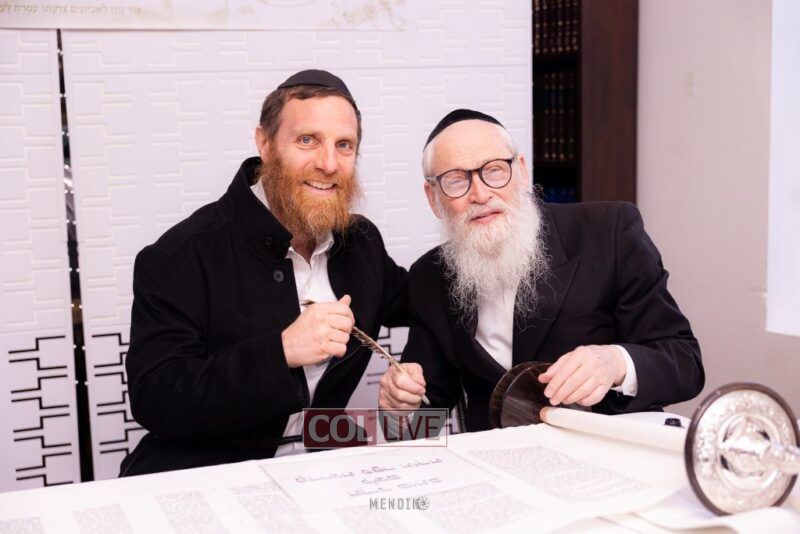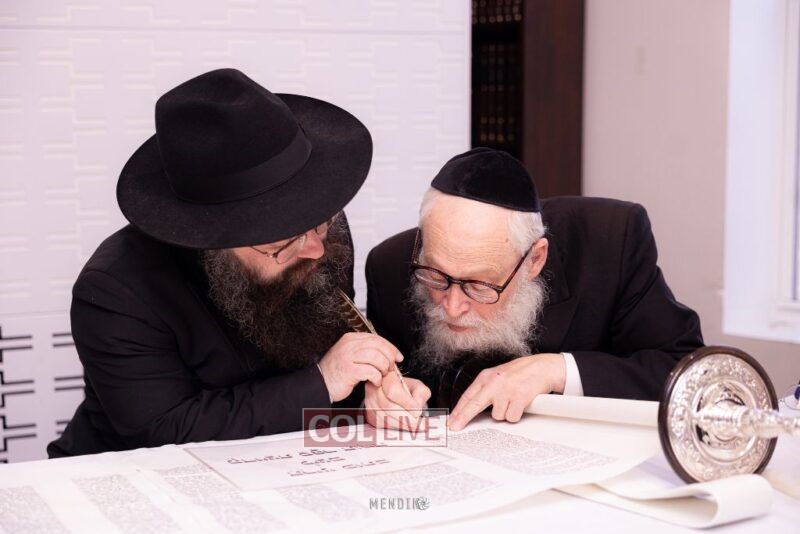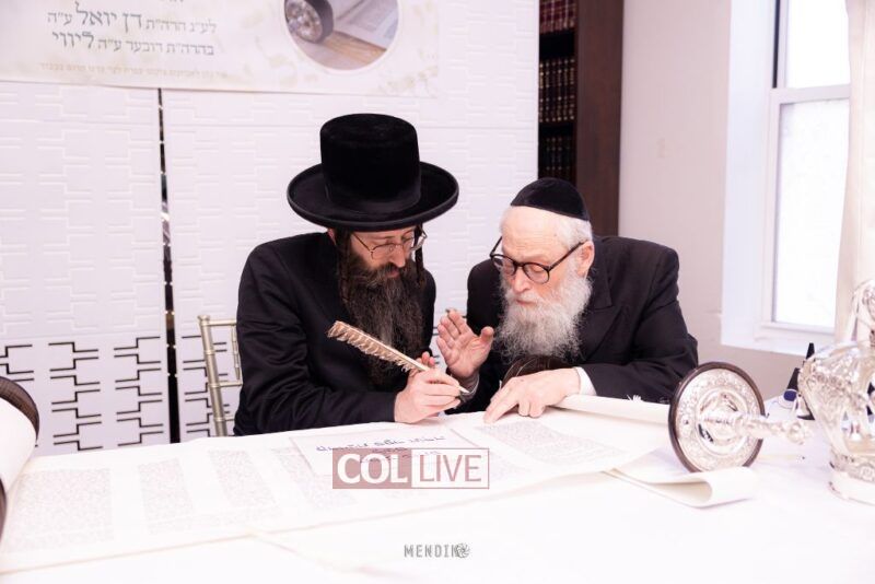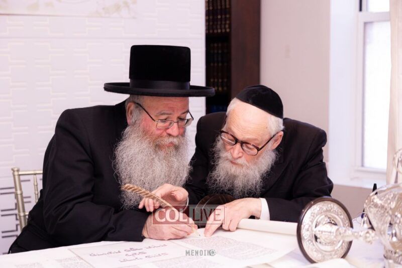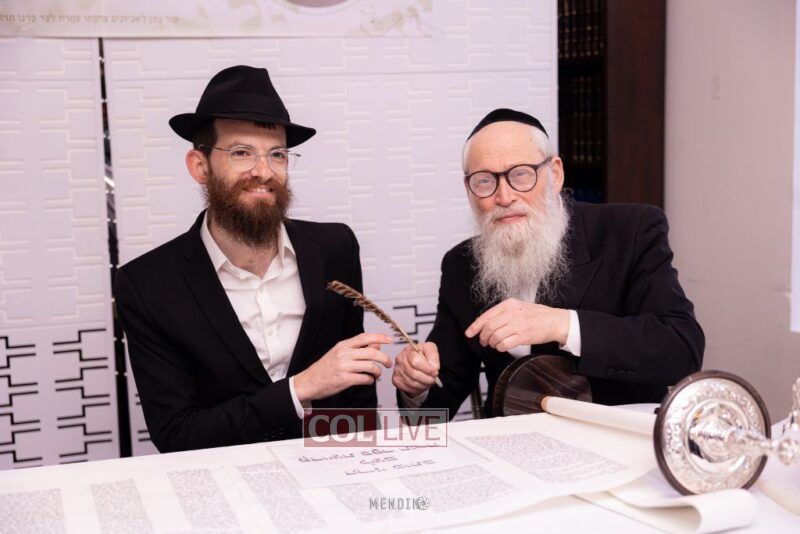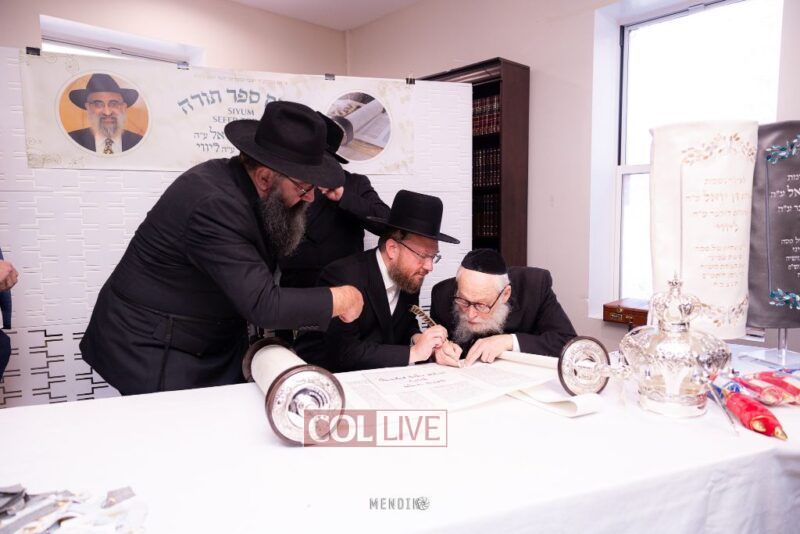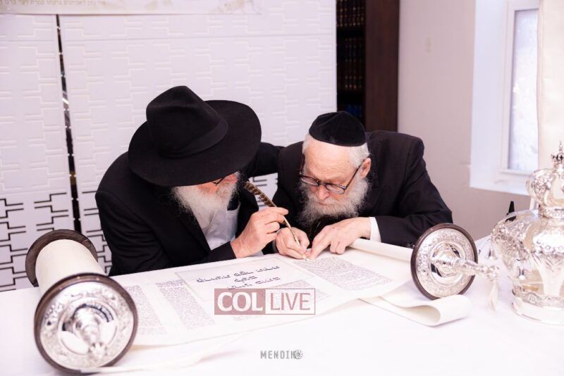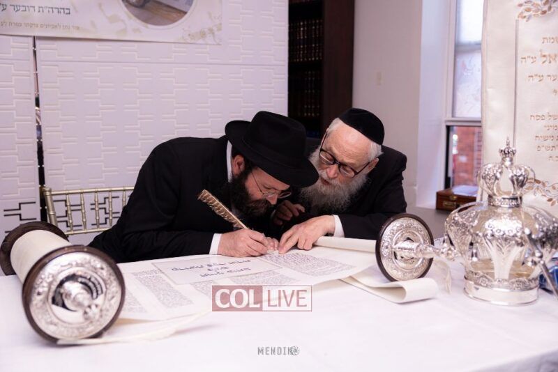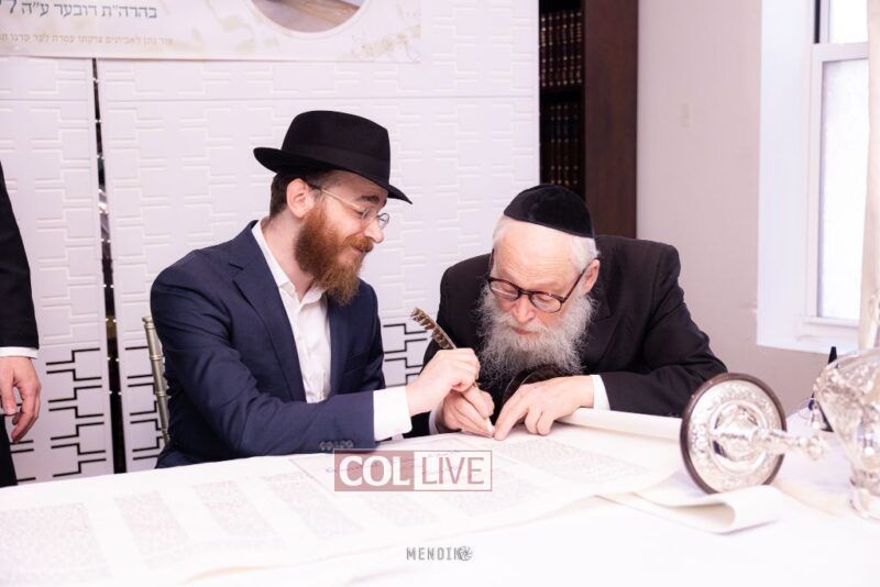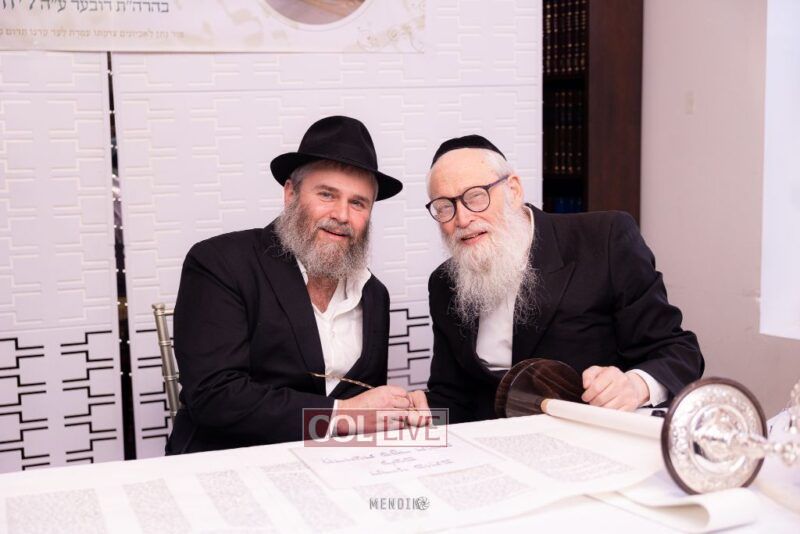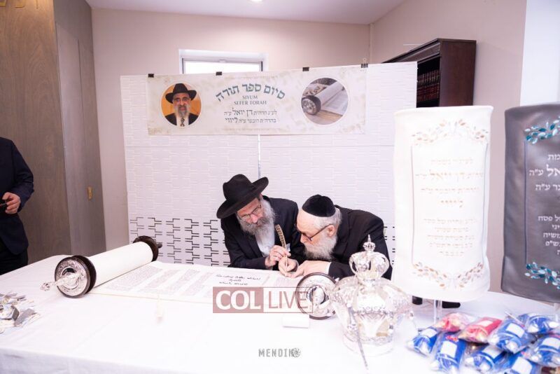 After the completion of the letters, the Sefer Torah was danced through the streets from Ulam Chana to Beis Eliezer Yitzchok Shul. Lively hakafos in the shul and seudah followed the procession.