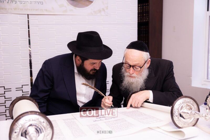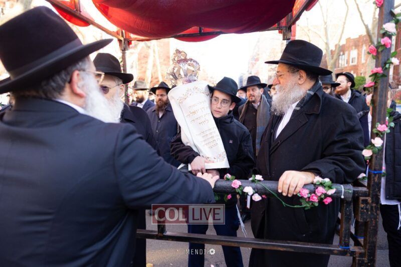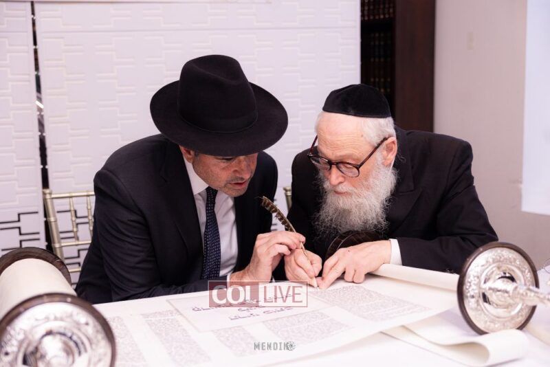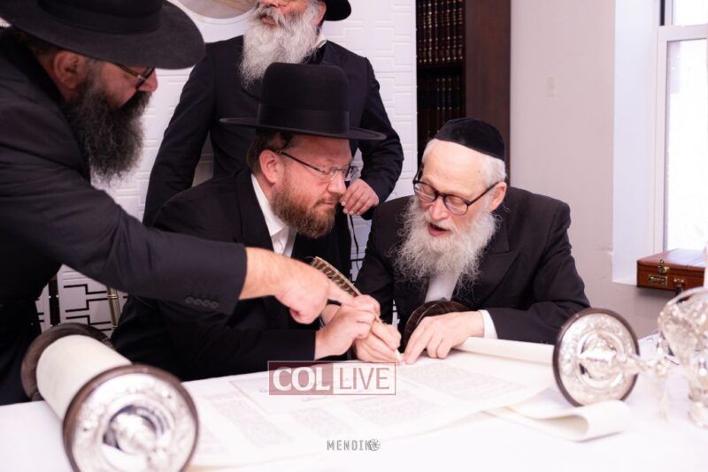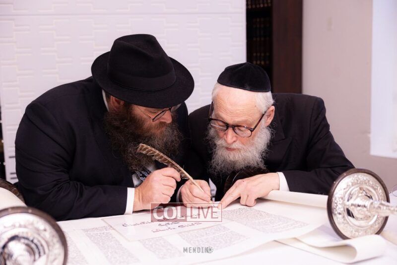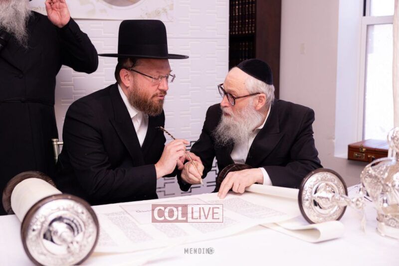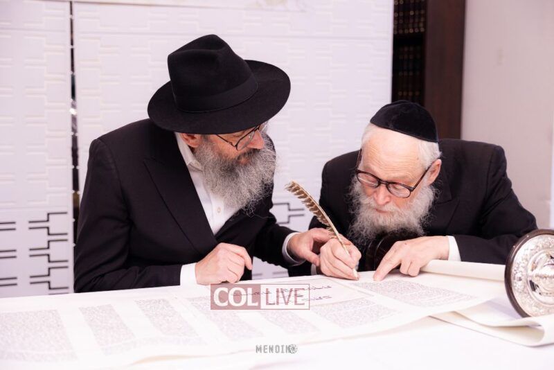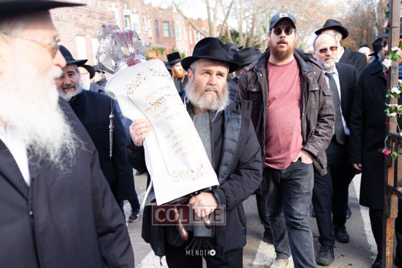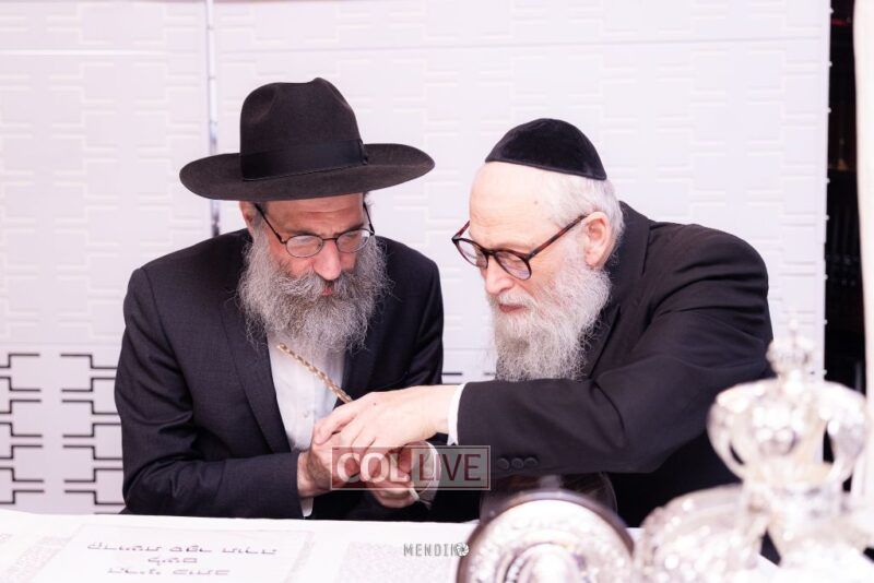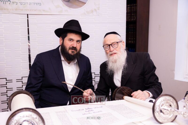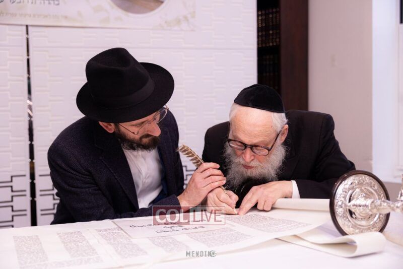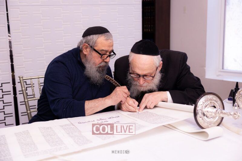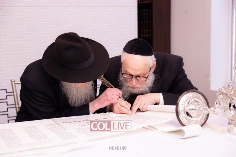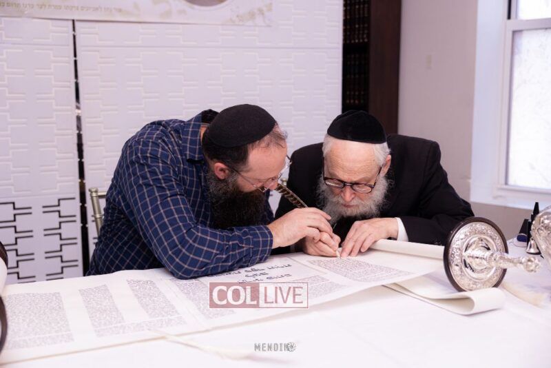 After the completion of the letters, the Sefer Torah was danced through the streets from Ulam Chana to Beis Eliezer Yitzchok Shul. Lively hakafos in the shul and seudah followed the procession.