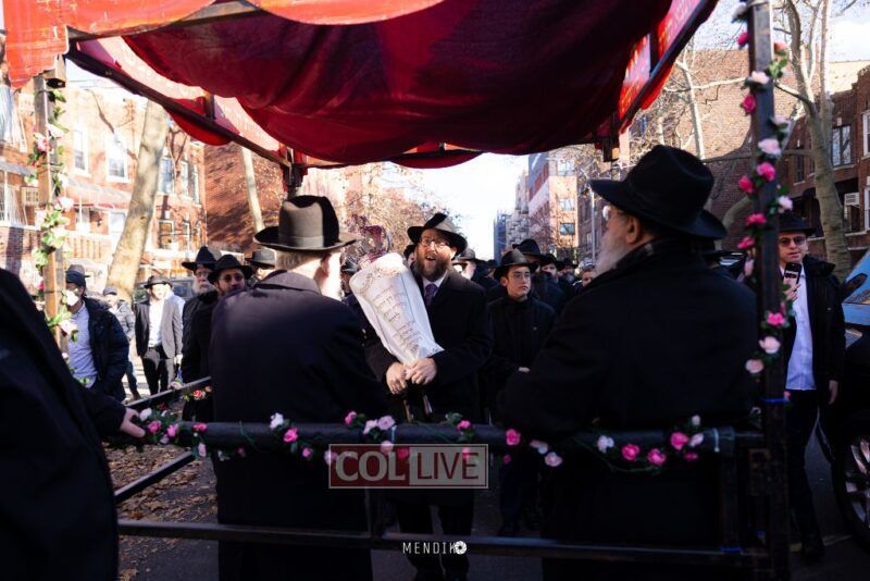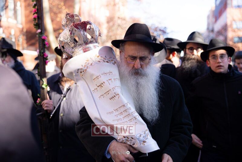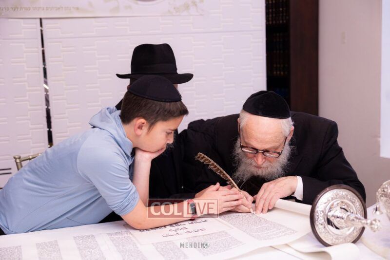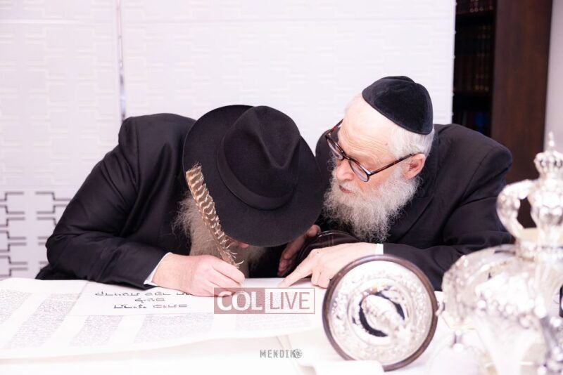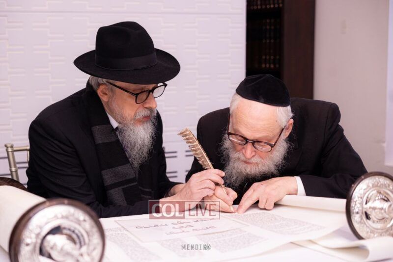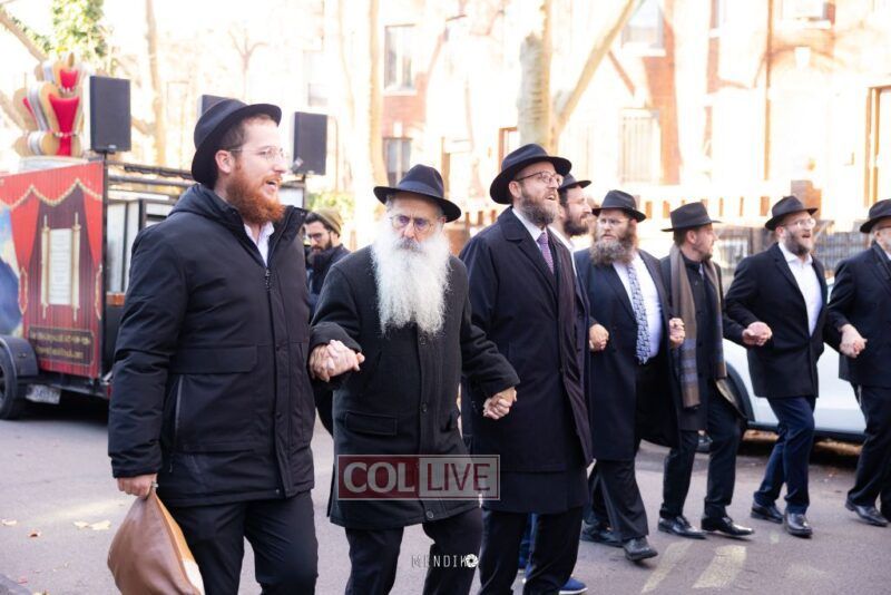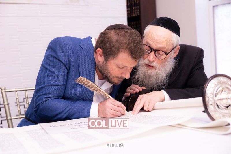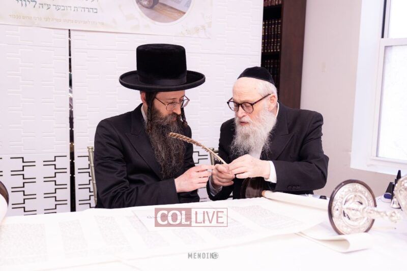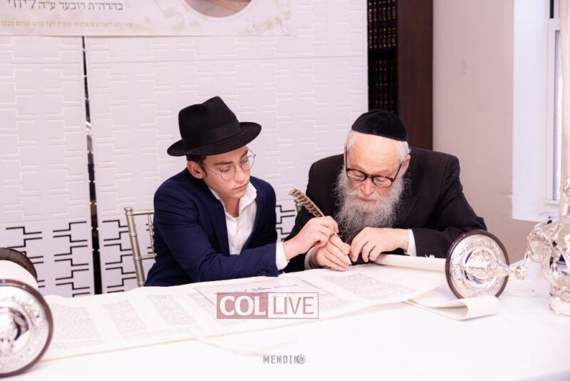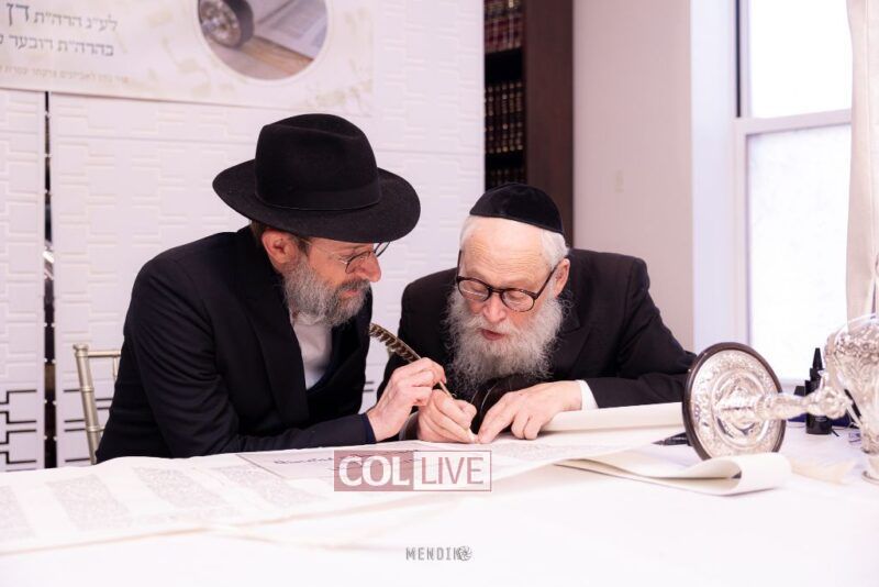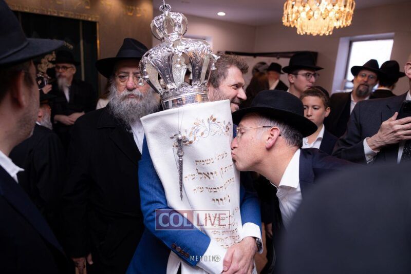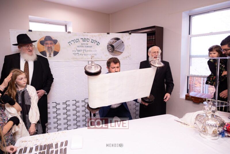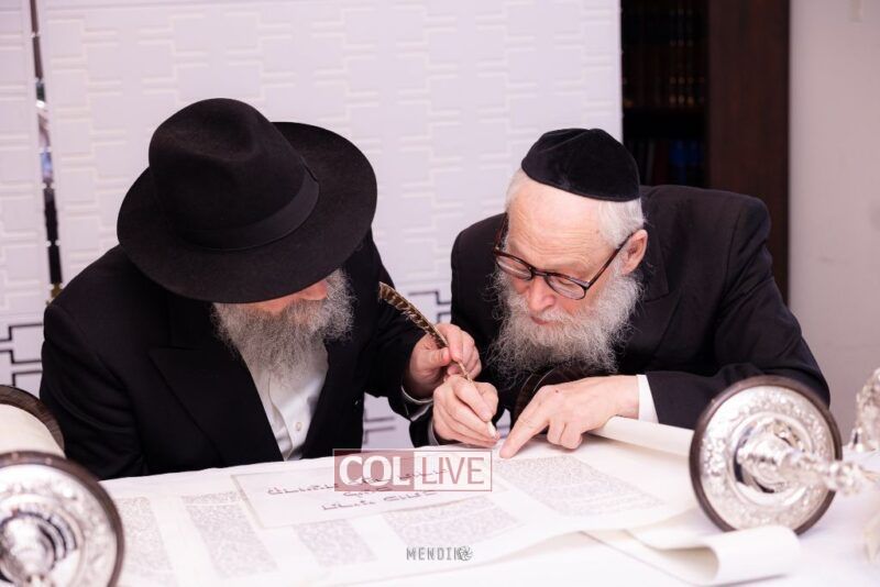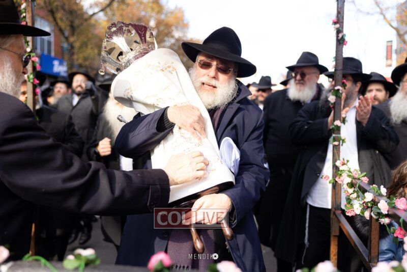 After the completion of the letters, the Sefer Torah was danced through the streets from Ulam Chana to Beis Eliezer Yitzchok Shul. Lively hakafos in the shul and seudah followed the procession.