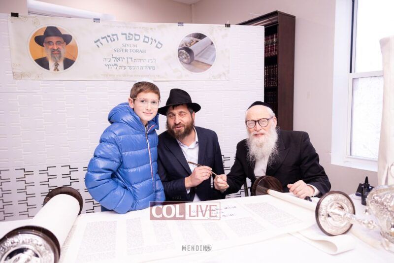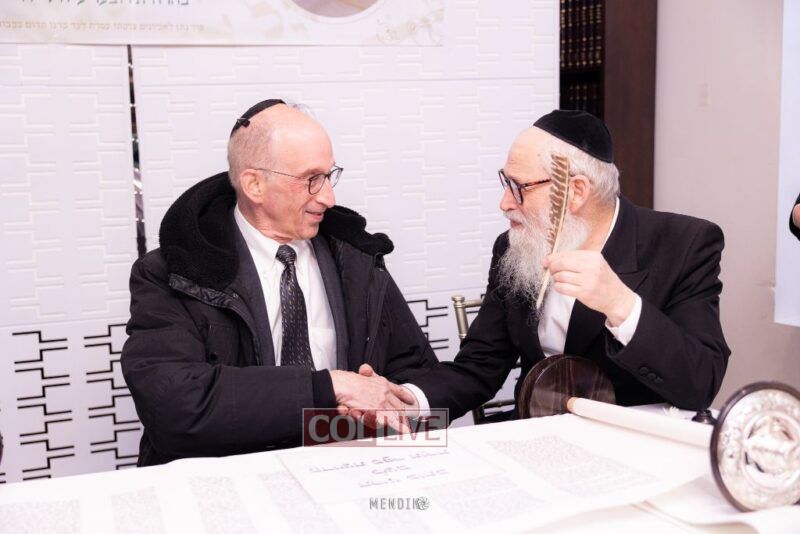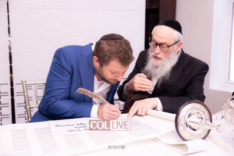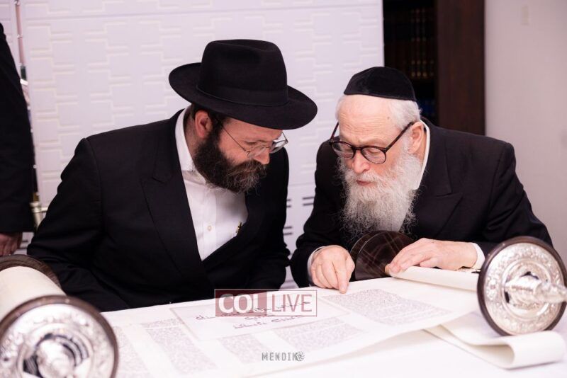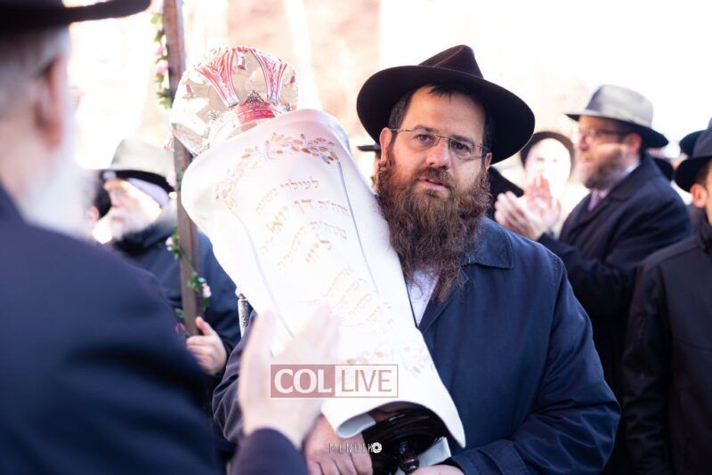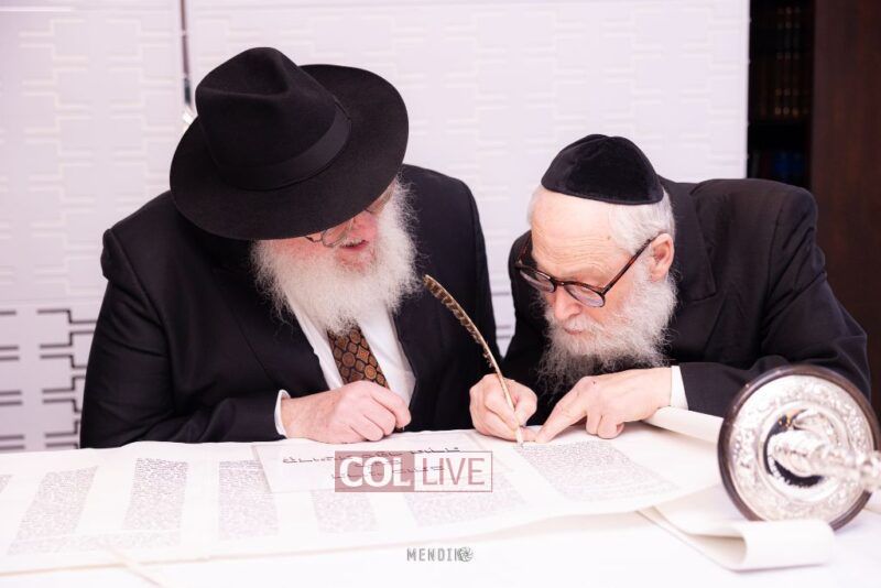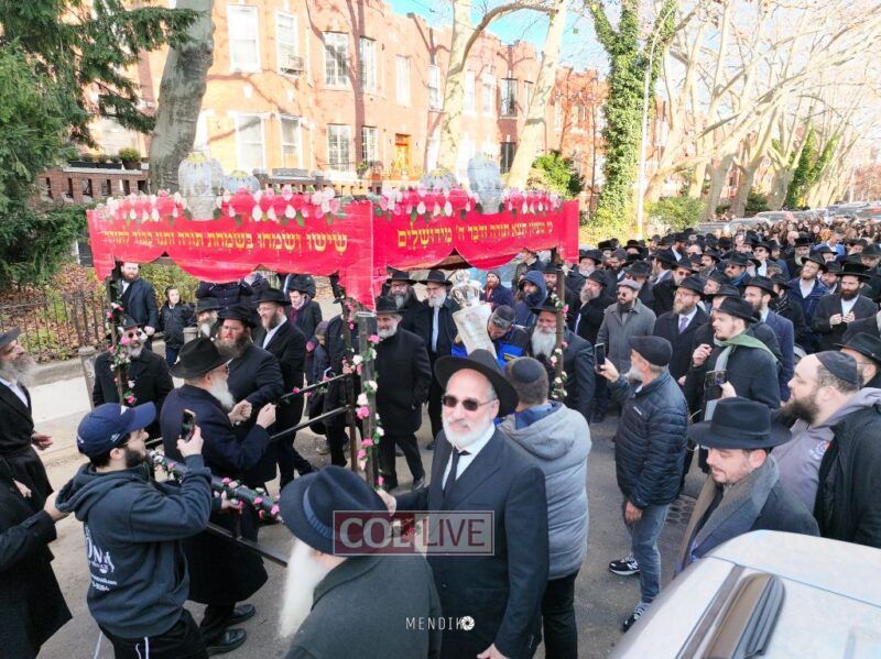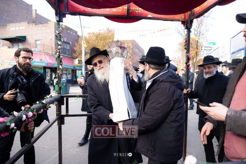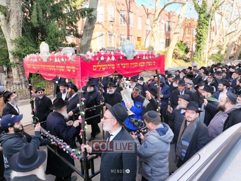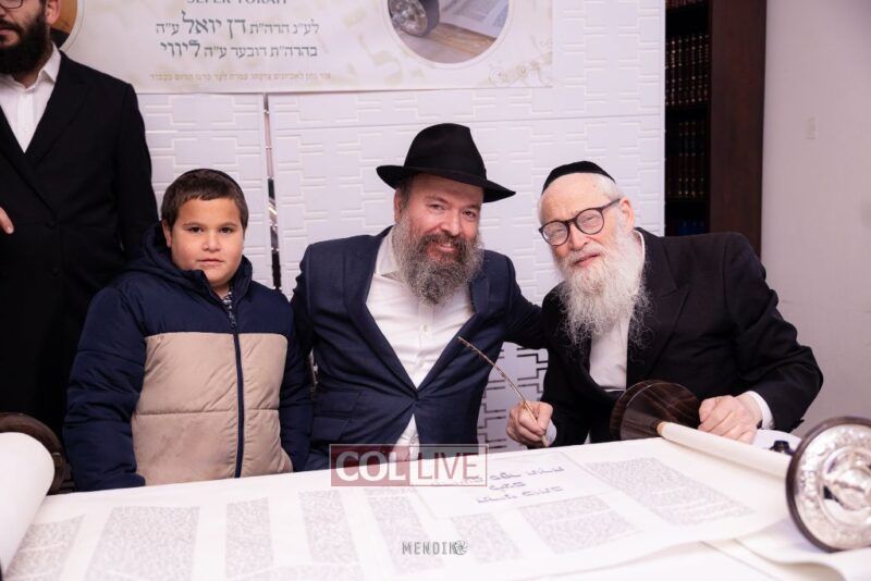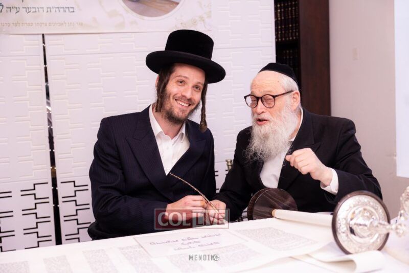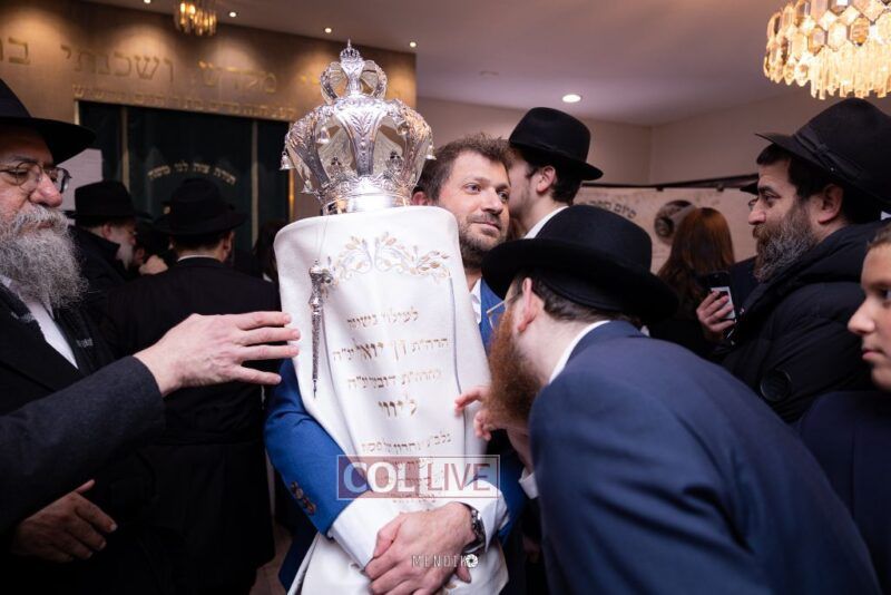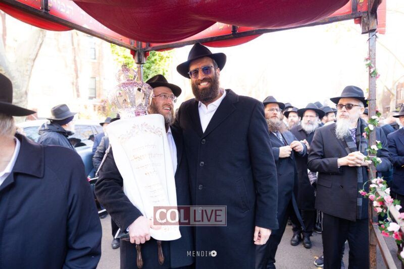 After the completion of the letters, the Sefer Torah was danced through the streets from Ulam Chana to Beis Eliezer Yitzchok Shul. Lively hakafos in the shul and seudah followed the procession.