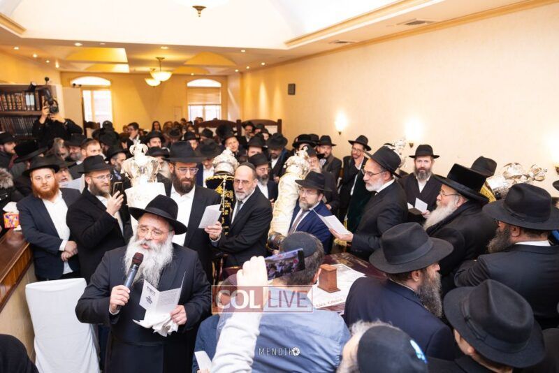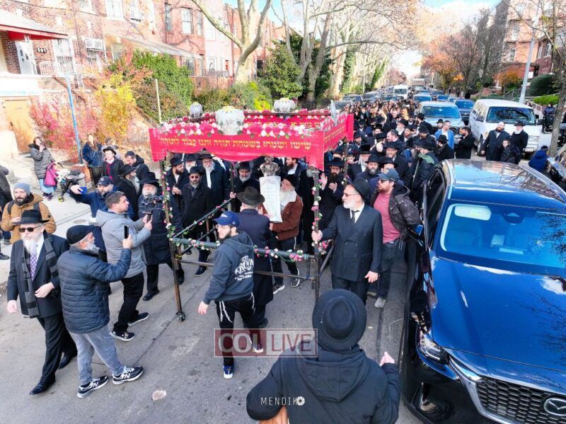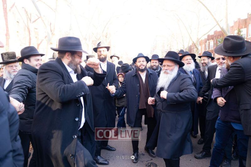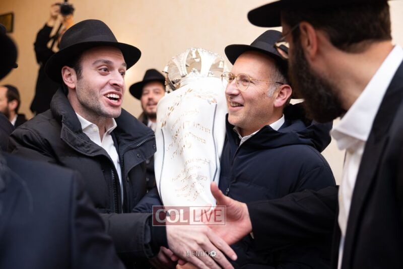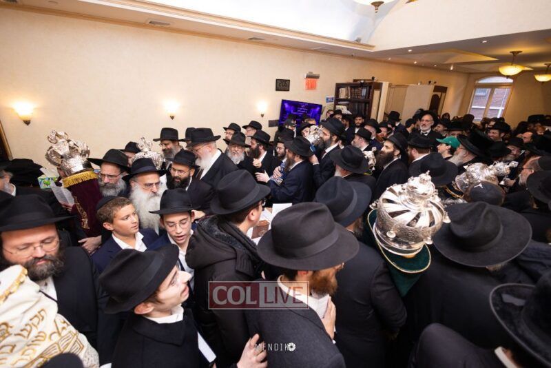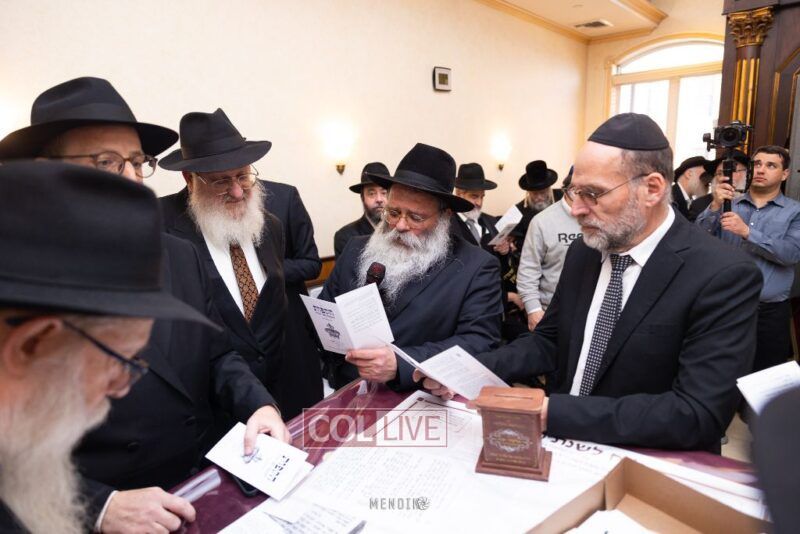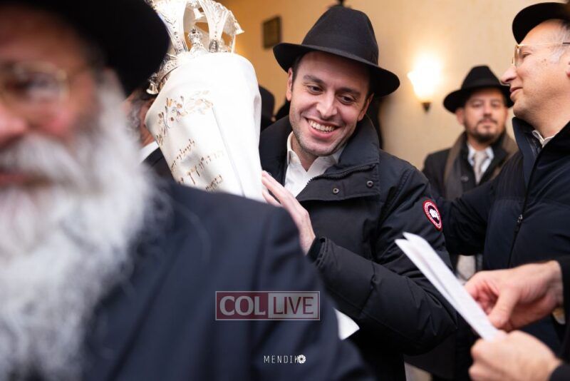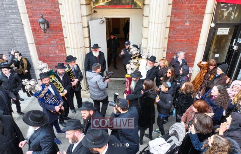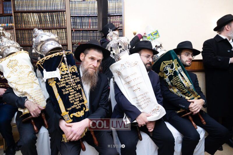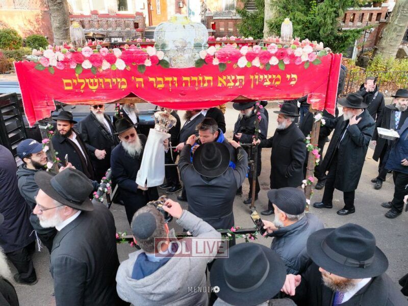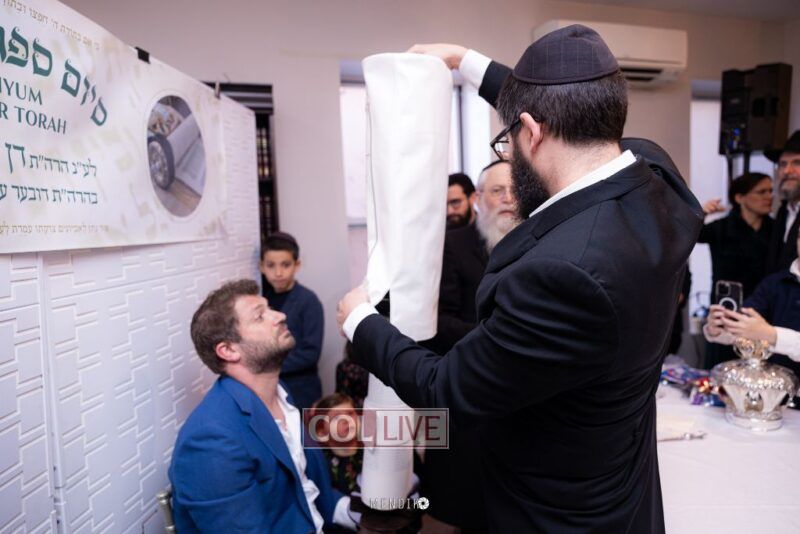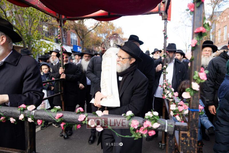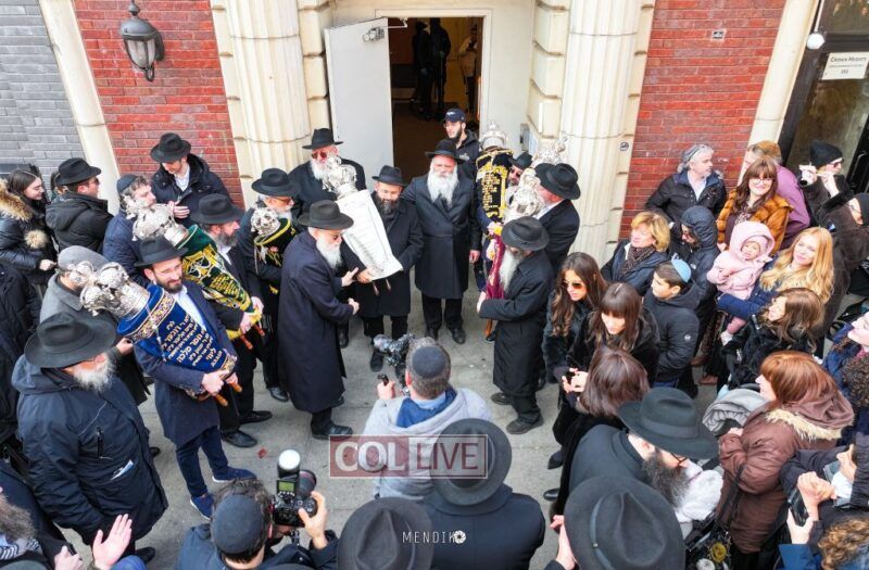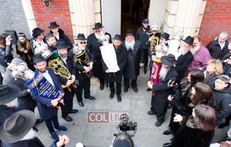 After the completion of the letters, the Sefer Torah was danced through the streets from Ulam Chana to Beis Eliezer Yitzchok Shul. Lively hakafos in the shul and seudah followed the procession.