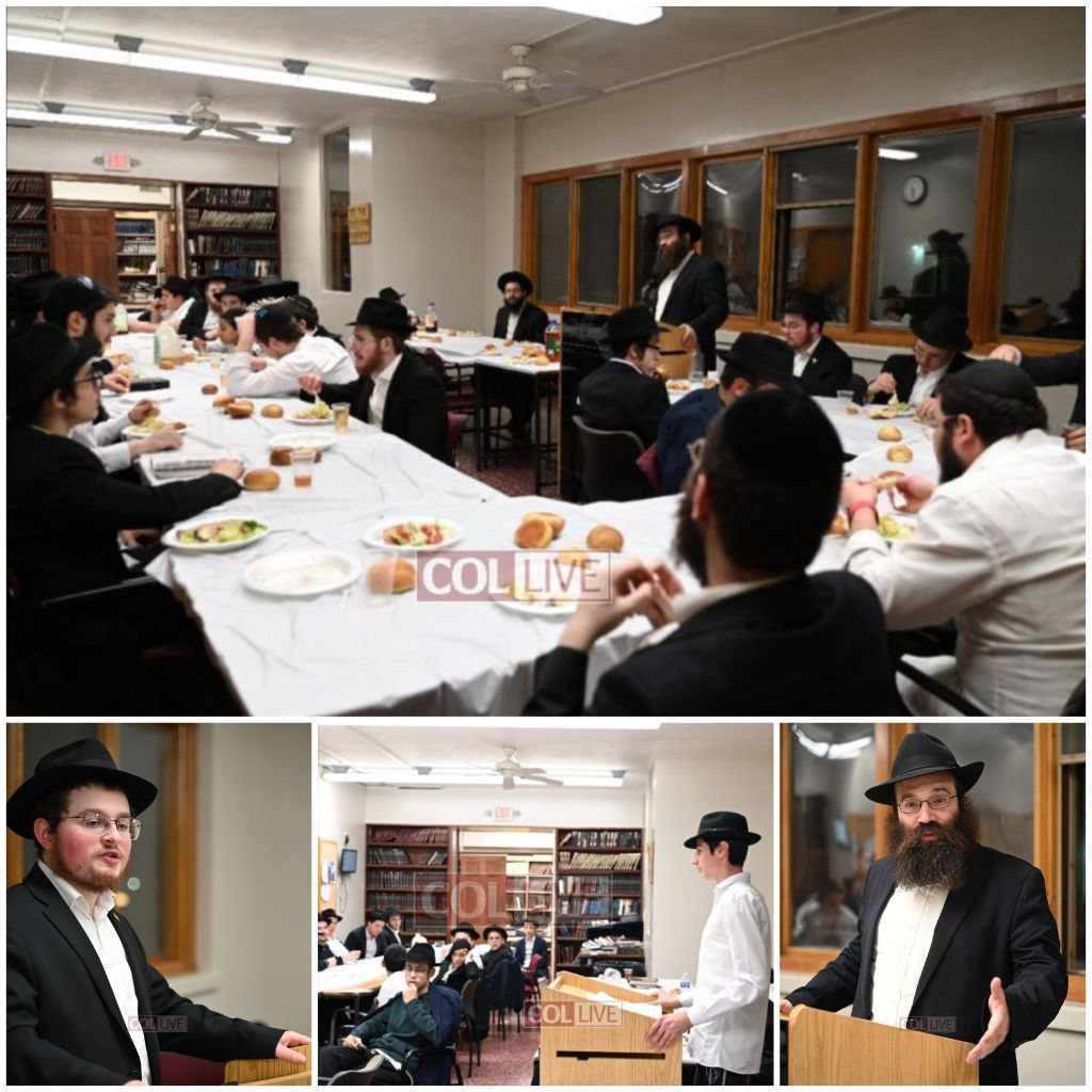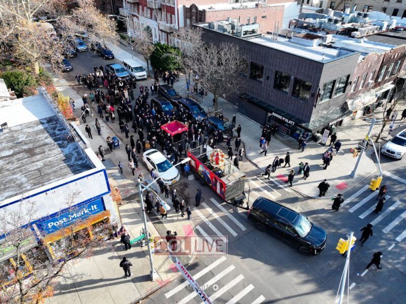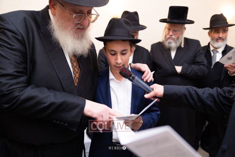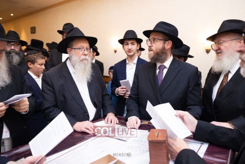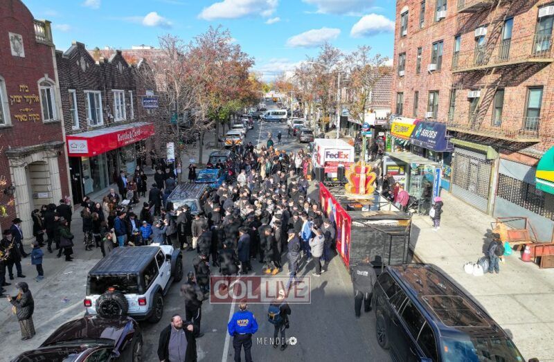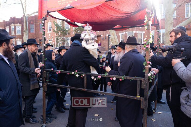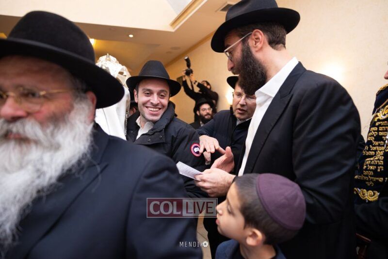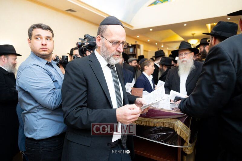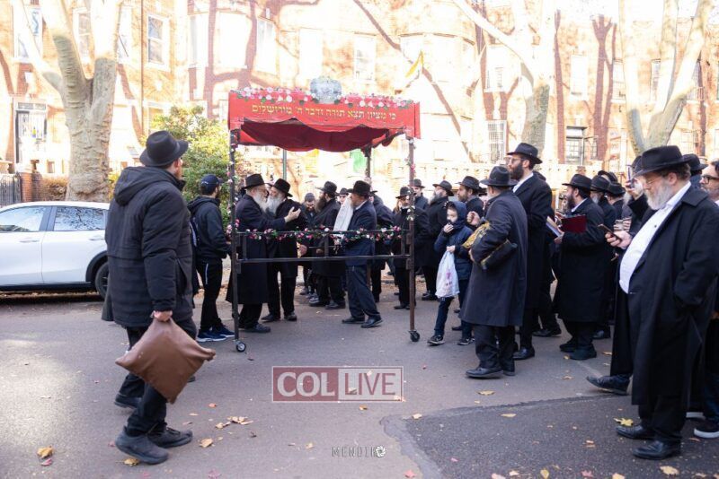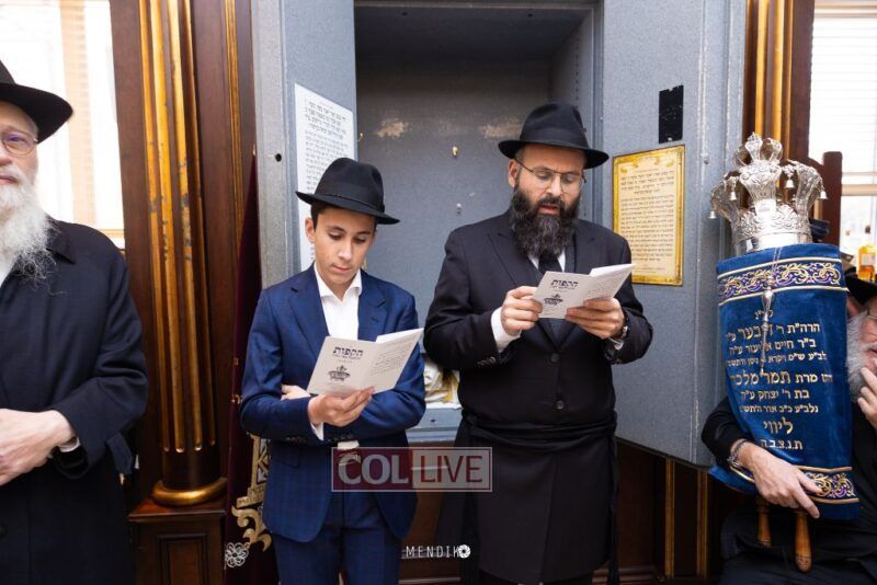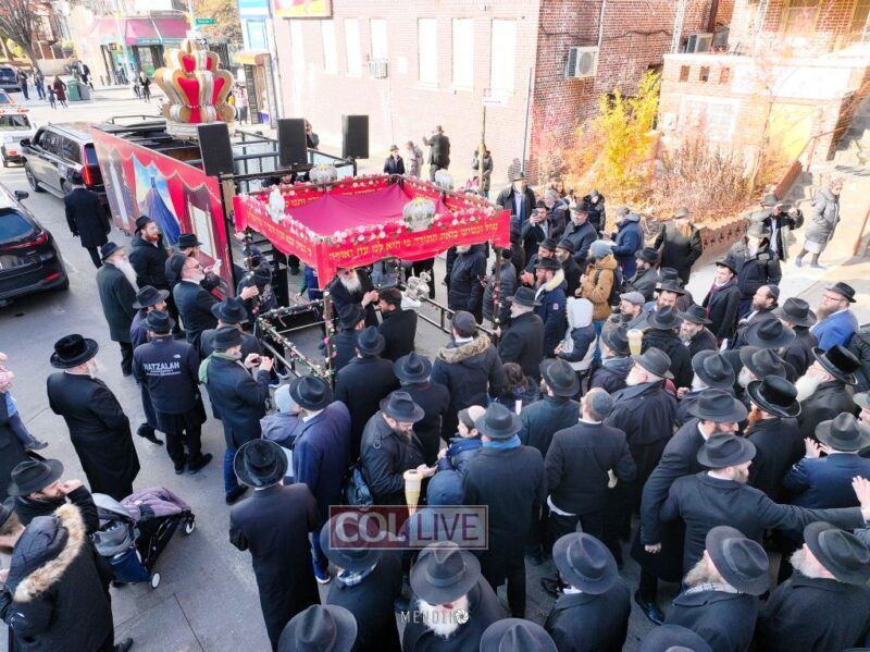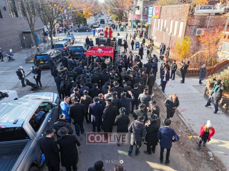 After the completion of the letters, the Sefer Torah was danced through the streets from Ulam Chana to Beis Eliezer Yitzchok Shul. Lively hakafos in the shul and seudah followed the procession.