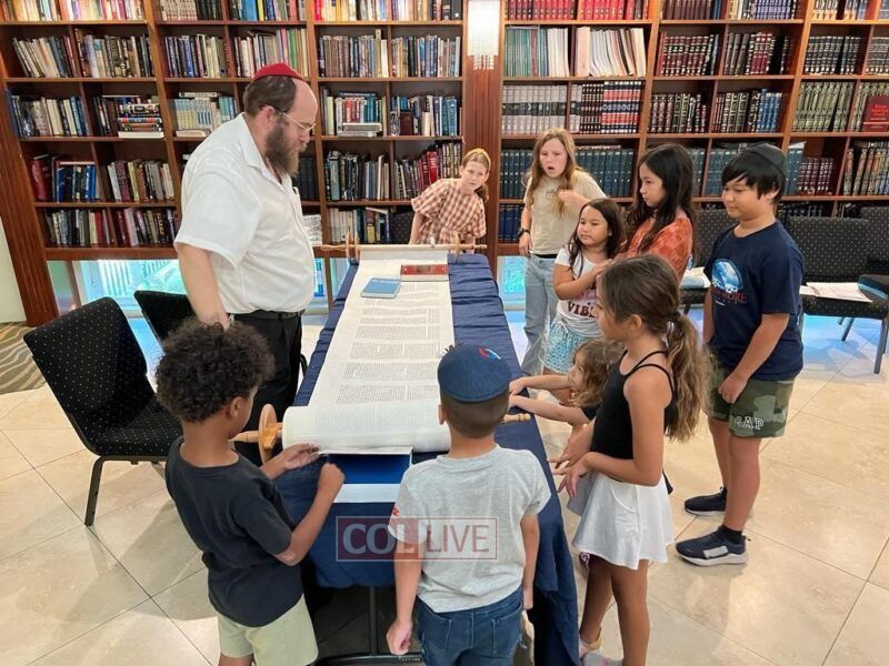 The completion of the Torah writing was led by Rabbi Yochanan Klein and was joined by children of the local Hebrew school. They not only observed the completion of the Torah but also actively participated by writing letters to IDF soldiers.