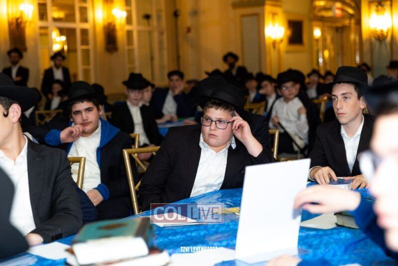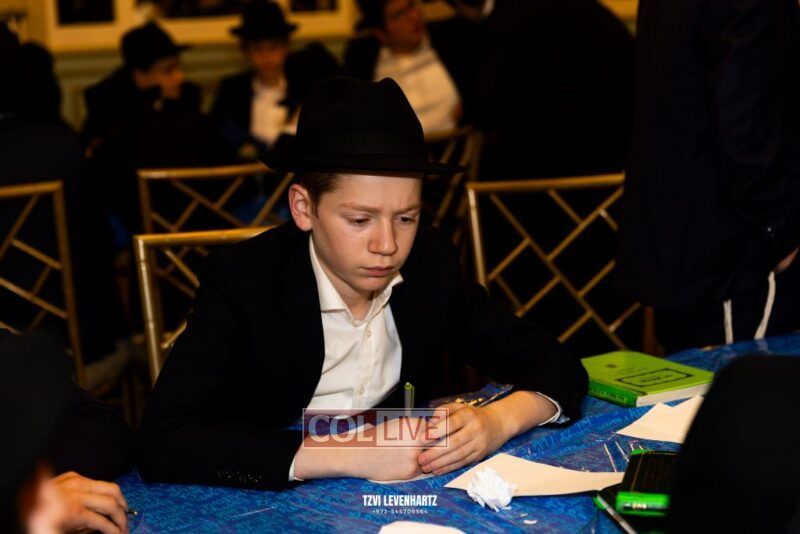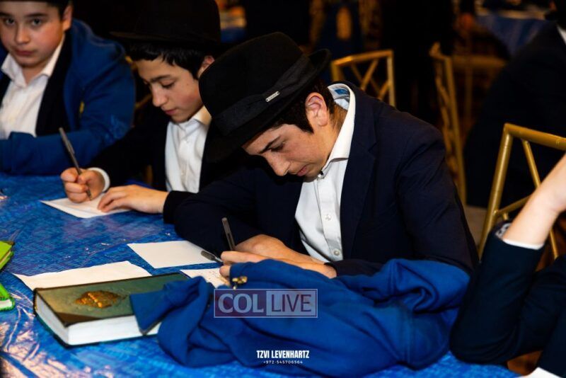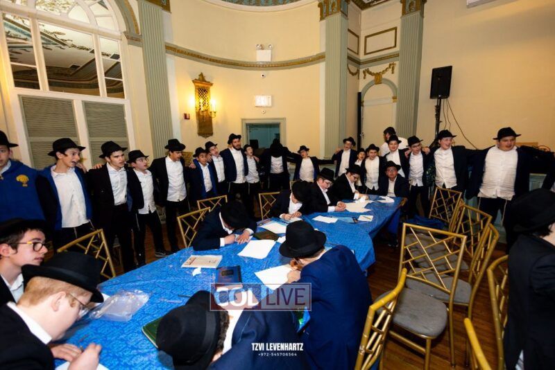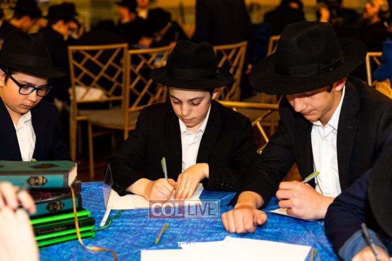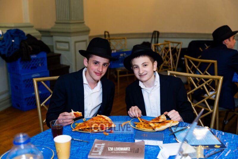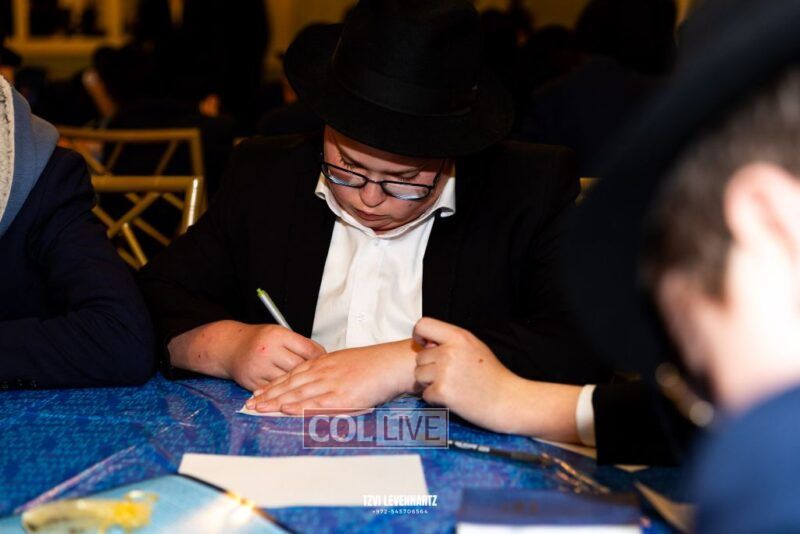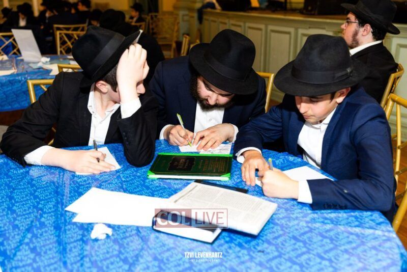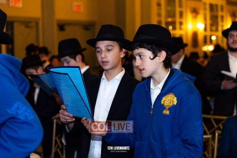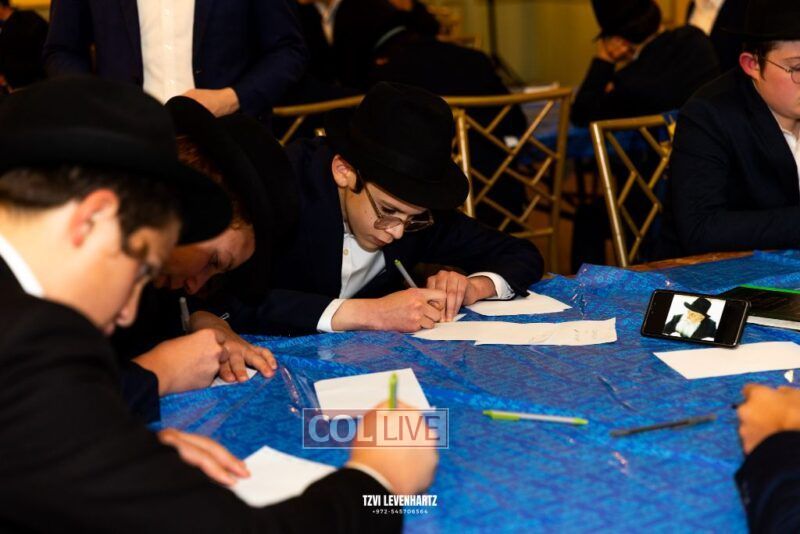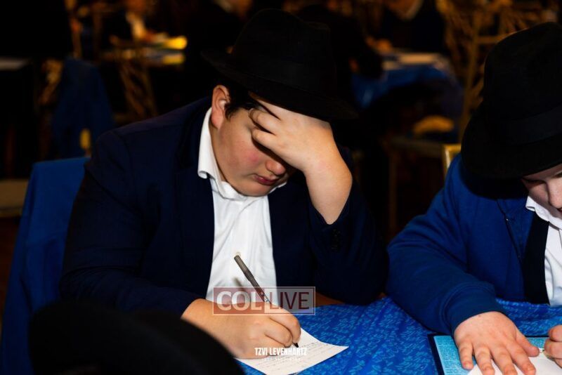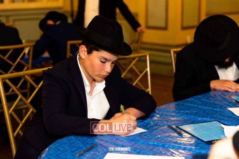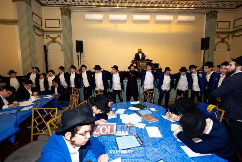 Boys in the International Chidon-Kol HaTorah Kulah program gathered on Motzei Shabbos to write Pan notes and for an upbeat Melava Malka. Photos