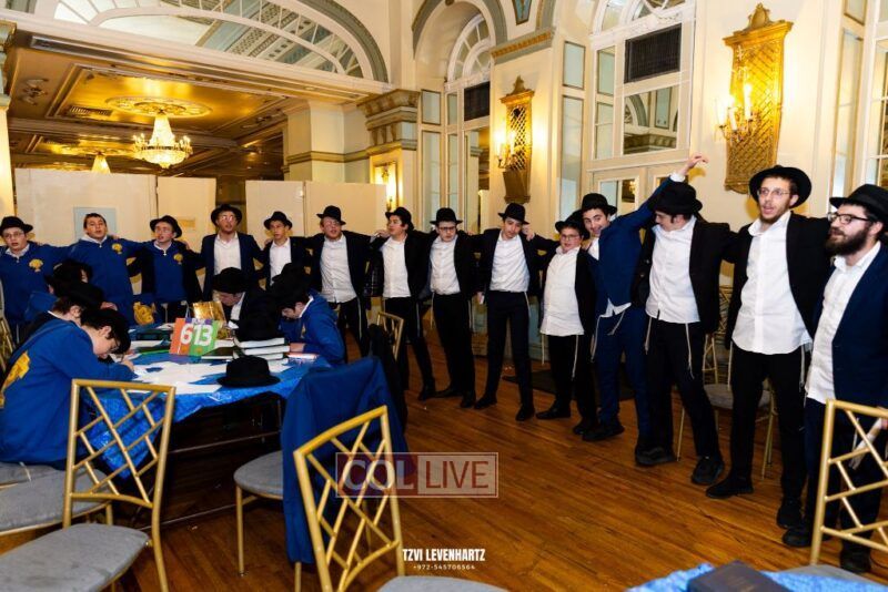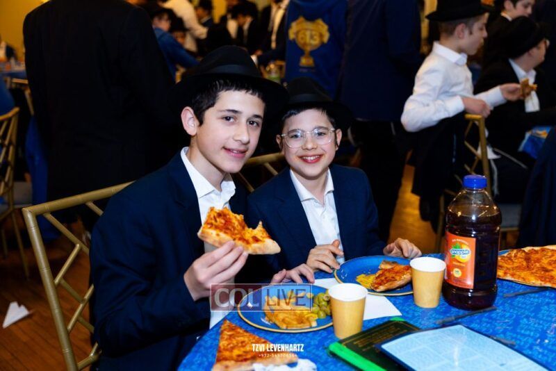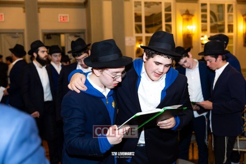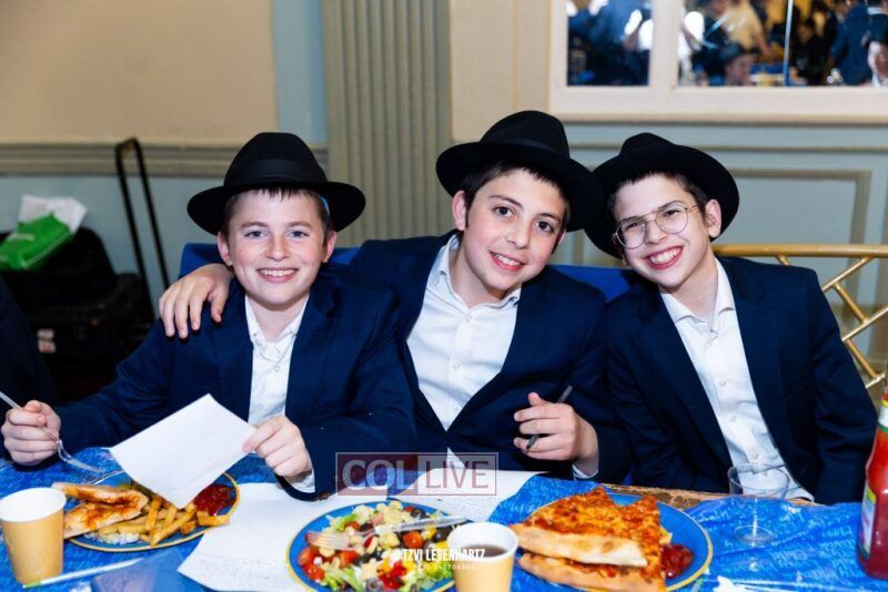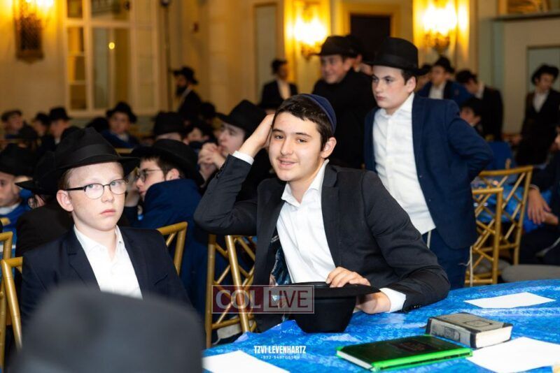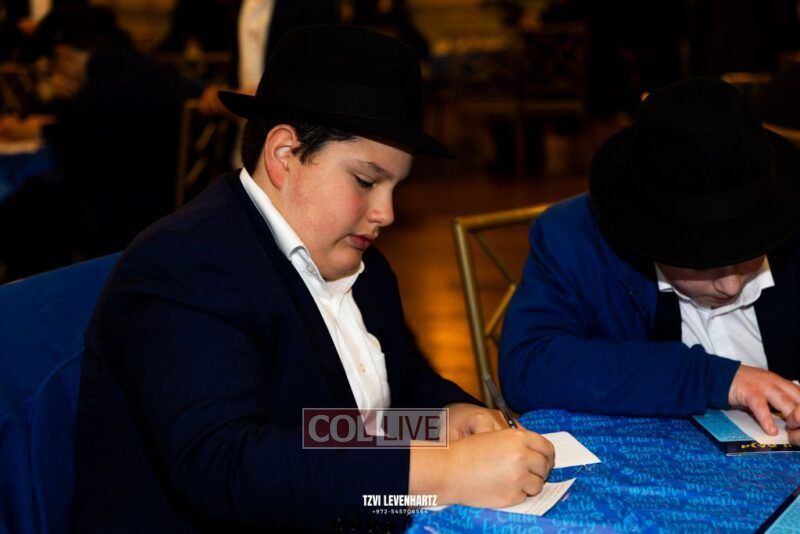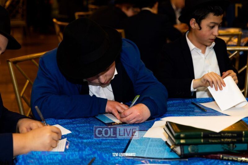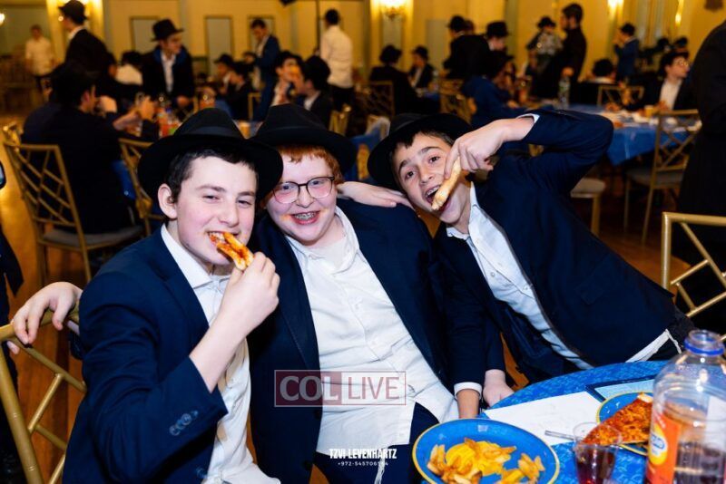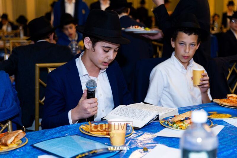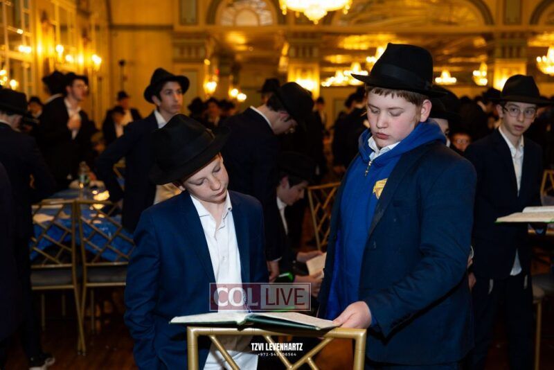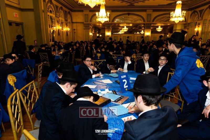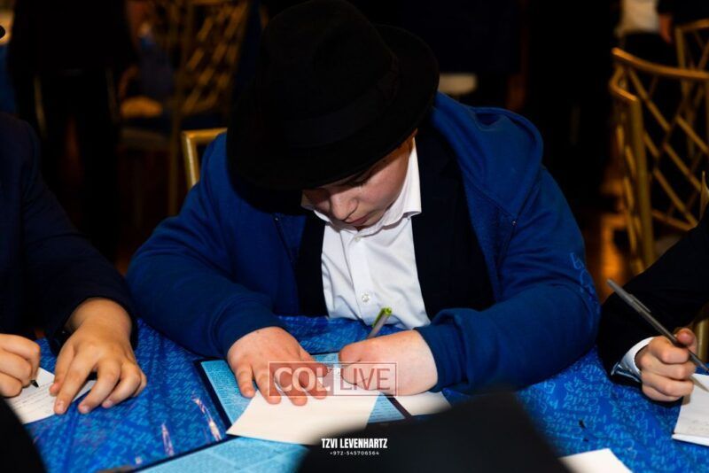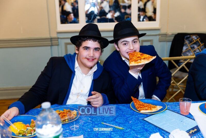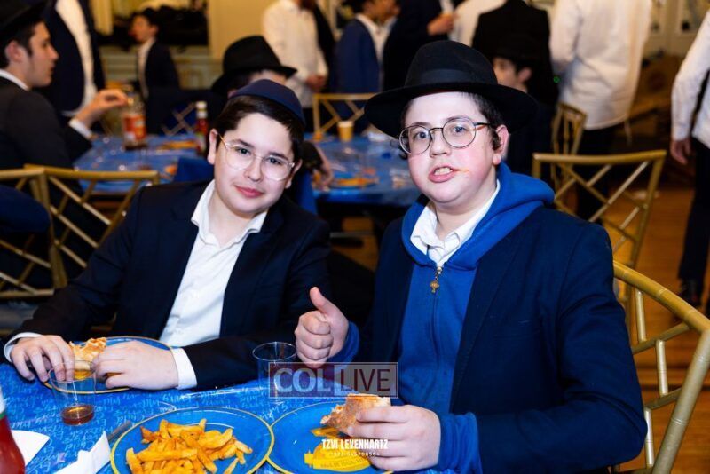 Boys in the International Chidon-Kol HaTorah Kulah program gathered on Motzei Shabbos to write Pan notes and for an upbeat Melava Malka. Photos
