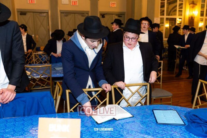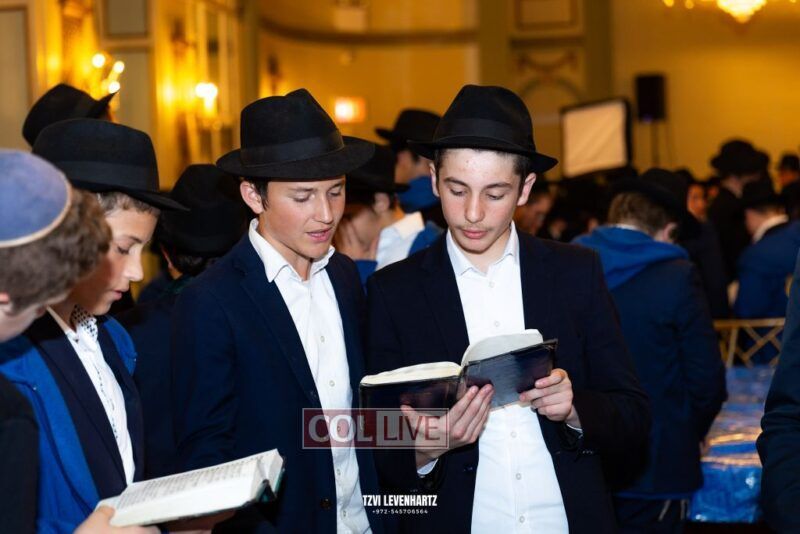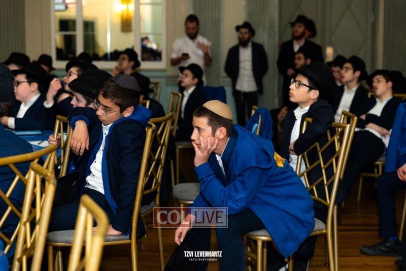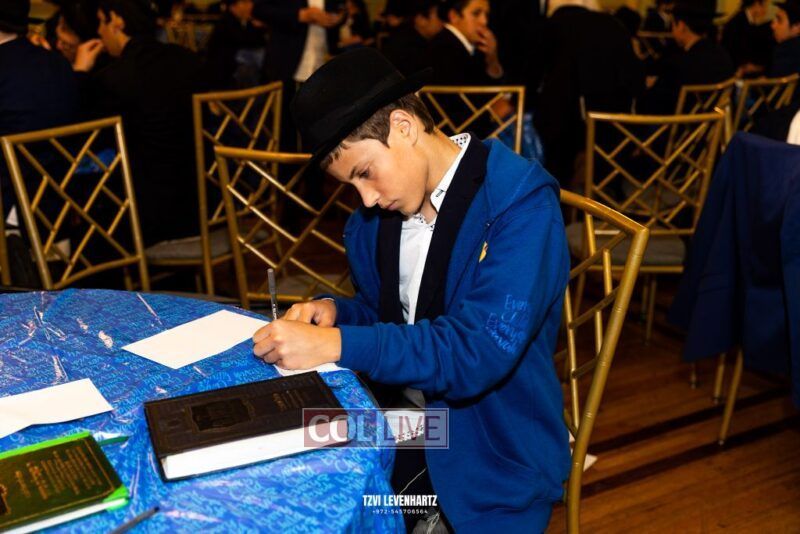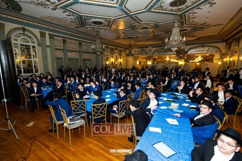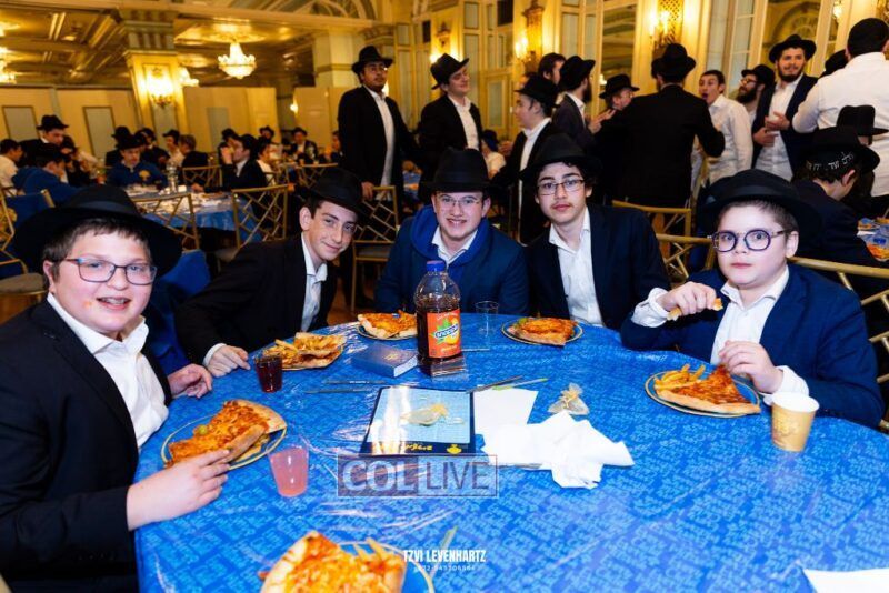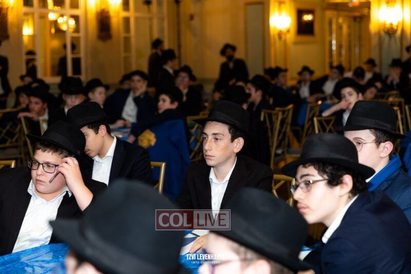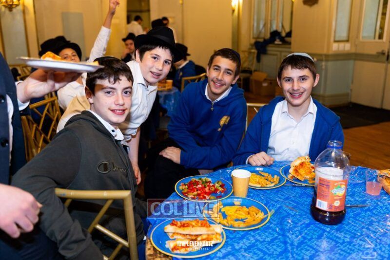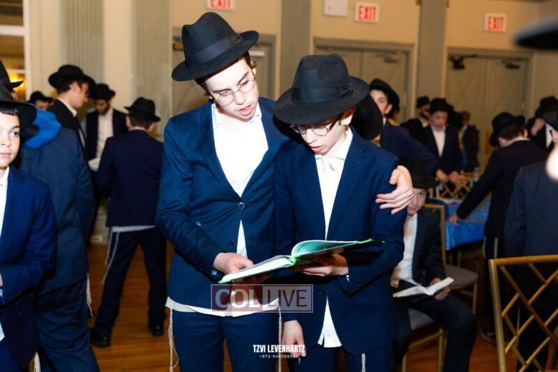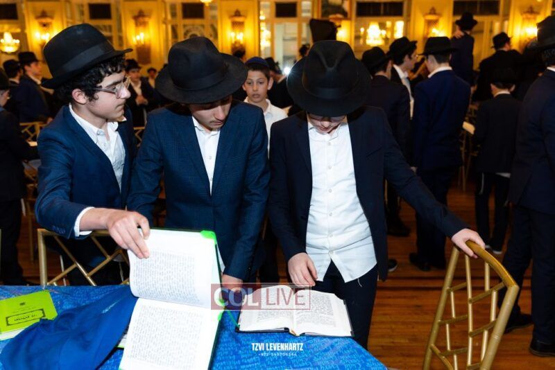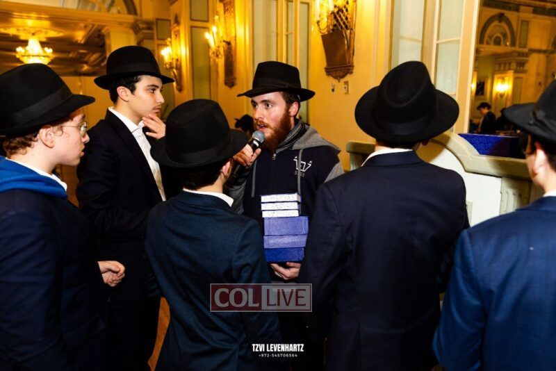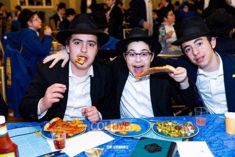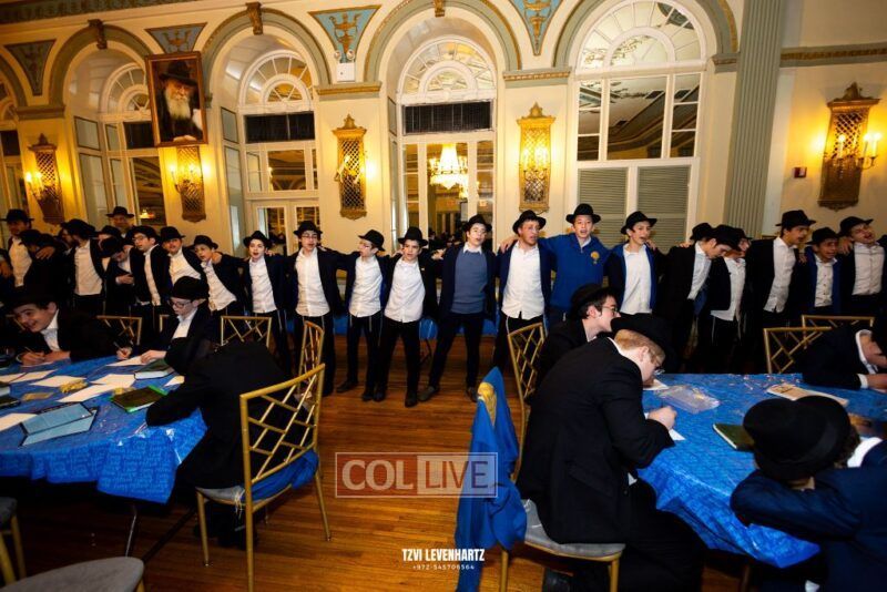 Boys in the International Chidon-Kol HaTorah Kulah program gathered on Motzei Shabbos to write Pan notes and for an upbeat Melava Malka. Photos