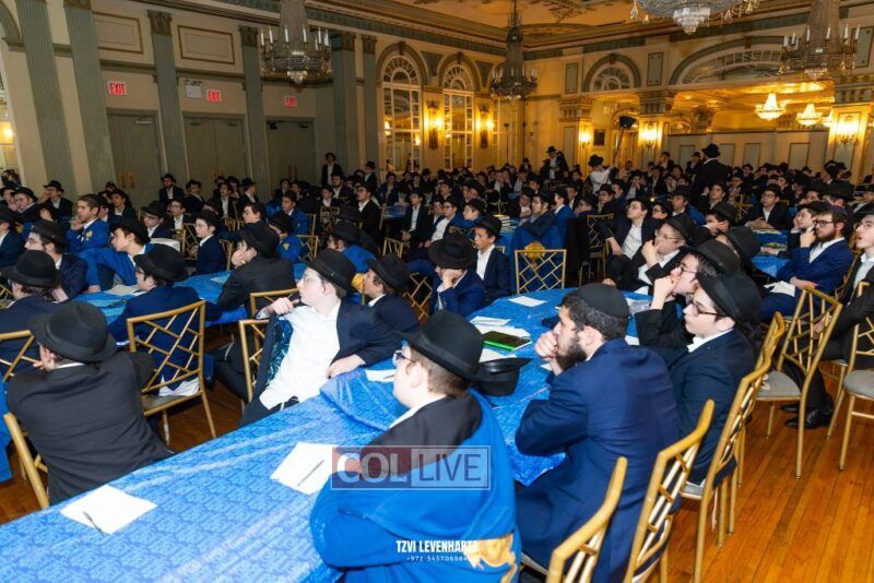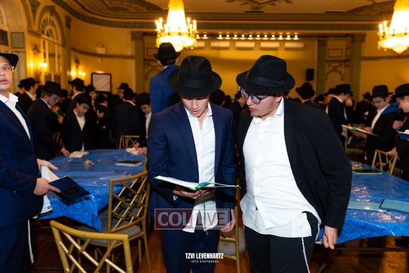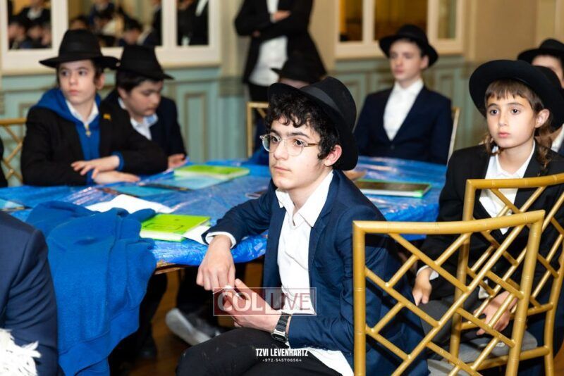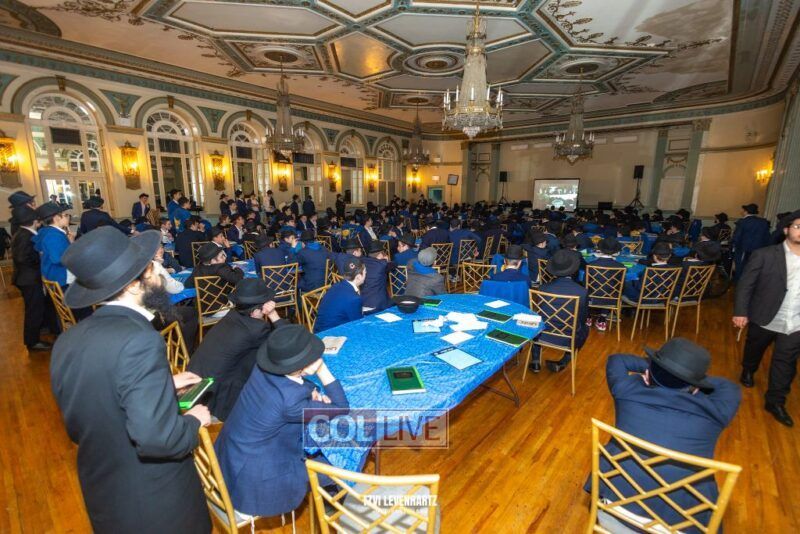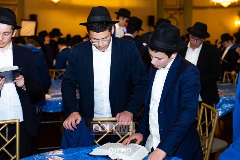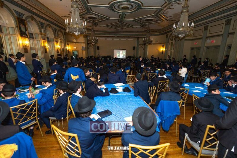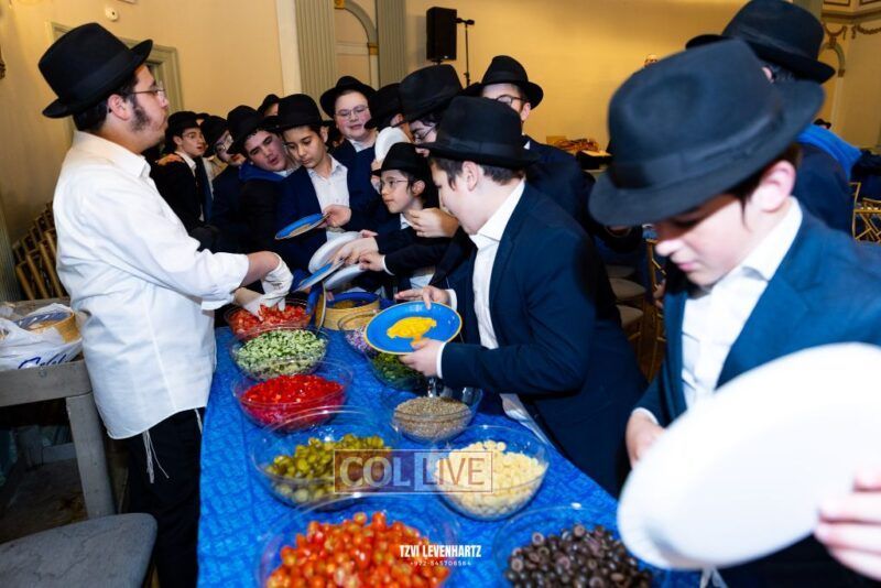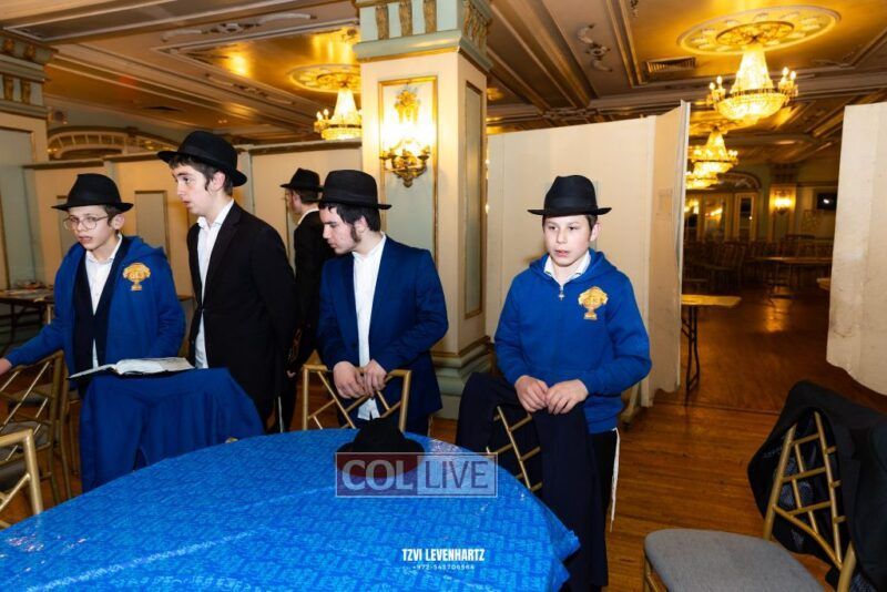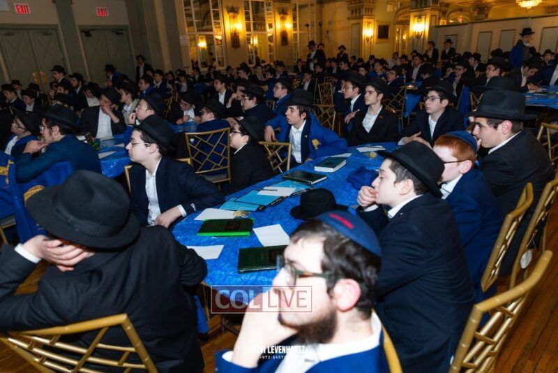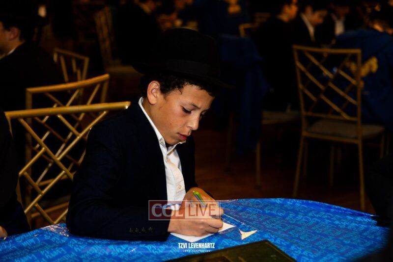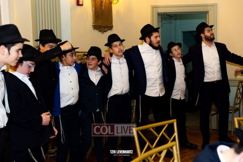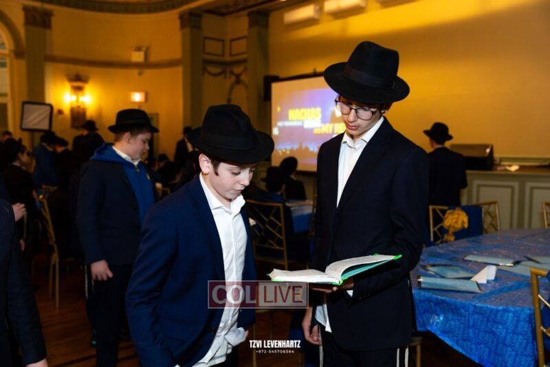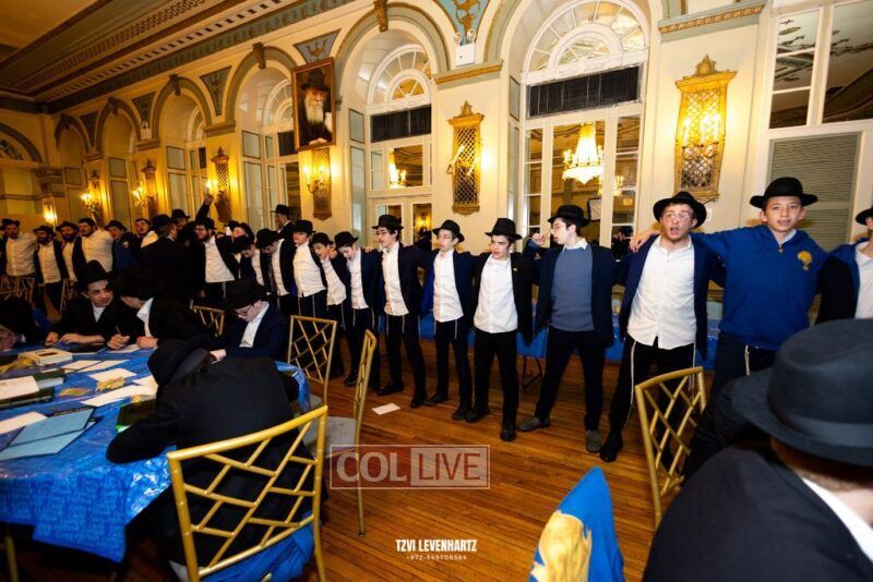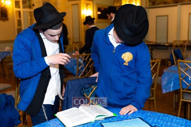 Boys in the International Chidon-Kol HaTorah Kulah program gathered on Motzei Shabbos to write Pan notes and for an upbeat Melava Malka. Photos