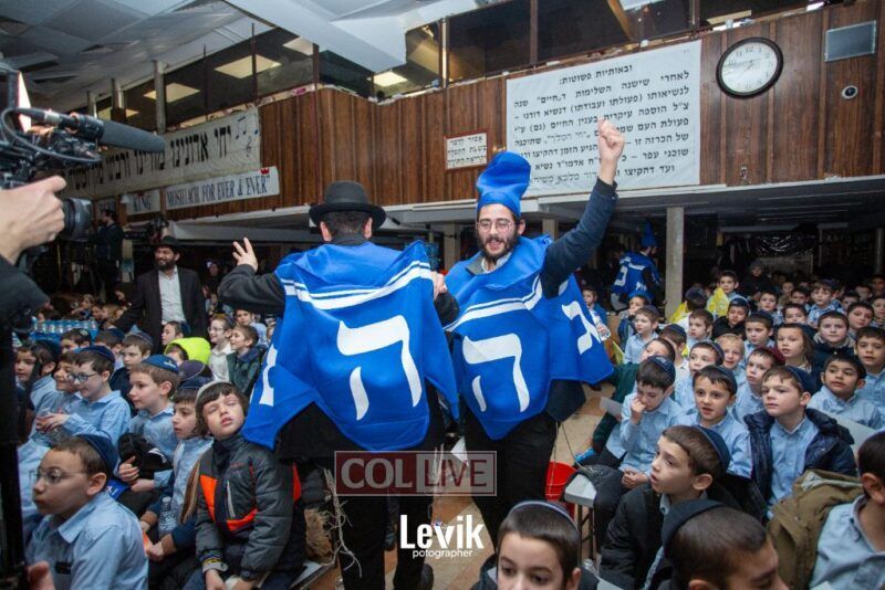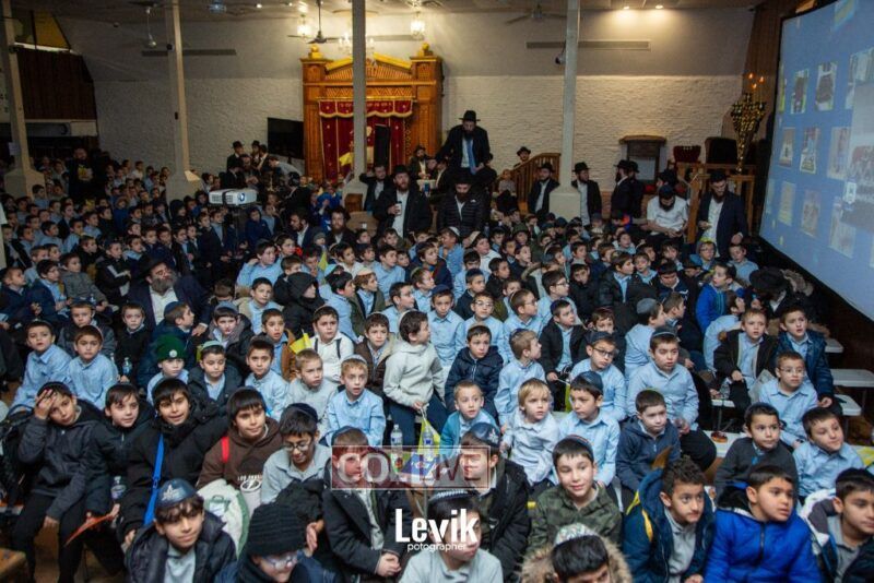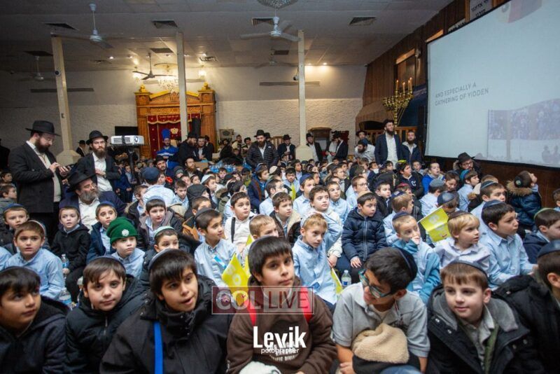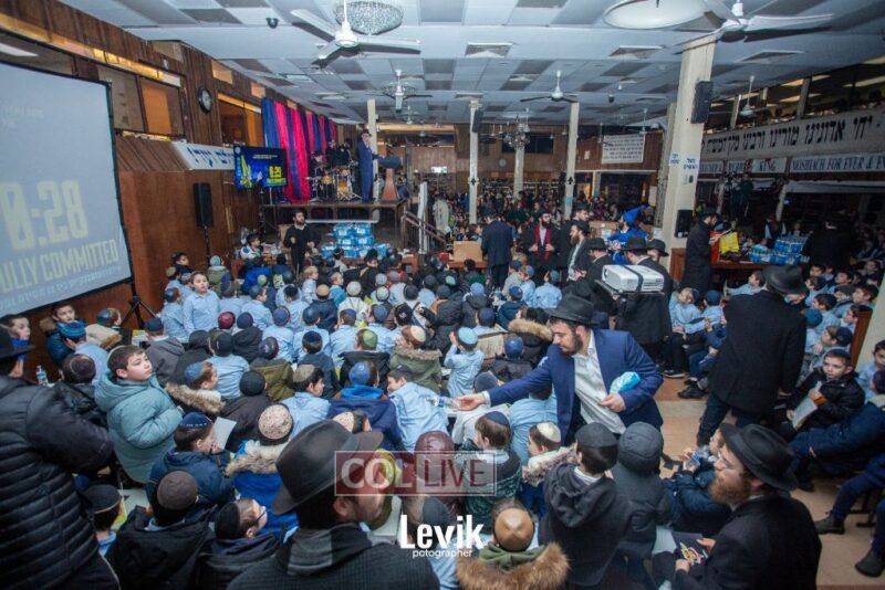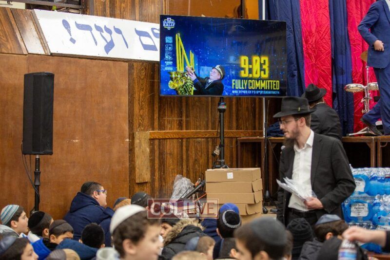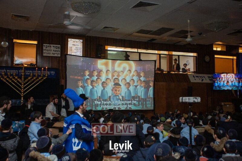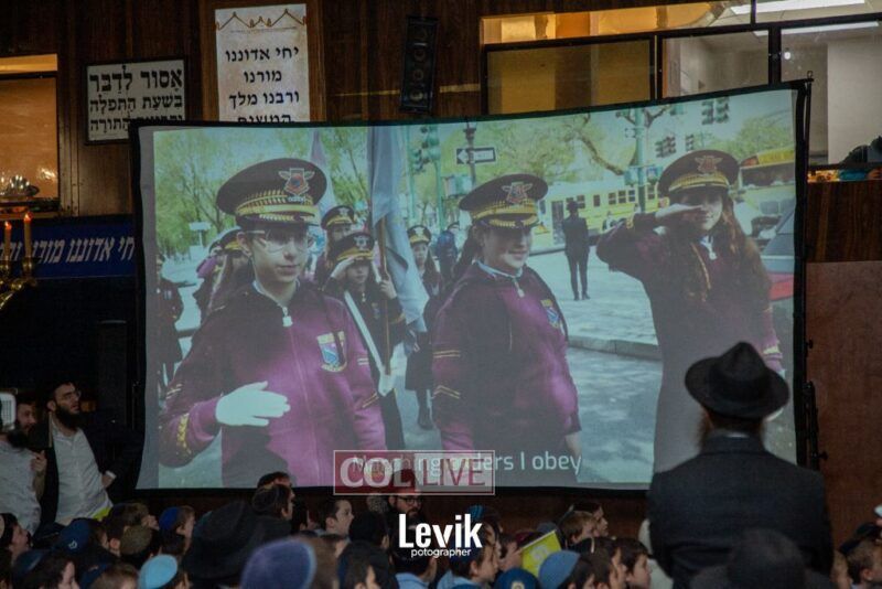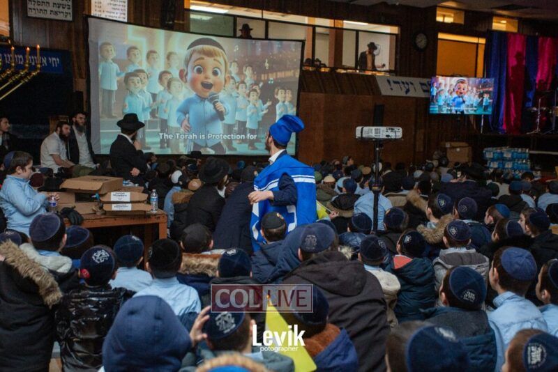 During the rally, an incredible film brought to life how in the times of Chanukah most Jews became Misyavnim. There were a few Maccabis, the Tzivos Hashem of then, who went on mesiras nefesh, in their zechus we merited the miracle of Chanukah.