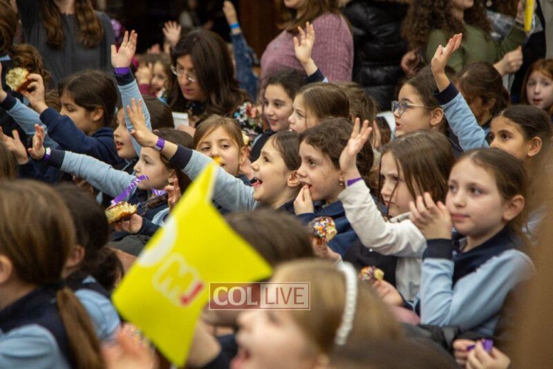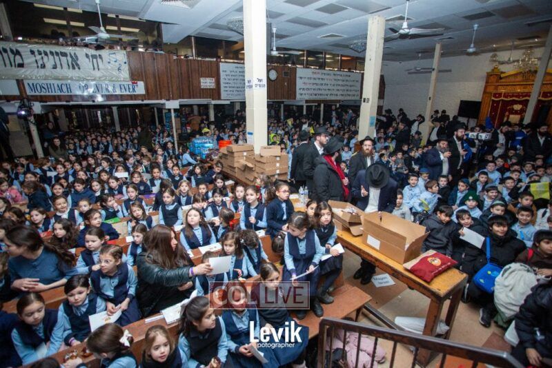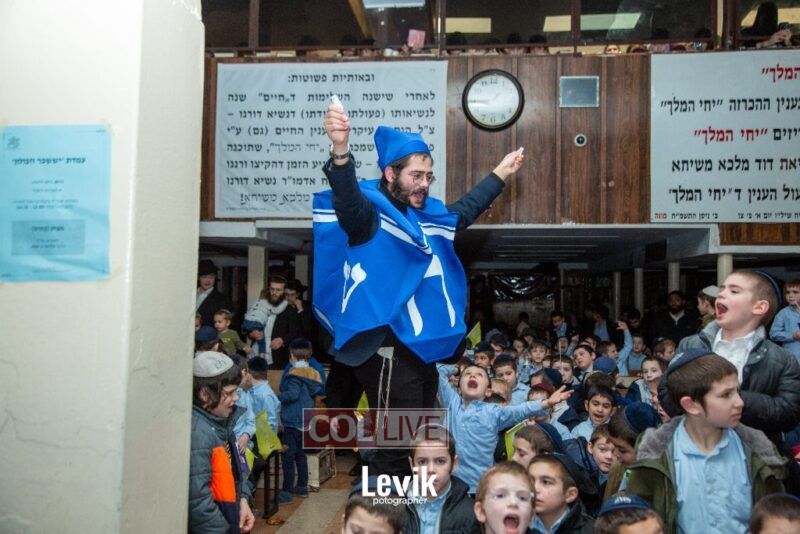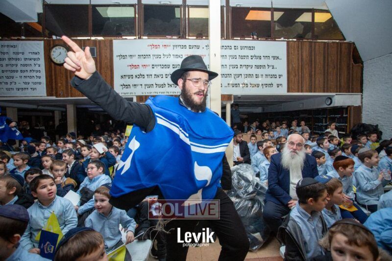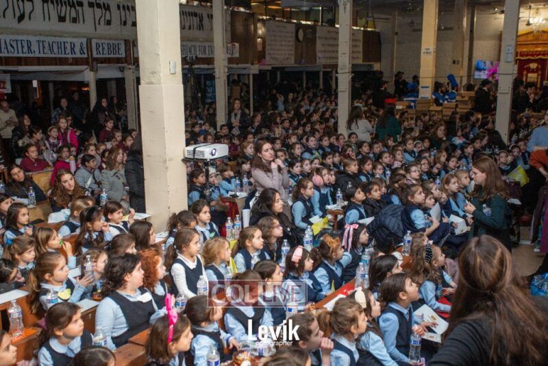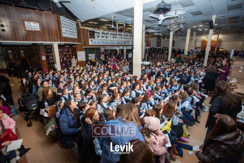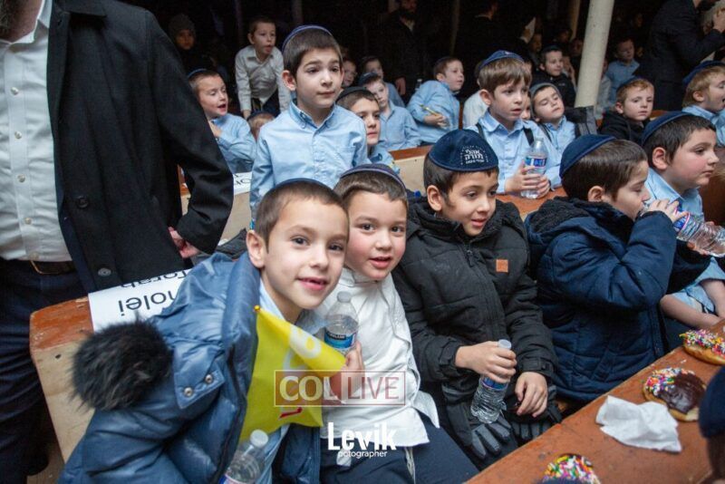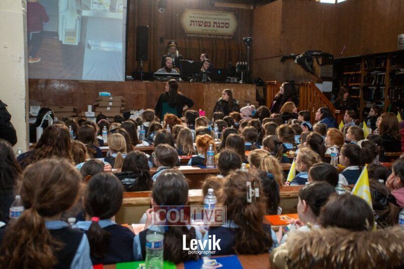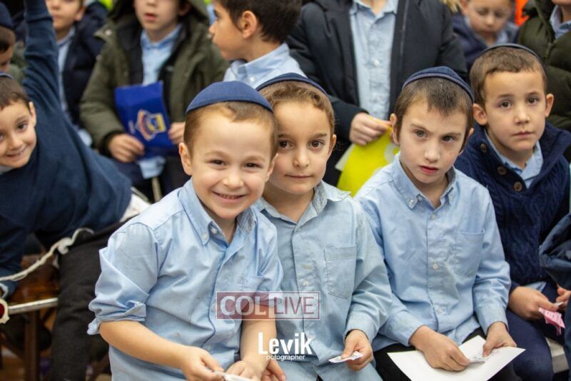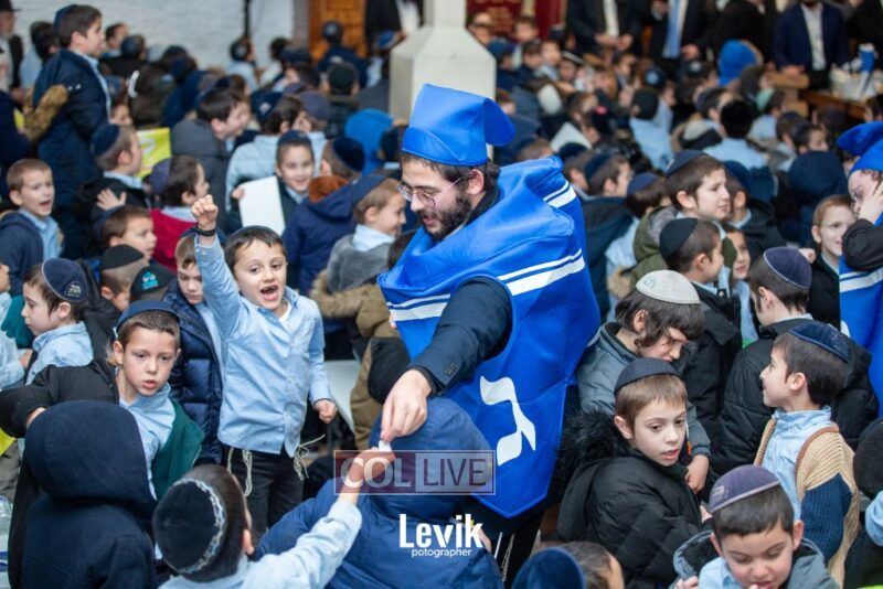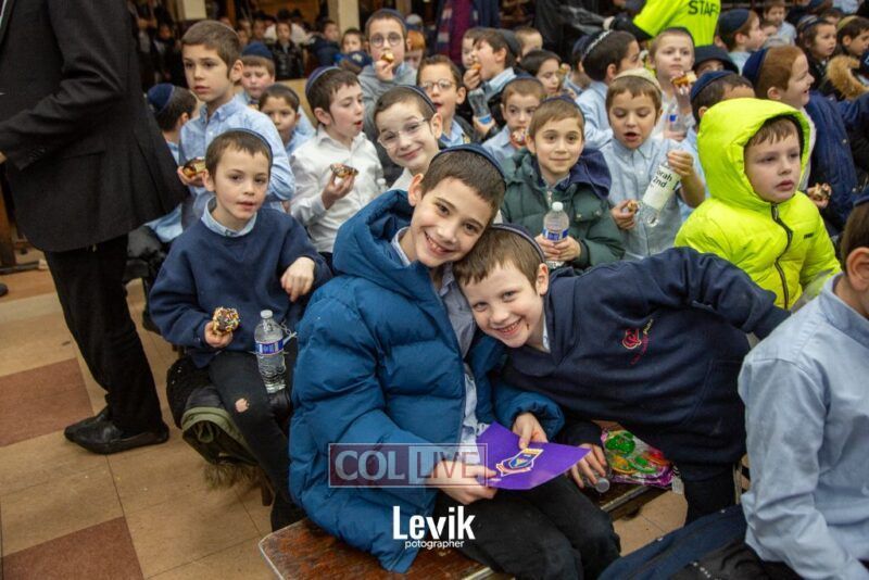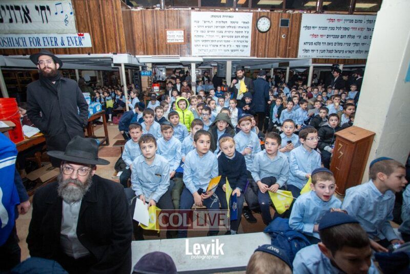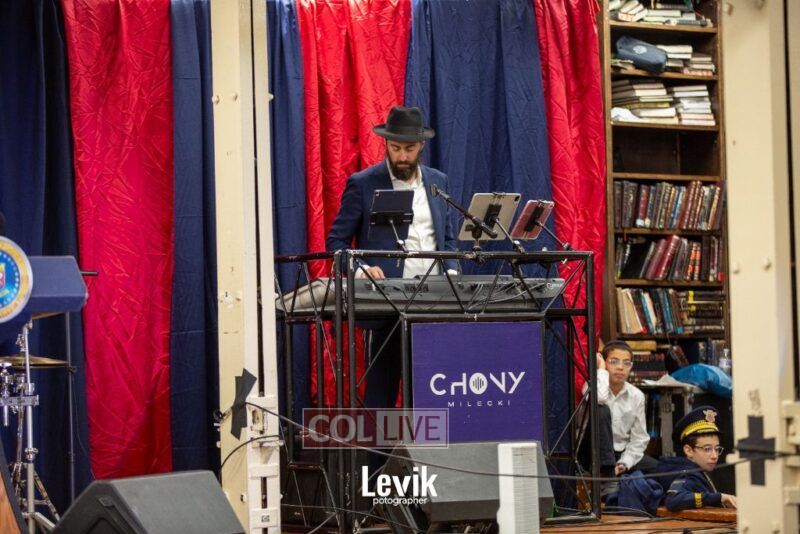 The children sang uplifting niggunim with singers Berel and Chony Zucker and musicians Chony Milecki on the keyboard and Shlomo Recu on the drums.