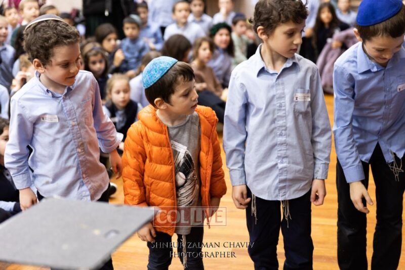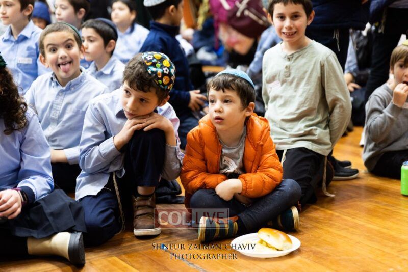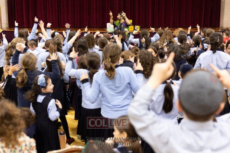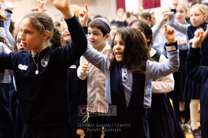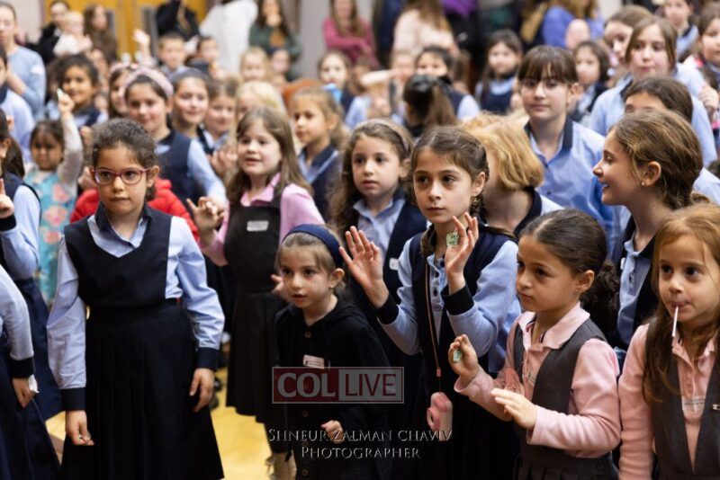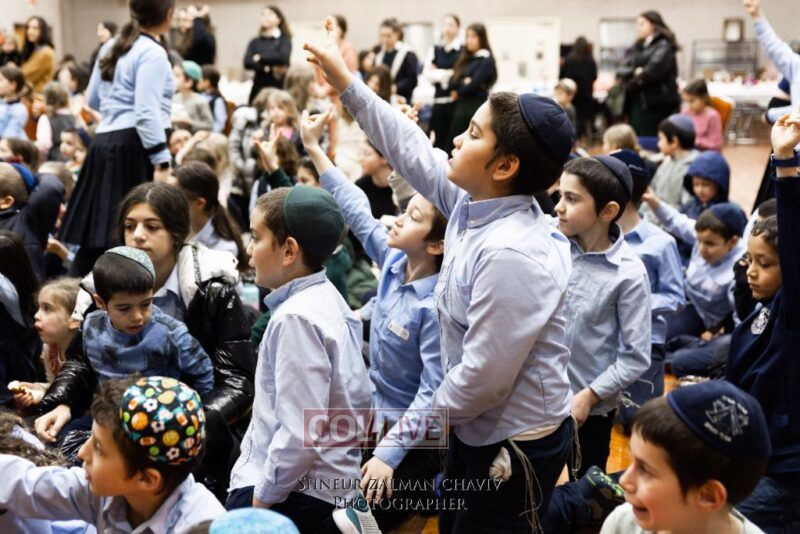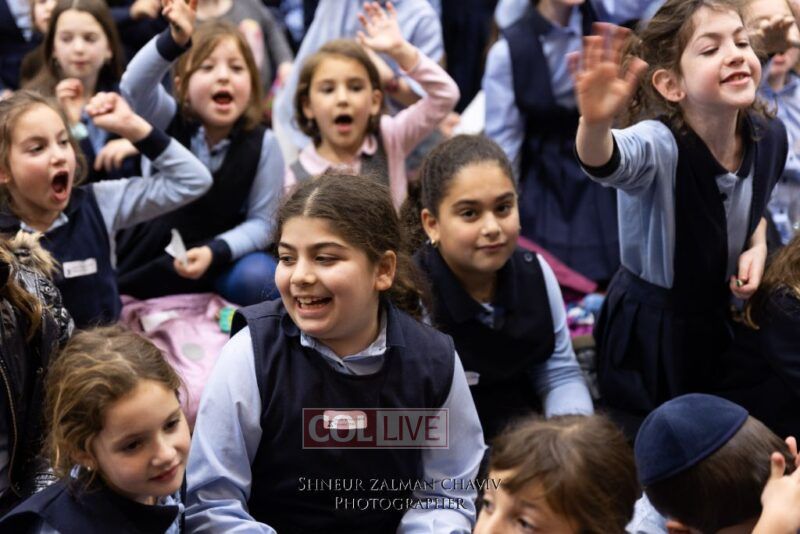 Hundreds of Crown Heights kids joined a gathering on Asara B’Teves featuring reciting the 12 Pesukim, ahavas yisroel craft, and entertainment.