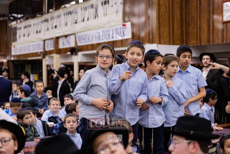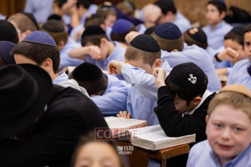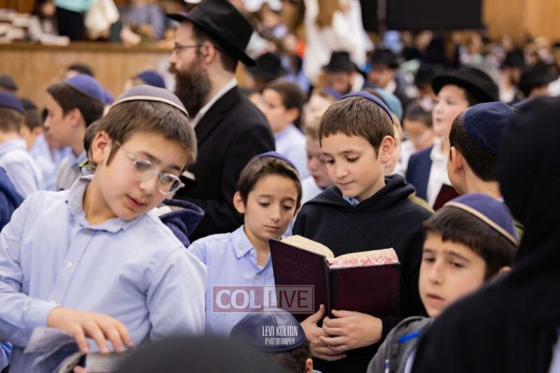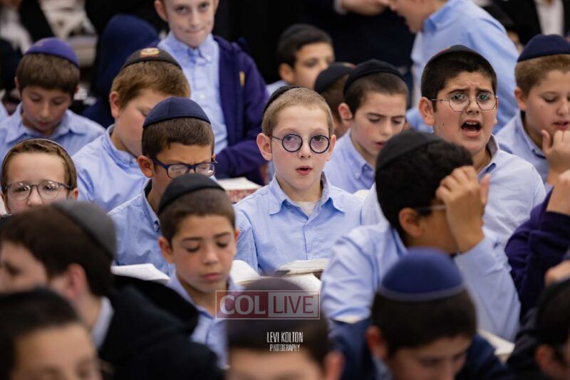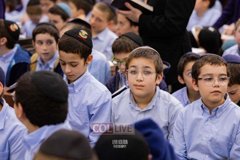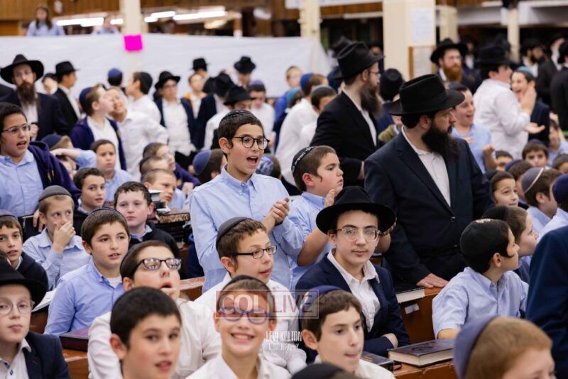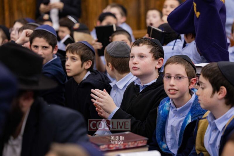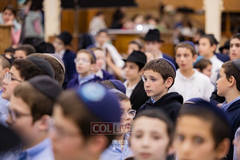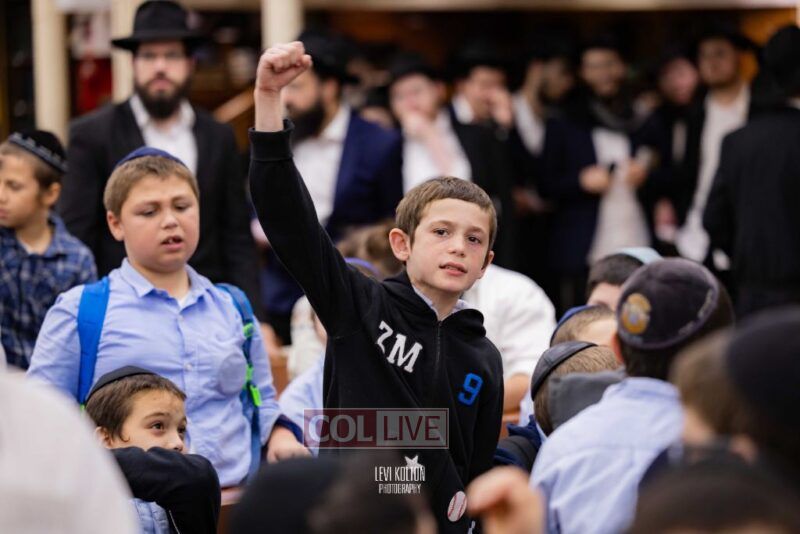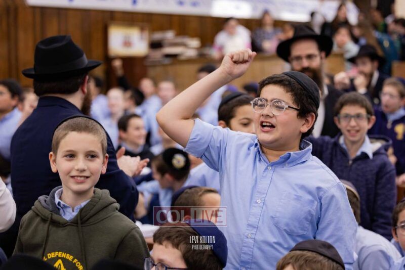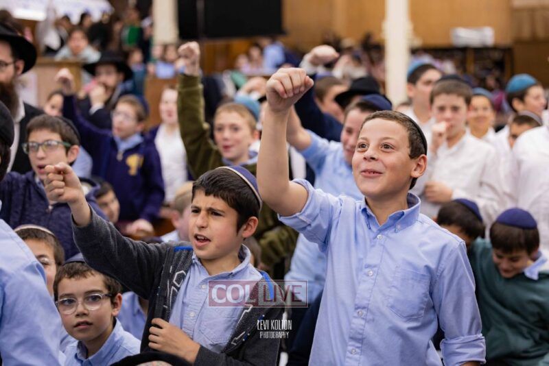 Children from Crown Heights schools gathered at 770 Eastern Parkway on Thursday for a rally of Torah, Tefillah and Tzedaka led by Rabbi Shimon Hecht in the merit of the safety of Israel. Photos