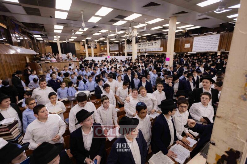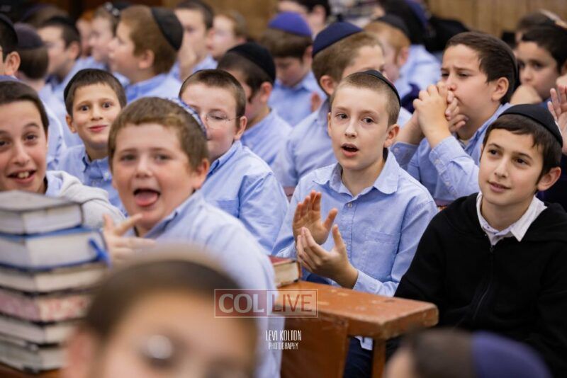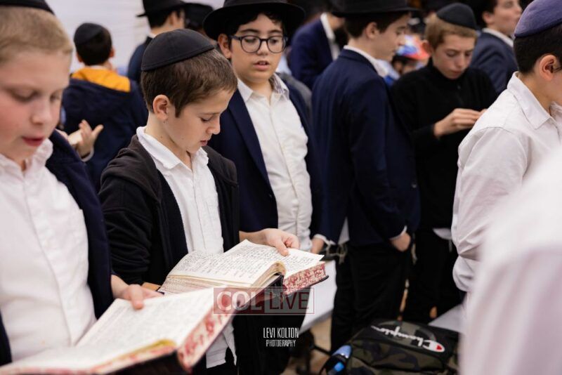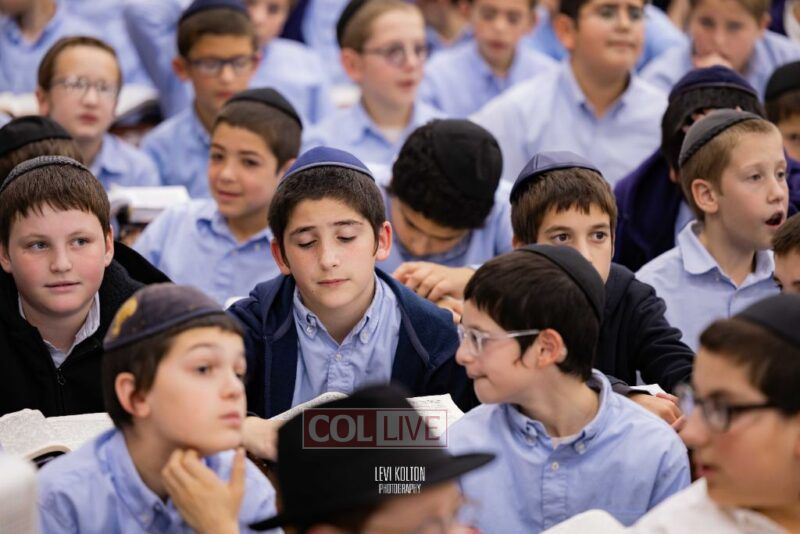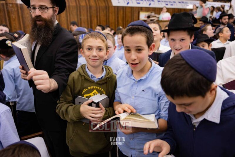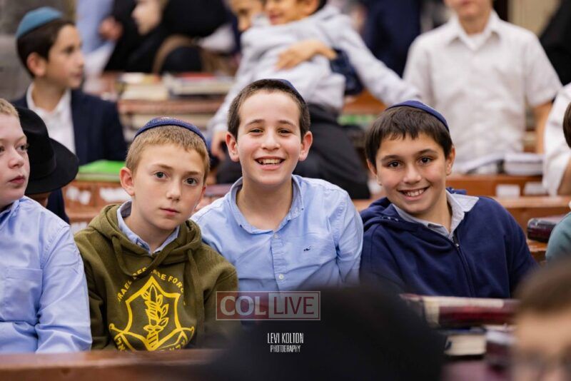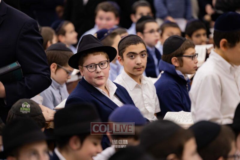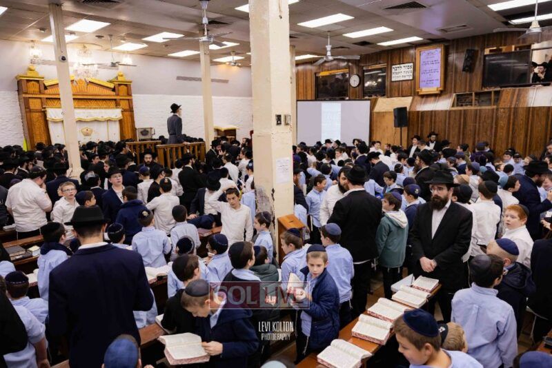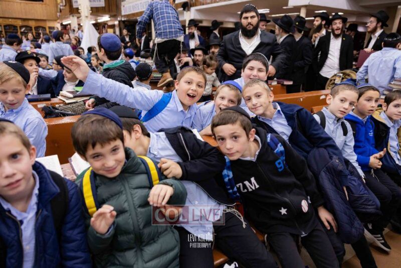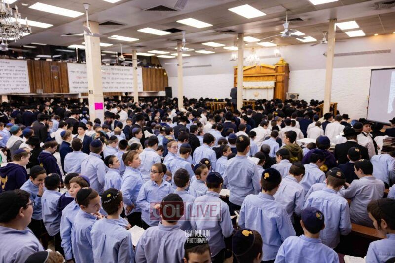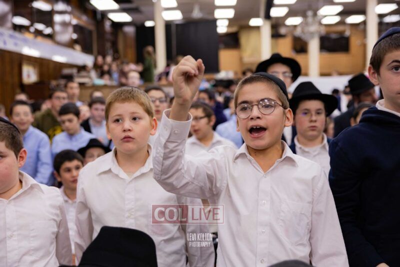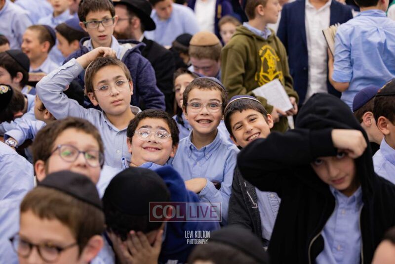 Children from Crown Heights schools gathered at 770 Eastern Parkway on Thursday for a rally of Torah, Tefillah and Tzedaka led by Rabbi Shimon Hecht in the merit of the safety of Israel. Photos
