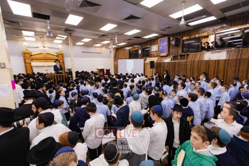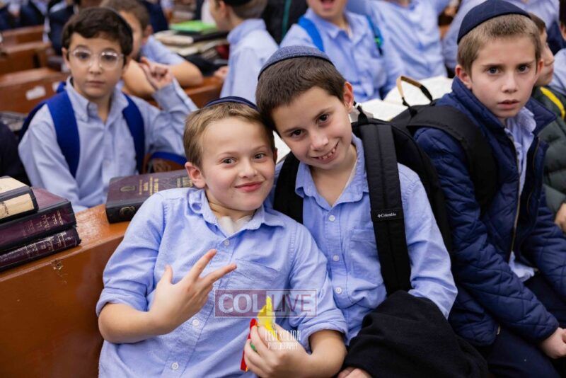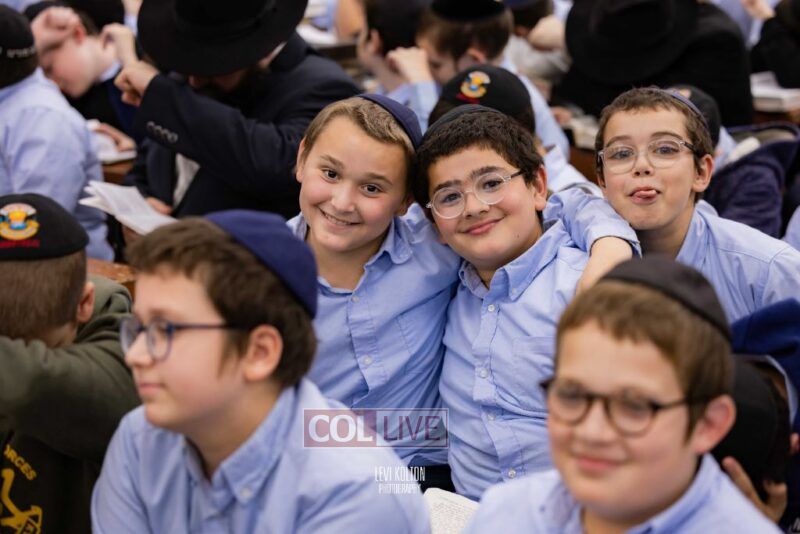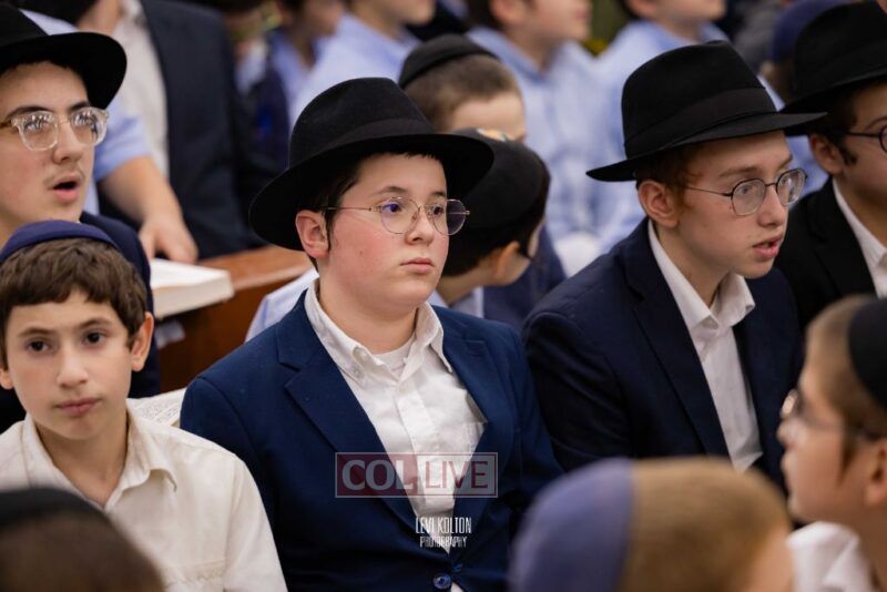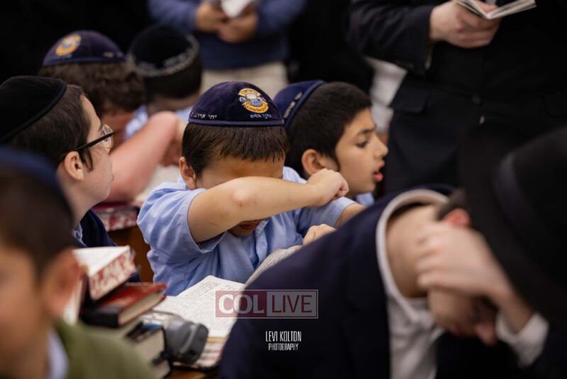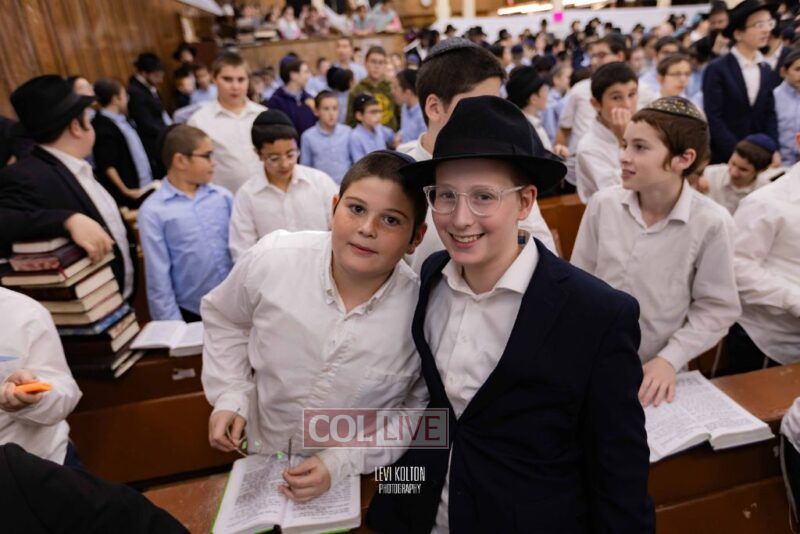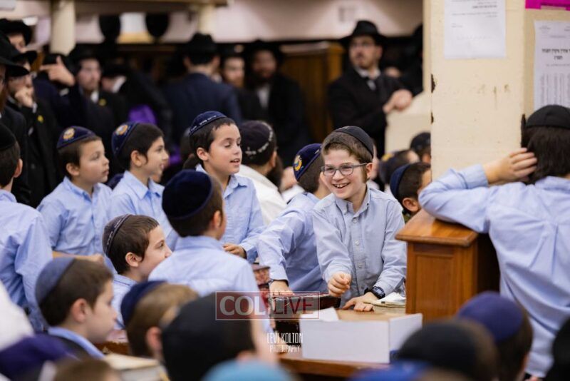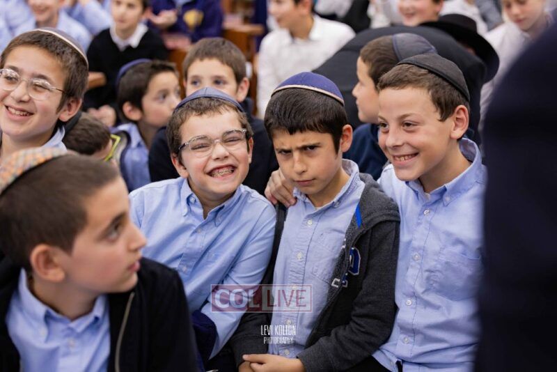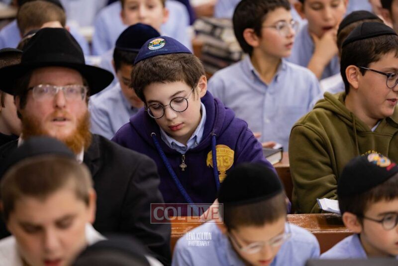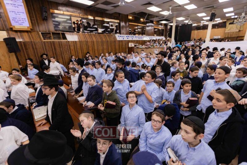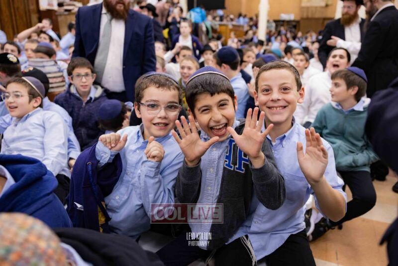 Children from Crown Heights schools gathered at 770 Eastern Parkway on Thursday for a rally of Torah, Tefillah and Tzedaka led by Rabbi Shimon Hecht in the merit of the safety of Israel. Photos