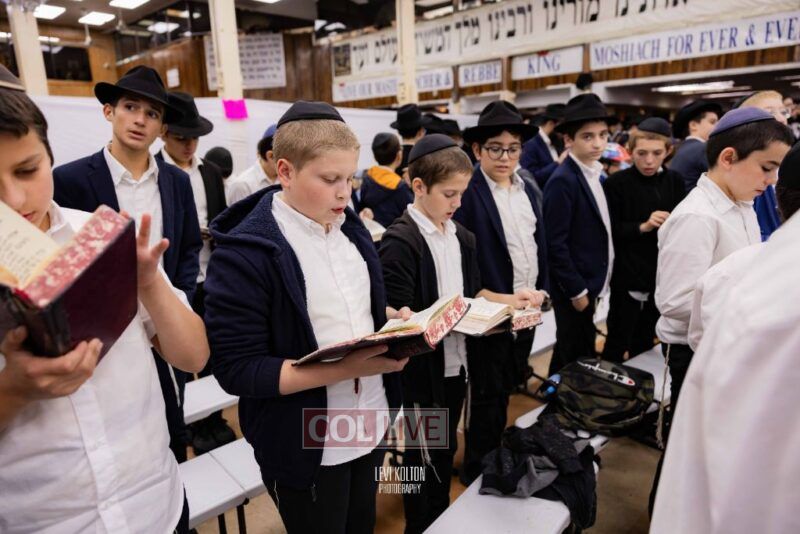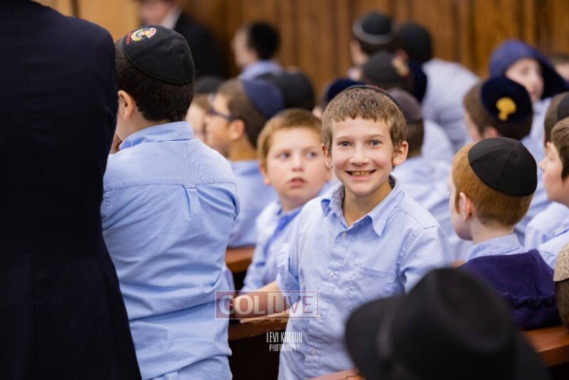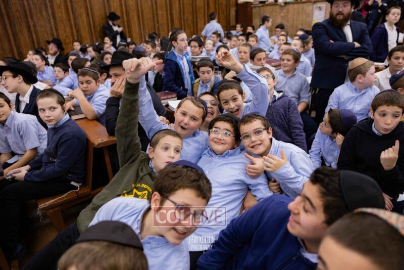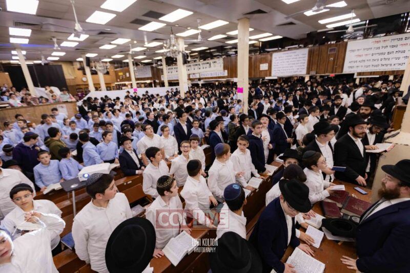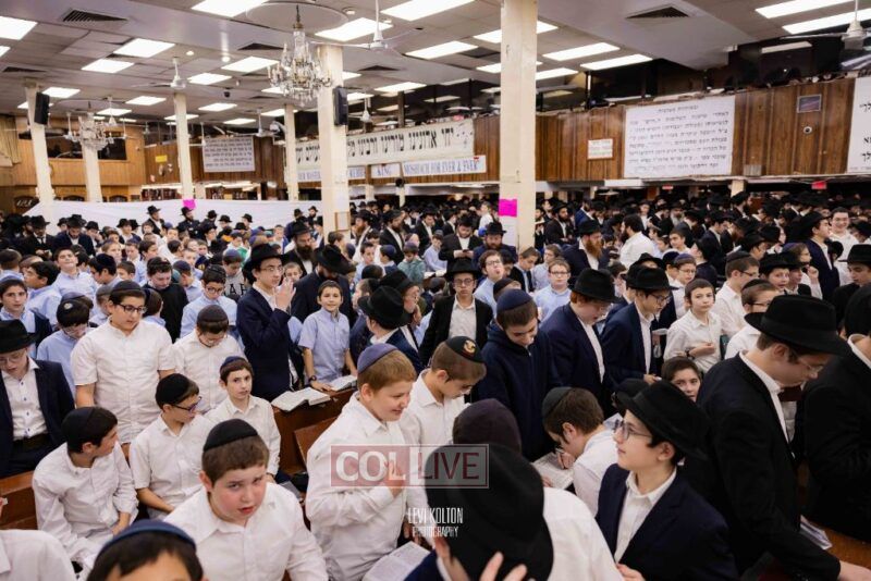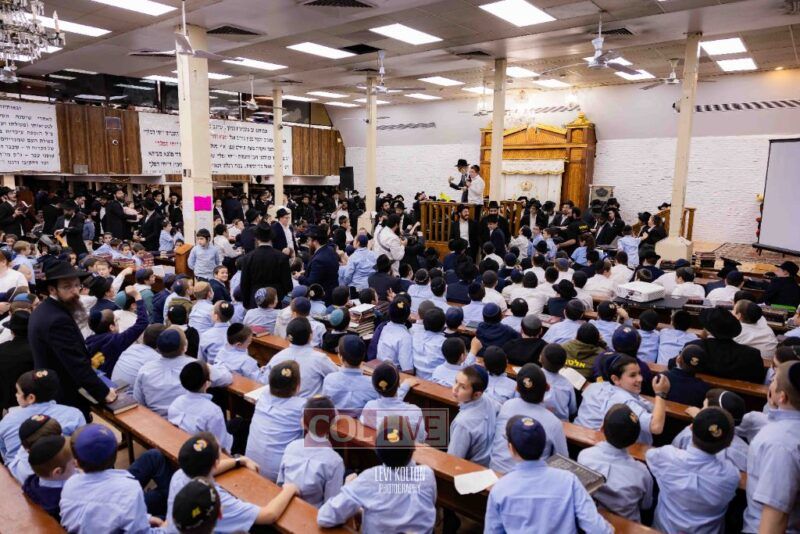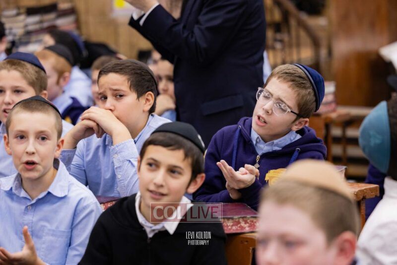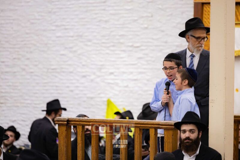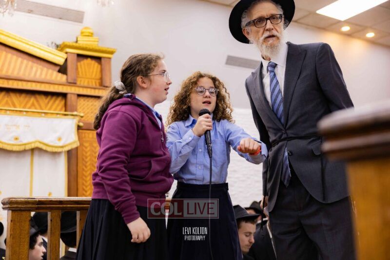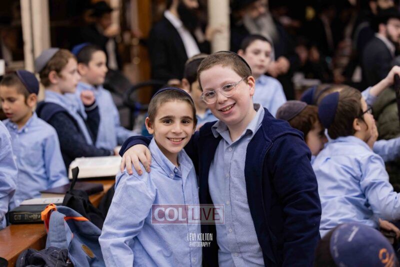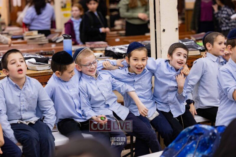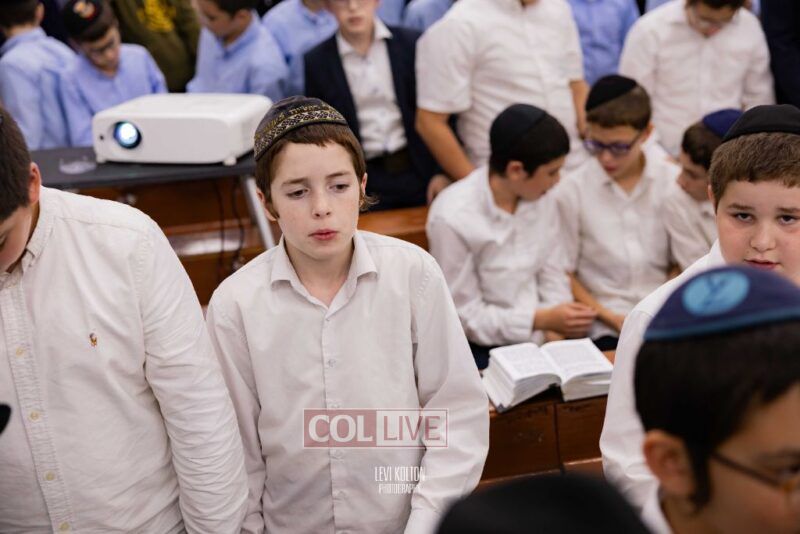 Children from Crown Heights schools gathered at 770 Eastern Parkway on Thursday for a rally of Torah, Tefillah and Tzedaka led by Rabbi Shimon Hecht in the merit of the safety of Israel. Photos