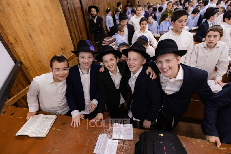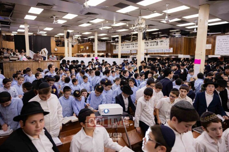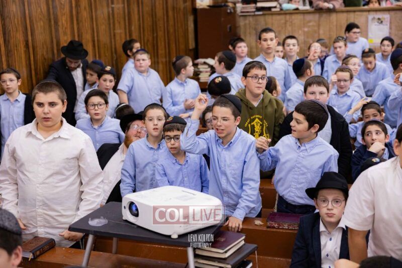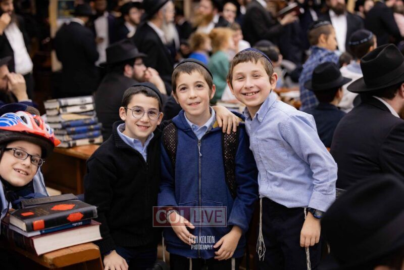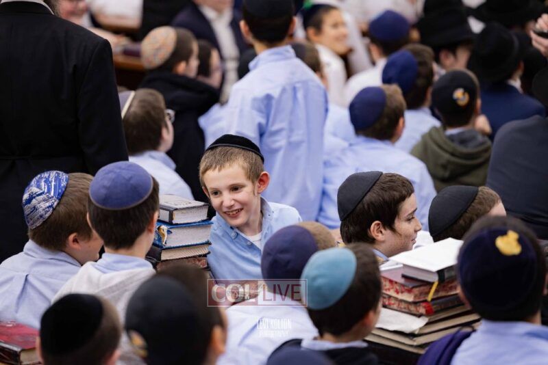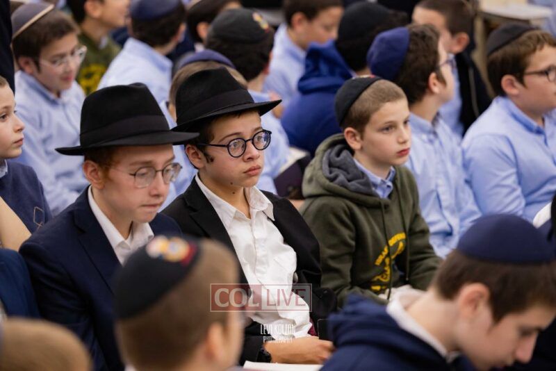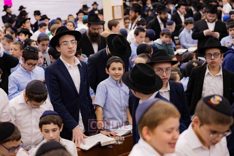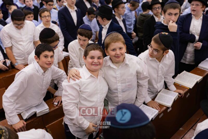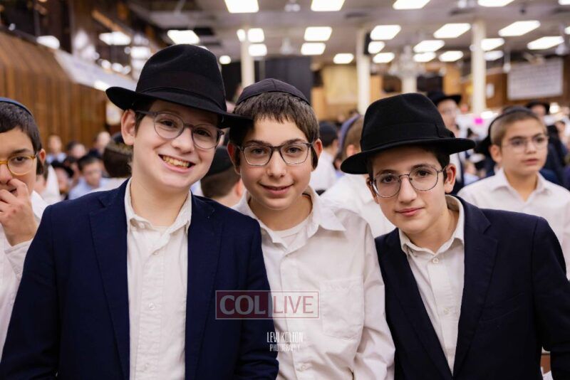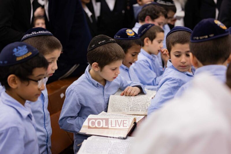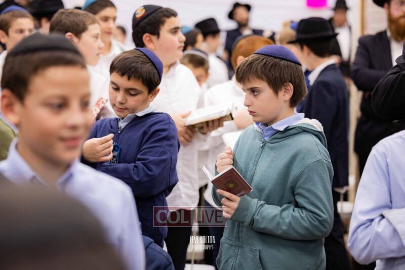 Children from Crown Heights schools gathered at 770 Eastern Parkway on Thursday for a rally of Torah, Tefillah and Tzedaka led by Rabbi Shimon Hecht in the merit of the safety of Israel. Photos