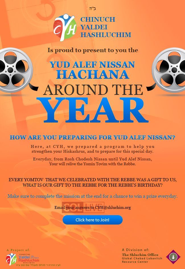 Chinuch Yaldei HaShluchim, founded in memory of Reb Mendel and Sarah Shemtov A”H, presents a kid-friendly preparation for Yud Alef Nissan.