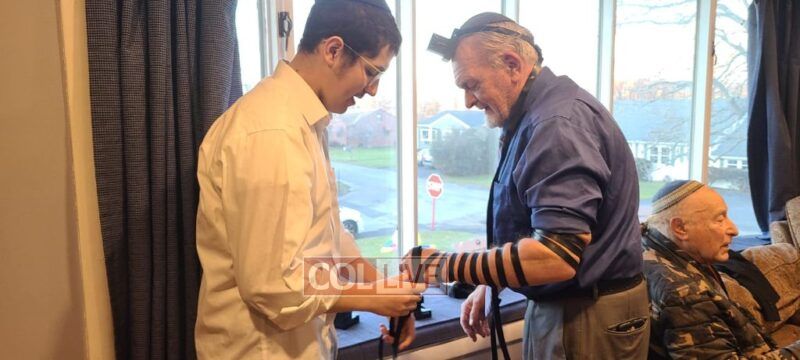 Attached are pictures of the public officials, Head Shliach Rabbi Yisroel Rubin, Meir Itkin putting on Tefillin with people in honor of his Zaidy Itkin.