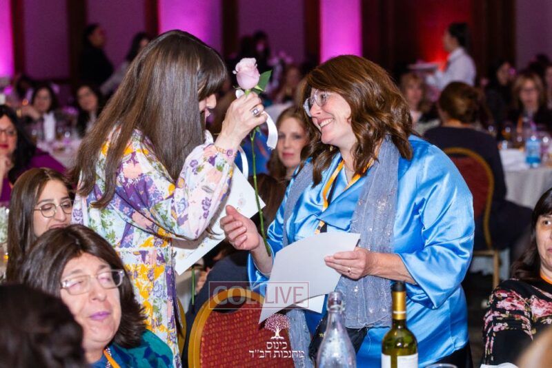 Following this, a surprise award ceremony moved and inspired mechanchos, recognizing veteran educator Mrs. Batsheva Deren, a member of the Vaad Hakinus, for her tireless and ongoing dedication to students and educators alike. In a surprising turn, Mrs. Deren then put the spotlight on new teachers embarking on their Chinuch Shlichus. 50 teachers in their first three years in Chinuch received a beautiful certificate and rose in gratitude for representing the future of Chinuch.