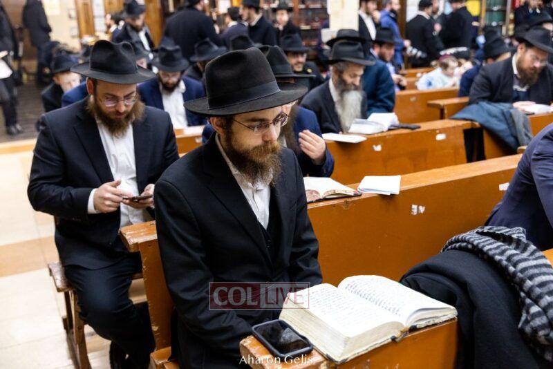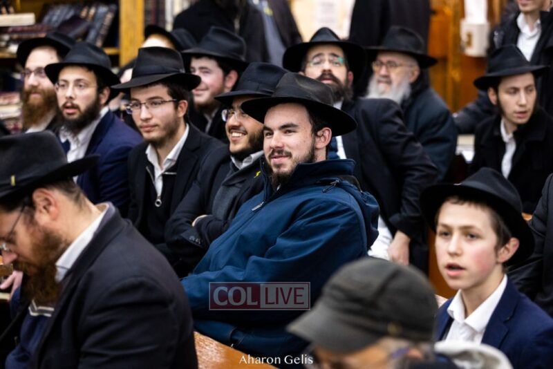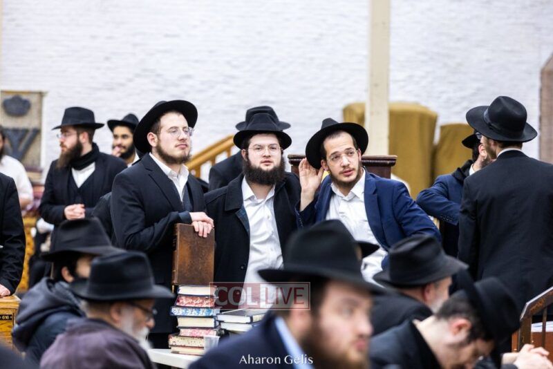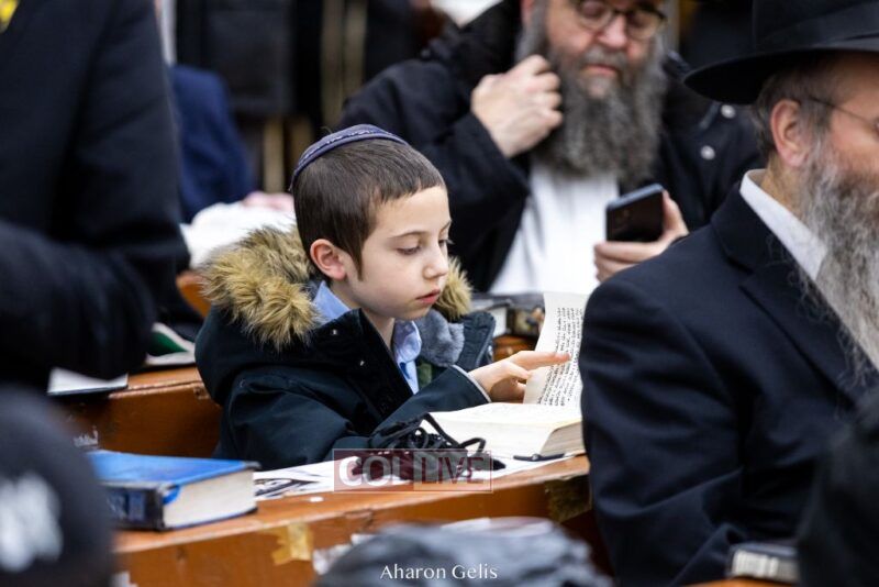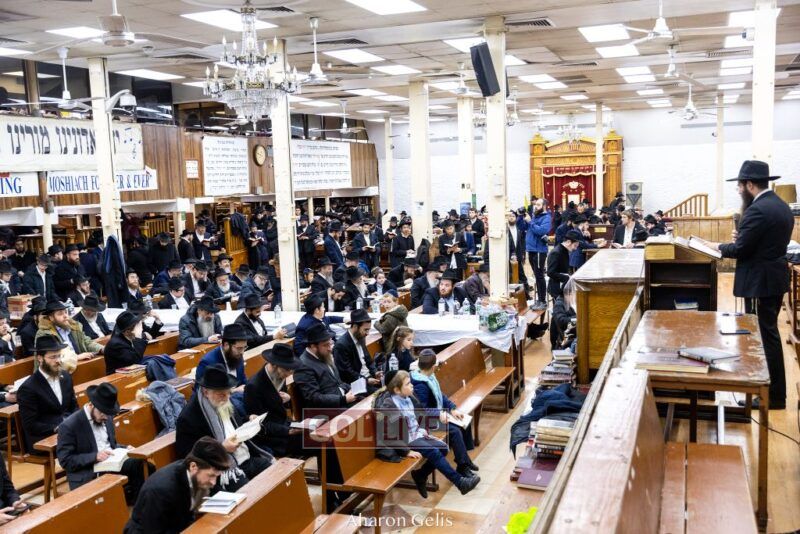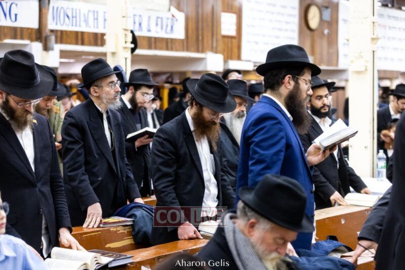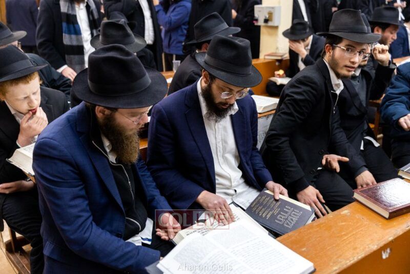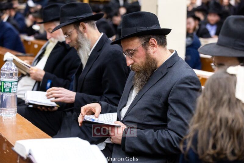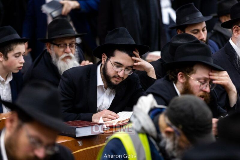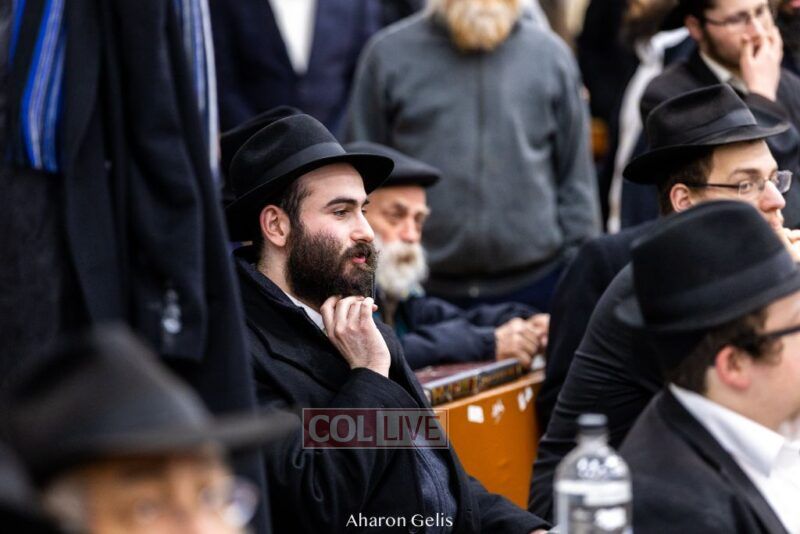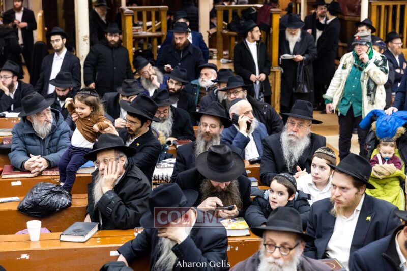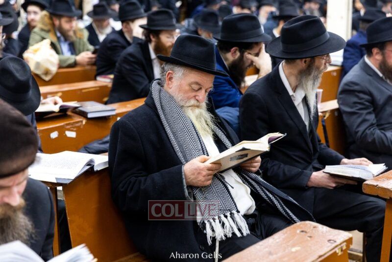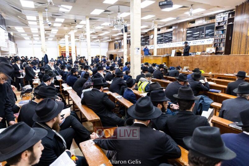 Some 300 Chassidim gathered to Daven, Learn, and take Hachlotos to increase in Mitzvos honoring the soldiers and “storming the heavens” to have the hostages released.