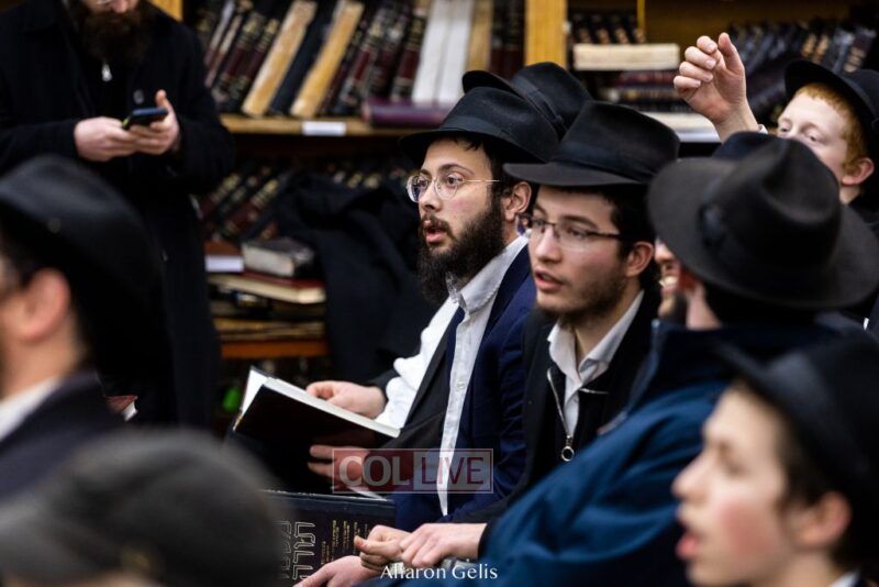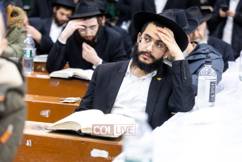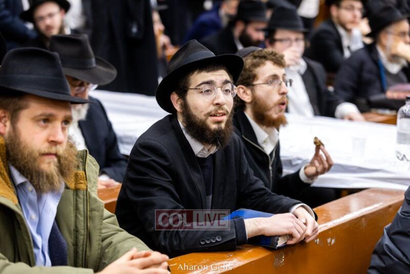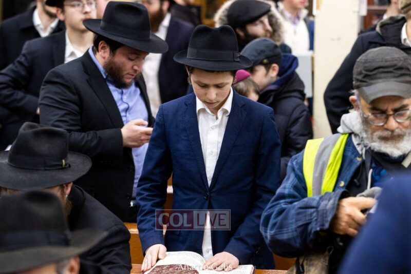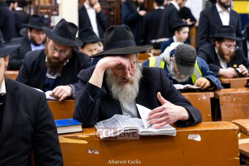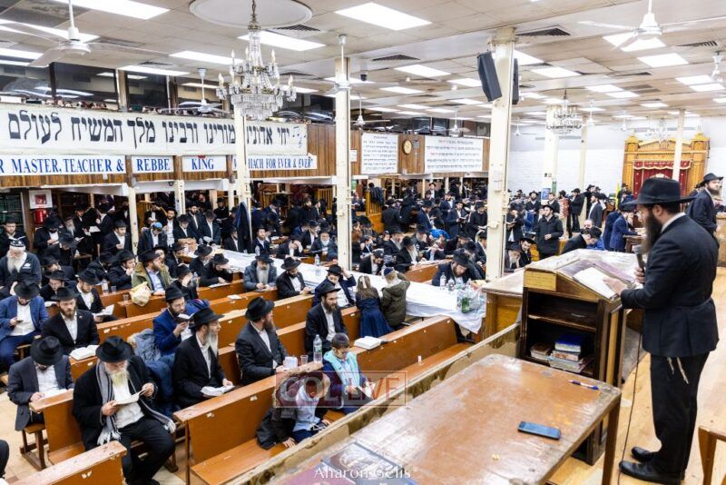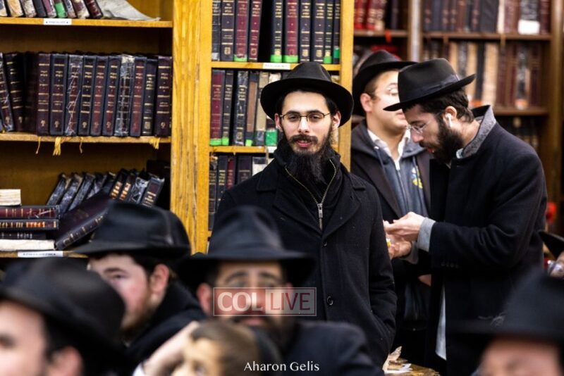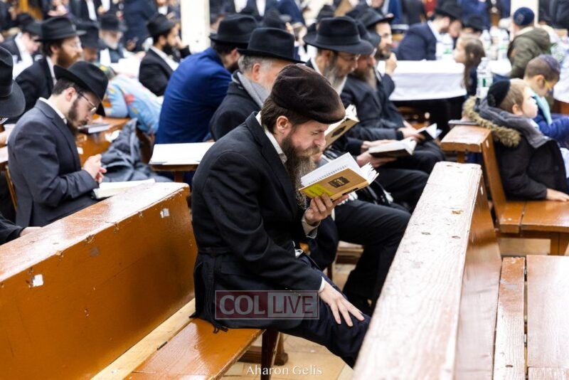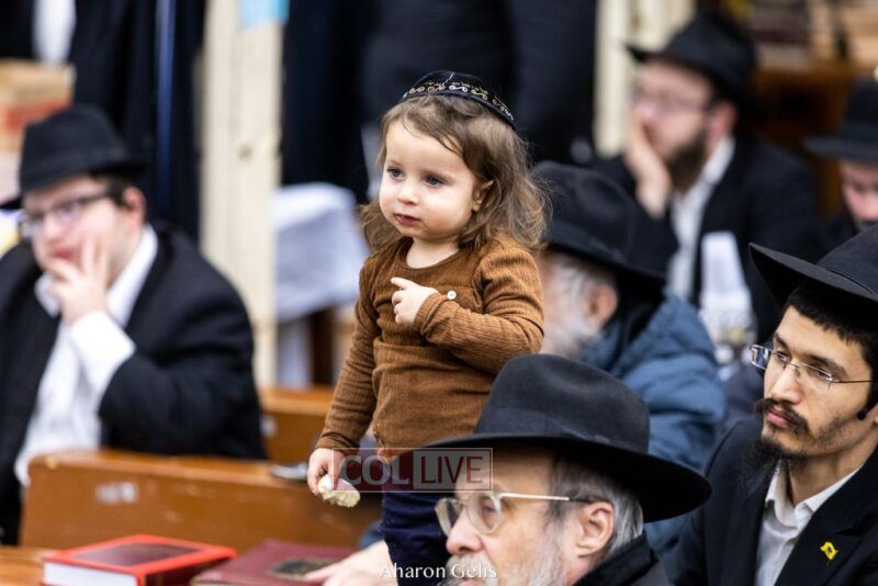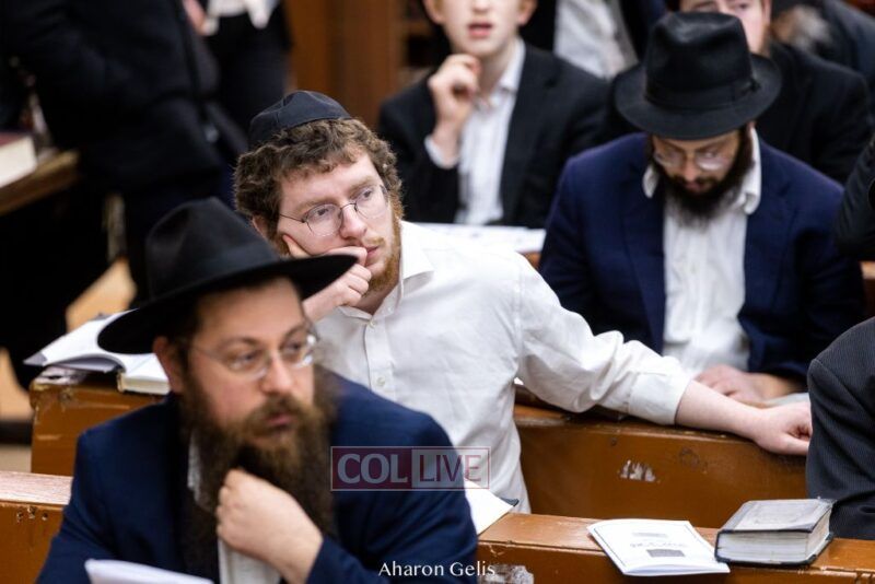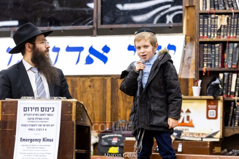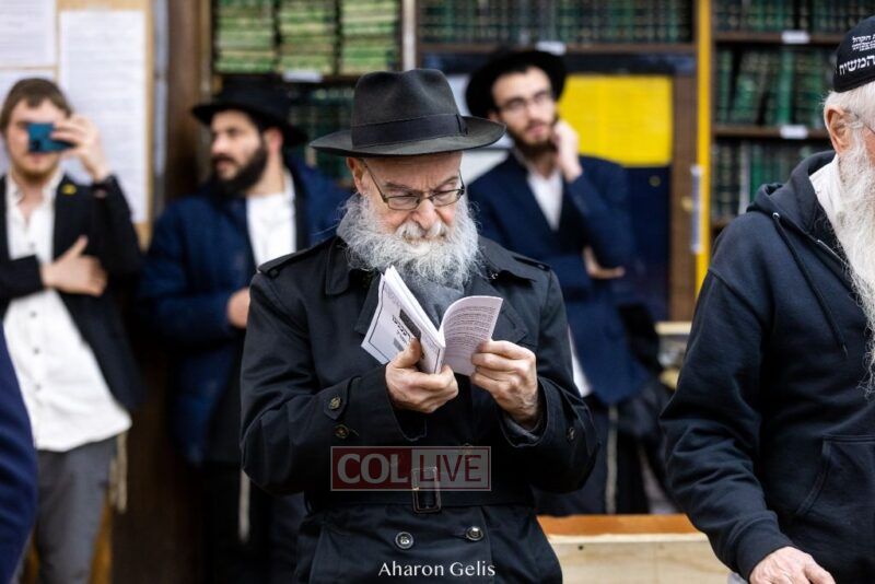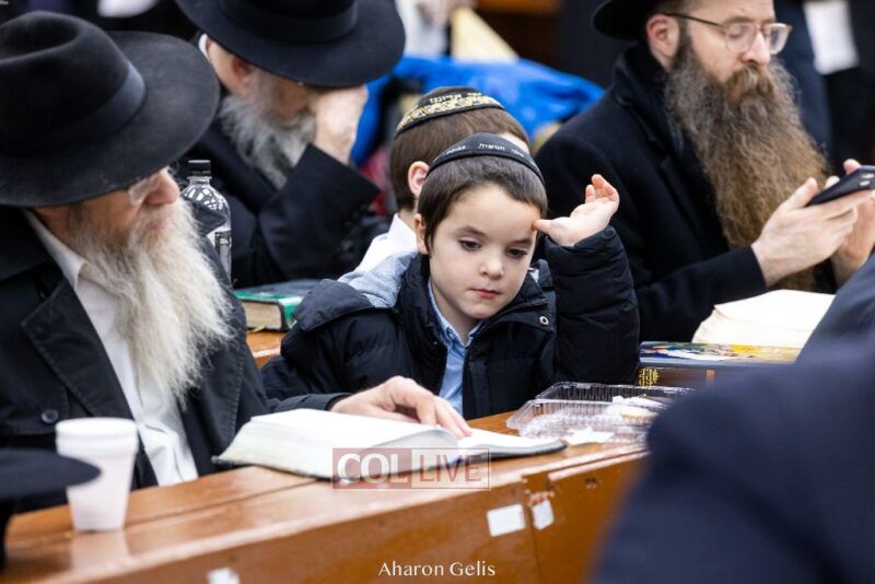 Some 300 Chassidim gathered to Daven, Learn, and take Hachlotos to increase in Mitzvos honoring the soldiers and “storming the heavens” to have the hostages released.