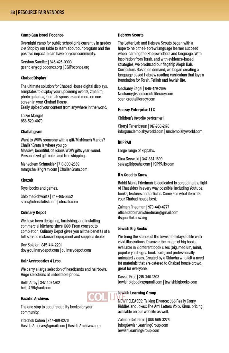 The Resource Fair will take place on Sunday, 21 Shevat – January 23 with over 35 vendors displaying a wide array of items in the gym of Oholei Torah, 667 Eastern Parkway, and will be open to the community from 3:00pm – 7:00pm.