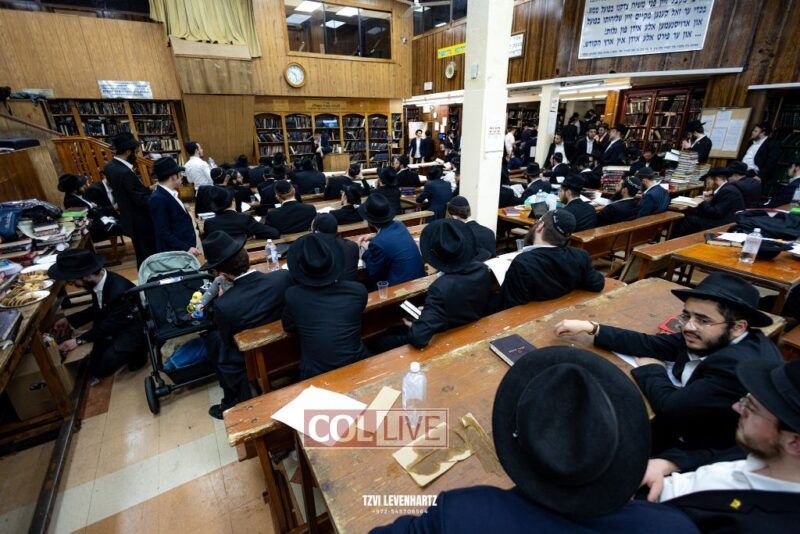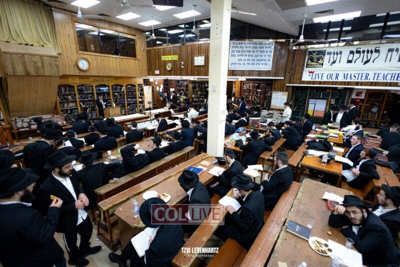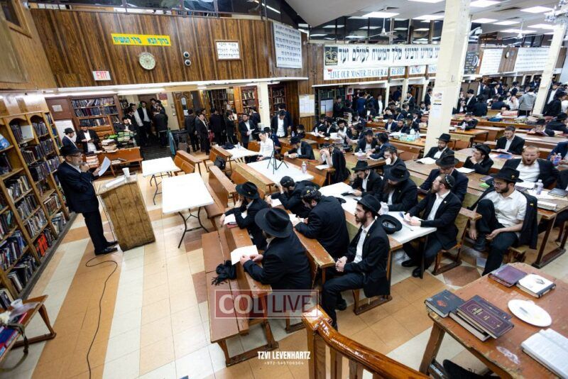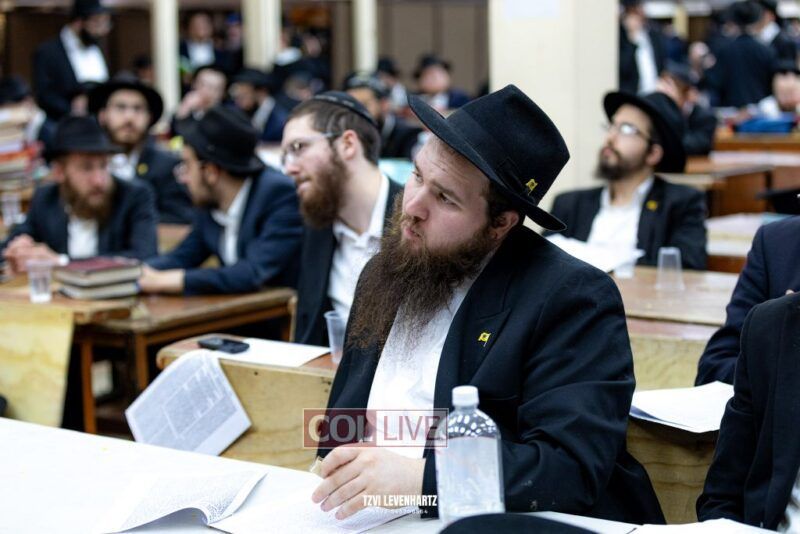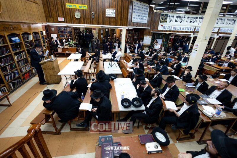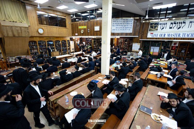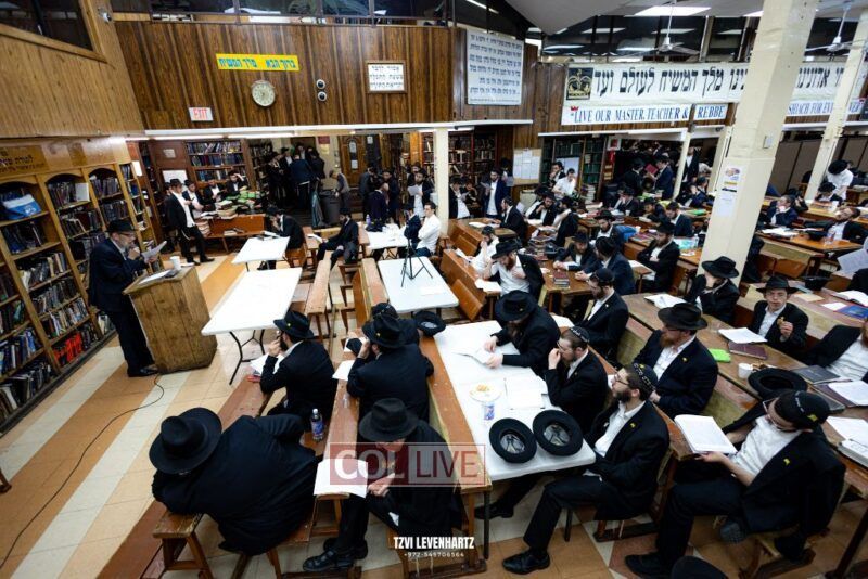 A crowd of bochurim and Chassidim gathered this past Wednesday for a Kinus Torah in the main shul of 770 Eastern Parkway in Crown Heights.