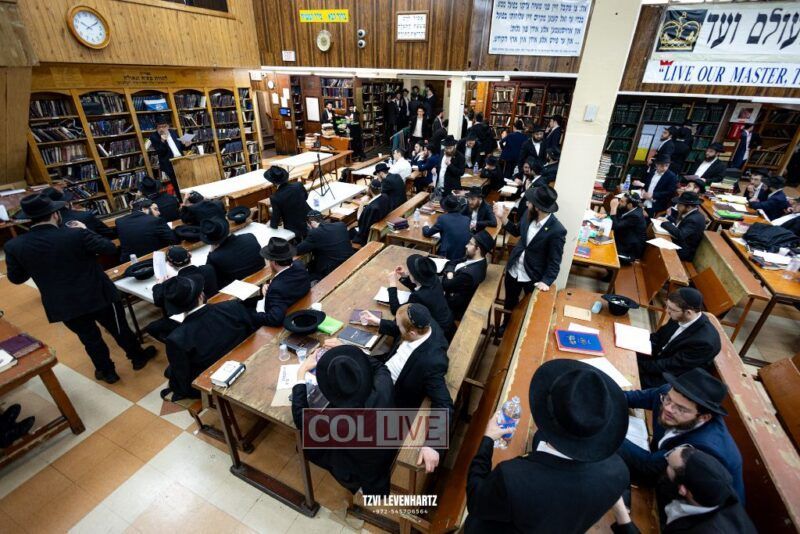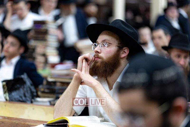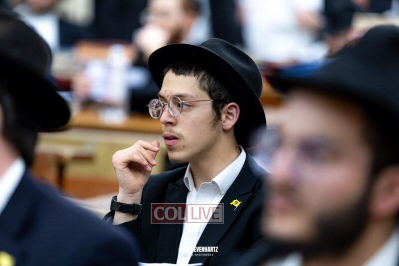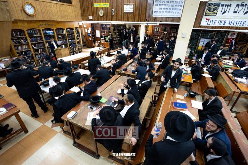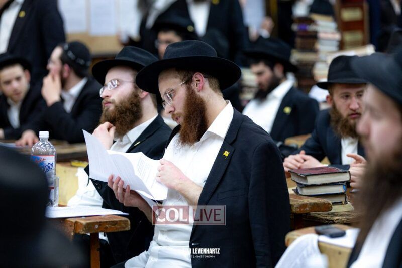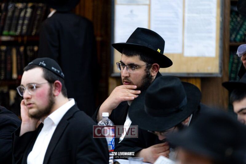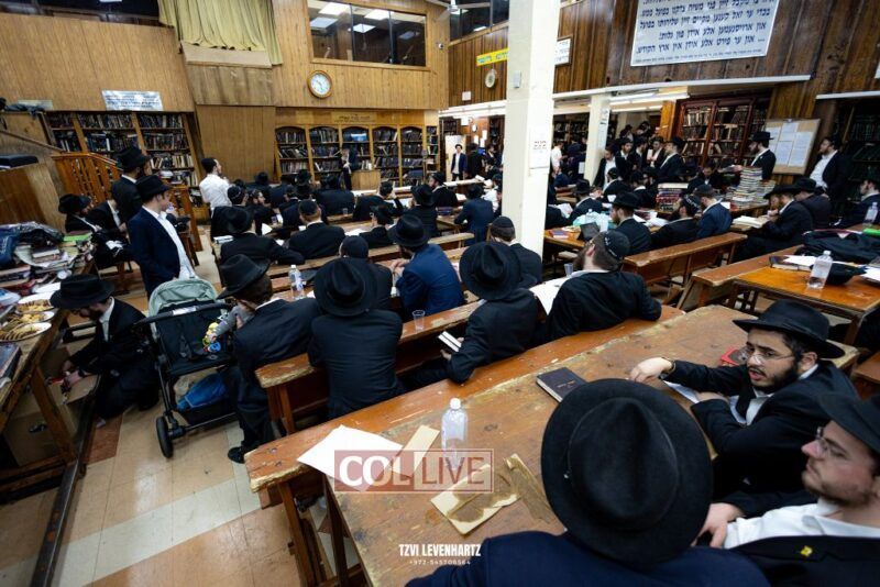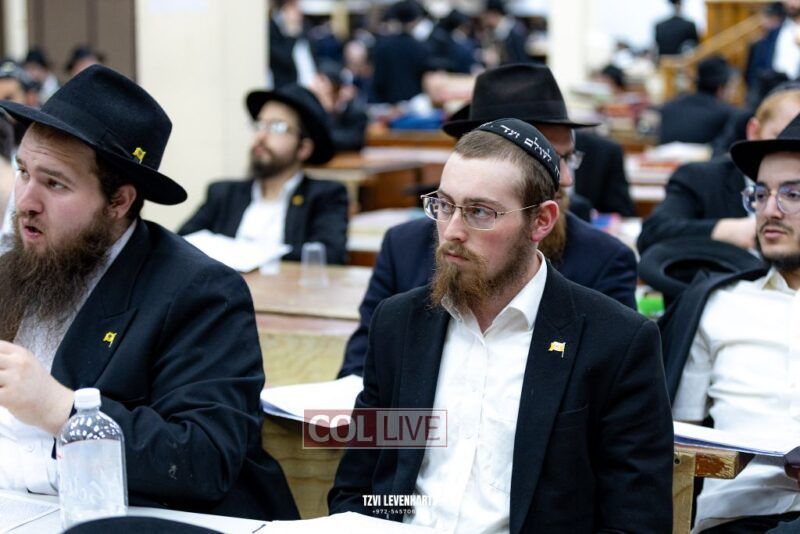 A crowd of bochurim and Chassidim gathered this past Wednesday for a Kinus Torah in the main shul of 770 Eastern Parkway in Crown Heights.