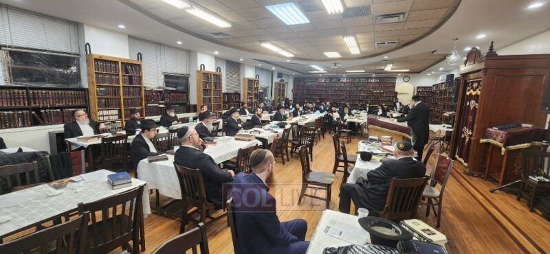 A crowd gathered at Kollel Menachem near 770 to hear fascinating lessons on the Rebbe’s Haggadah from Torah scholars specializing in its explanation, as well as teachings from Rabbi Levi Yitzchak.
