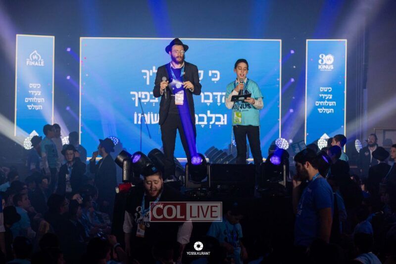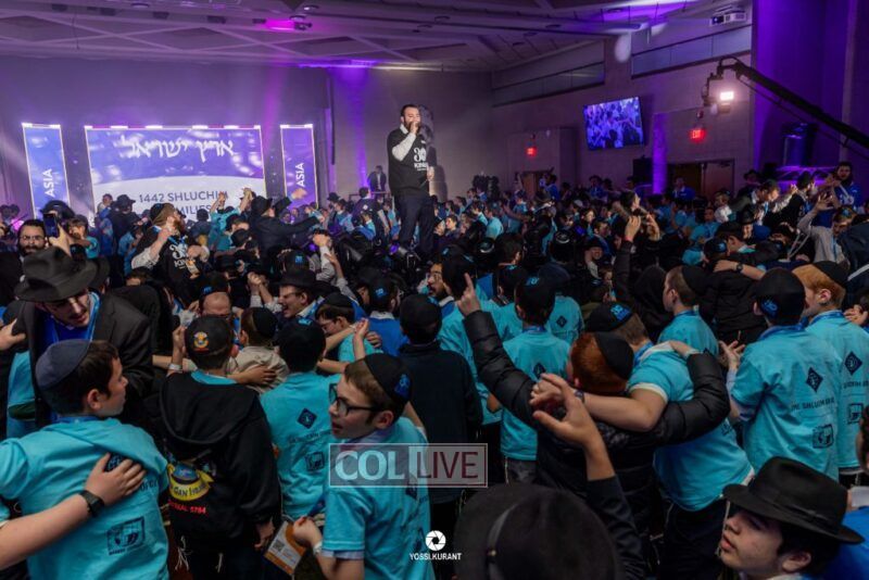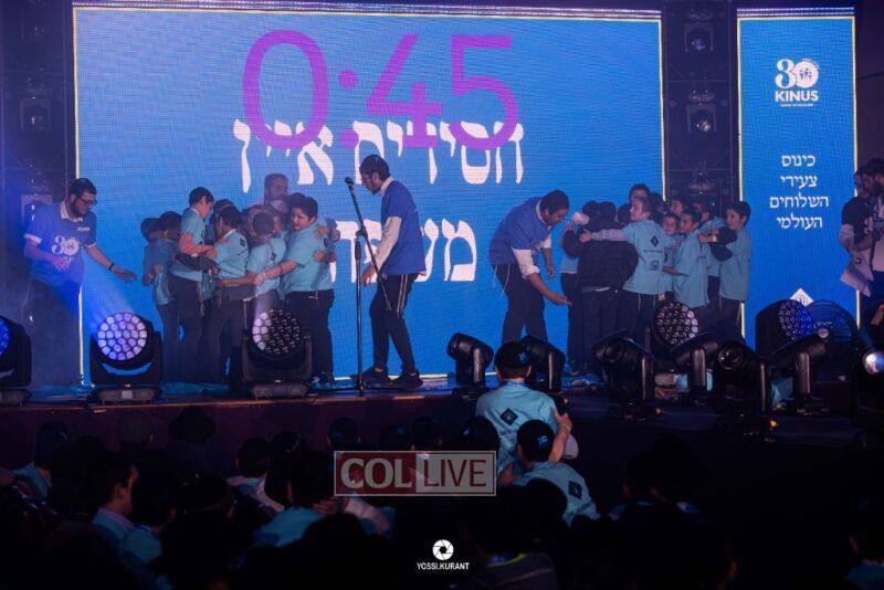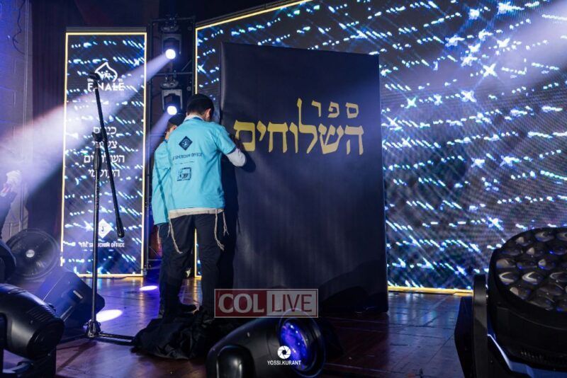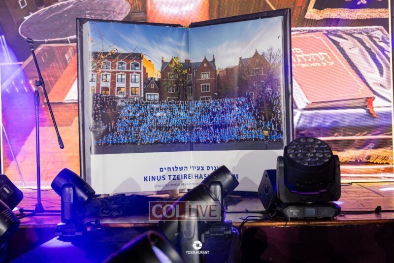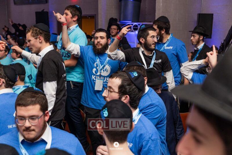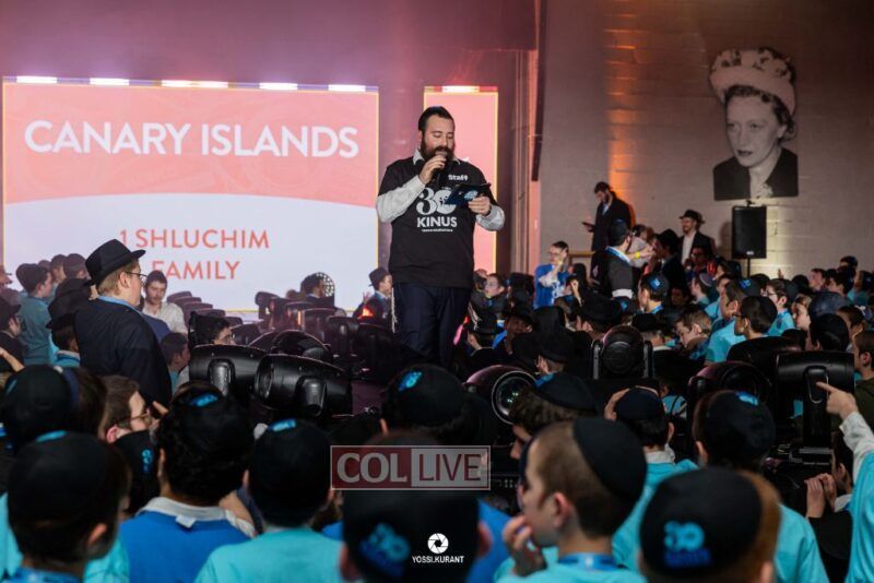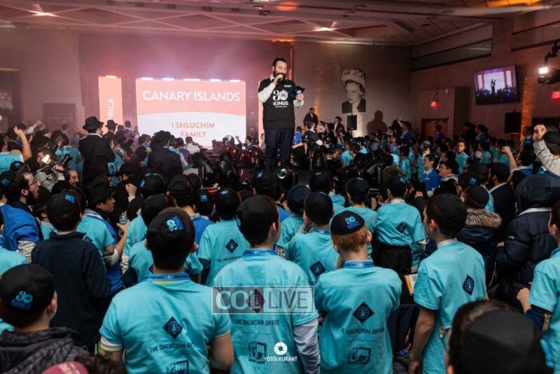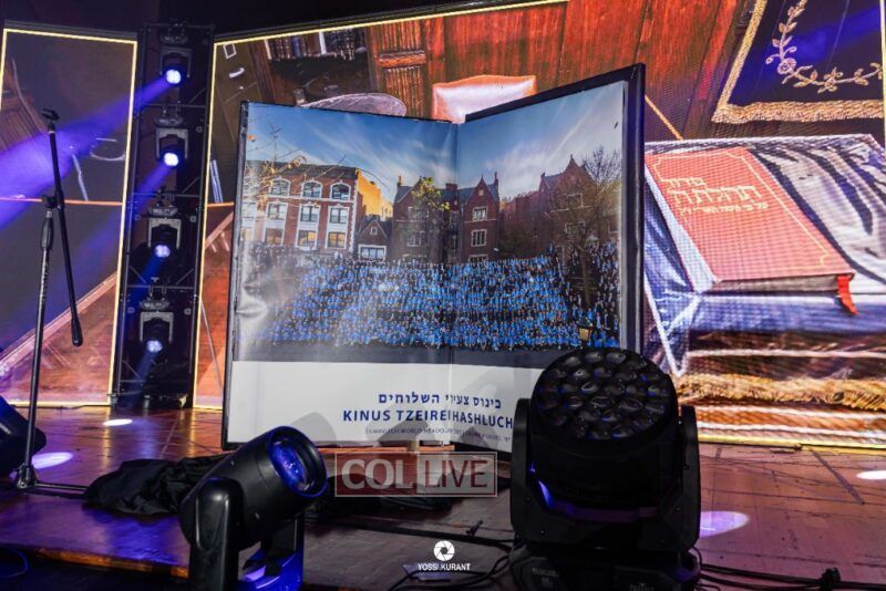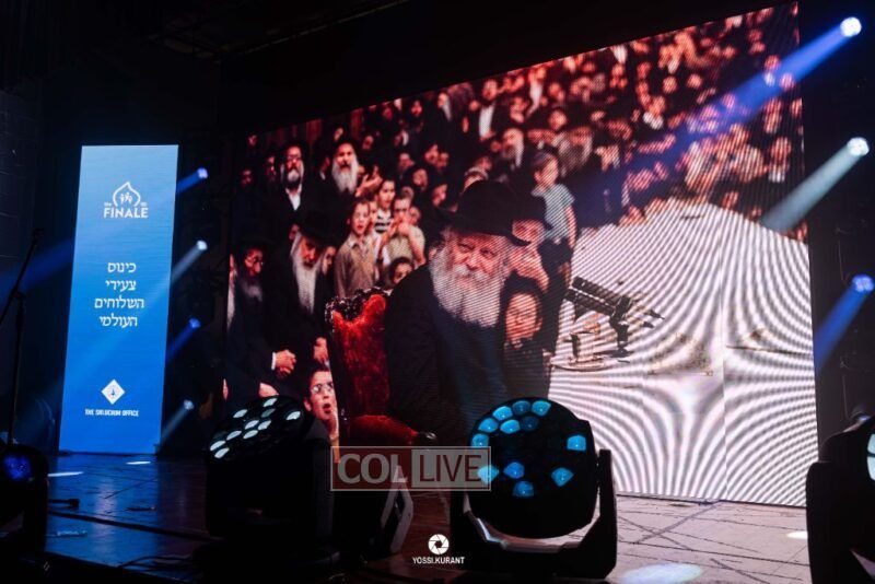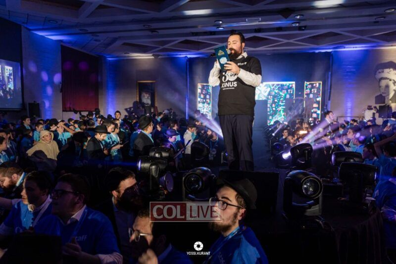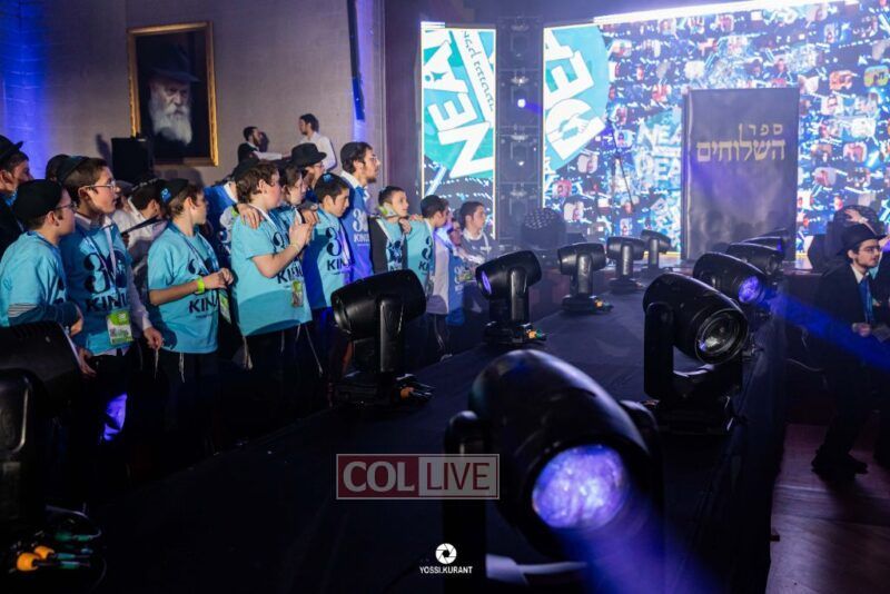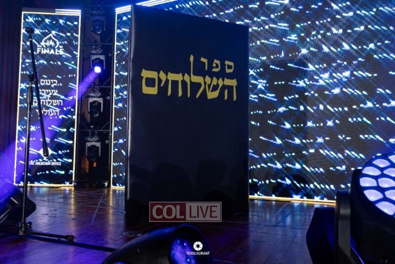 A stunning presentation was shown highlighting the Sefer Hashluchim and its importance to the Rebbe and ended with a massive real life Sefer Hashluchim revealed on stage with this year’s Kinus group photo.
