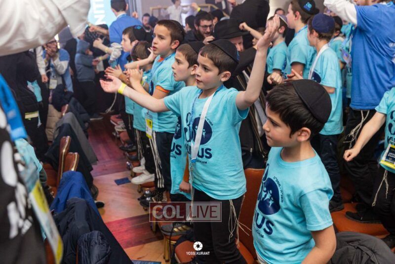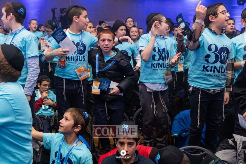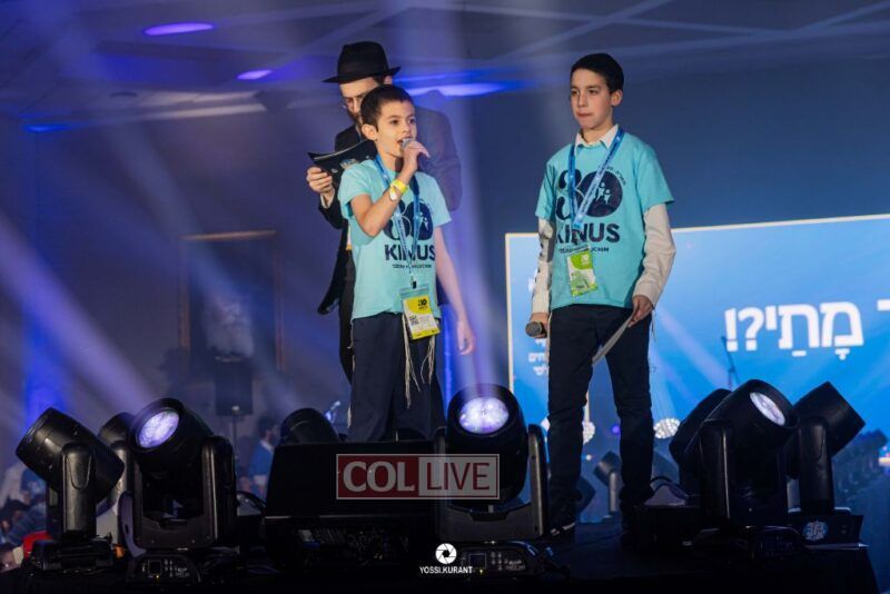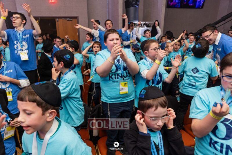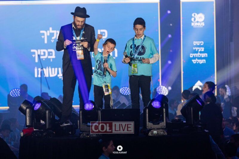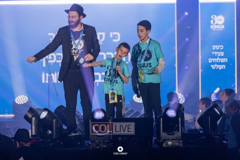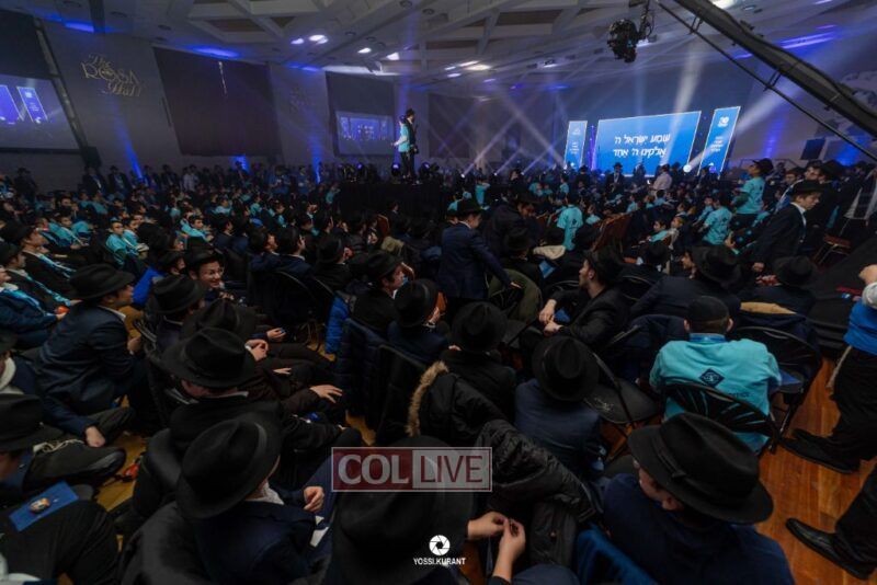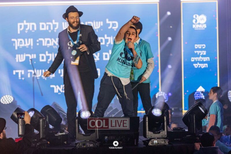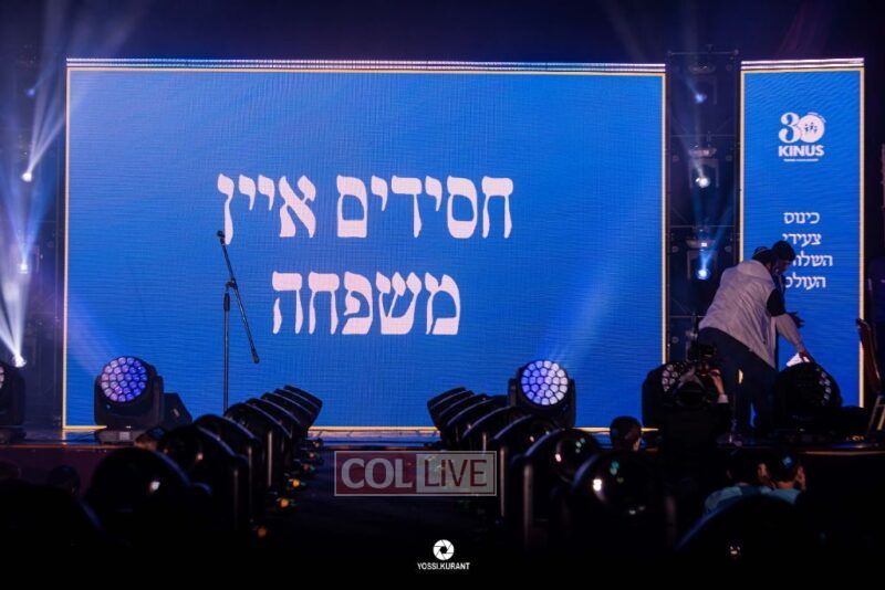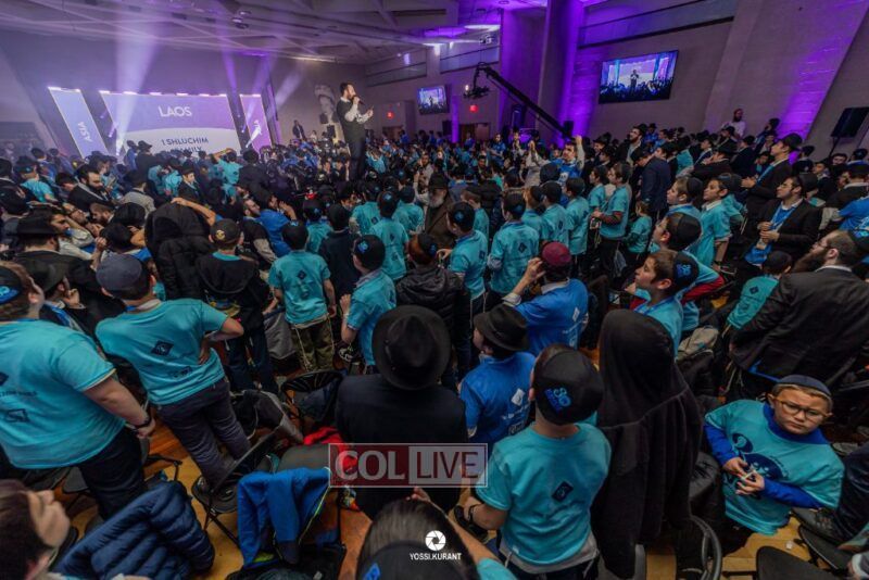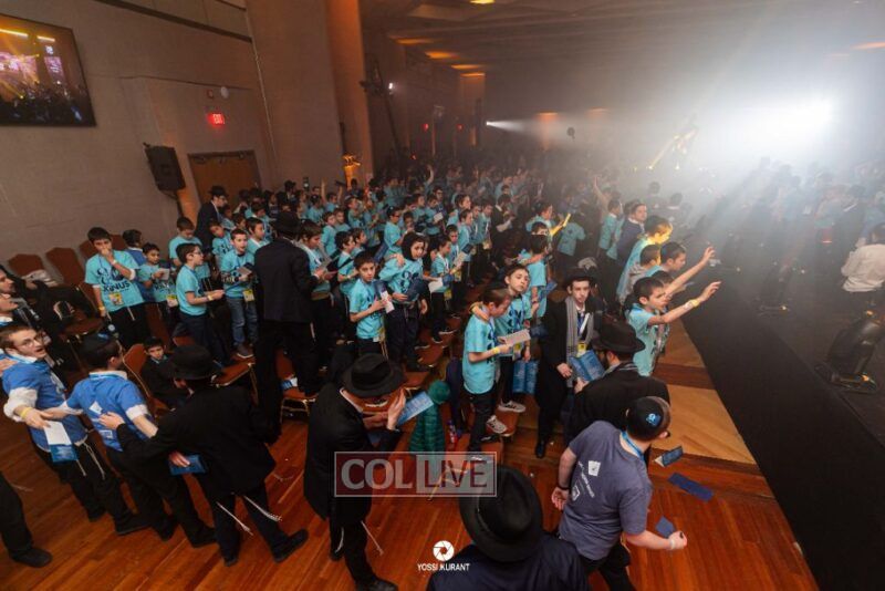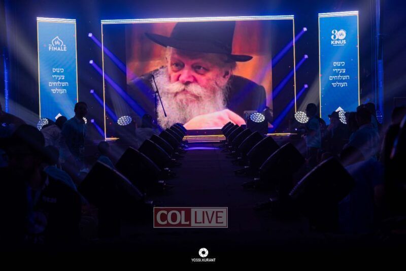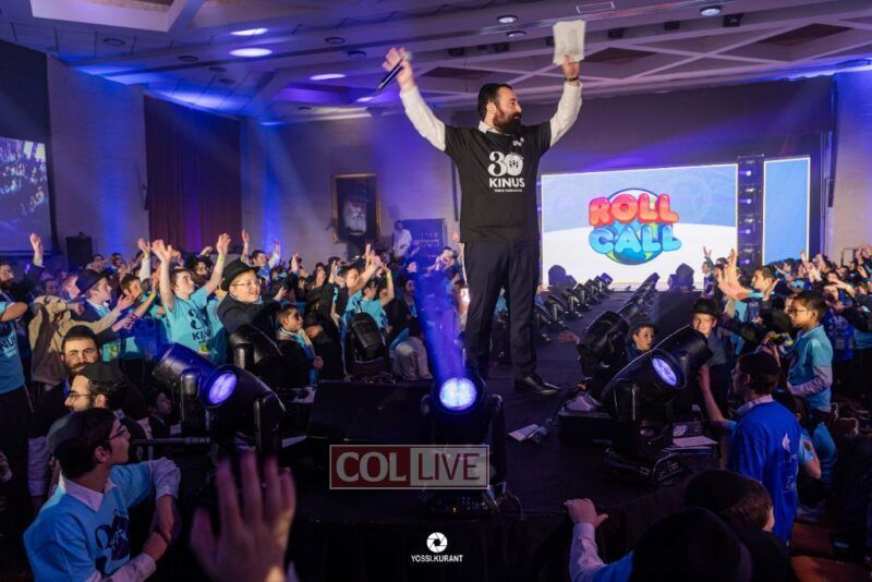 A stunning presentation was shown highlighting the Sefer Hashluchim and its importance to the Rebbe and ended with a massive real life Sefer Hashluchim revealed on stage with this year’s Kinus group photo.
