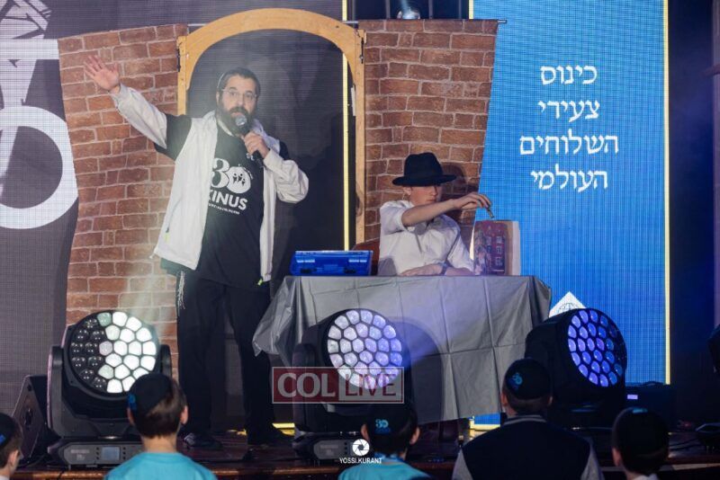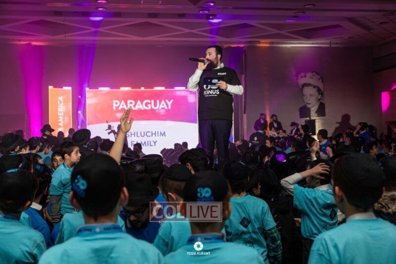 Surprise guest Shliach Rabbi Meir Geisinsky hosted a live, interactive Shlichus themed game show before the powerful story of how Young Shliach Shimi Oirechman received a dollar from the Rebbe was shown.