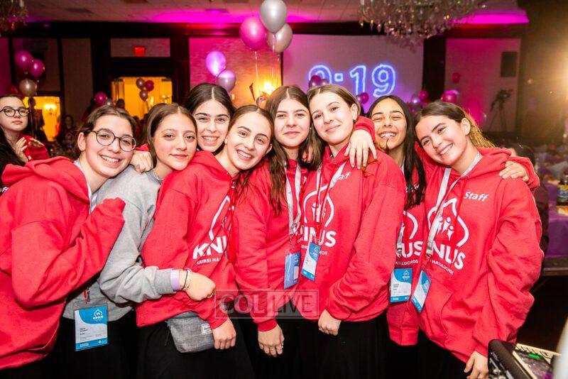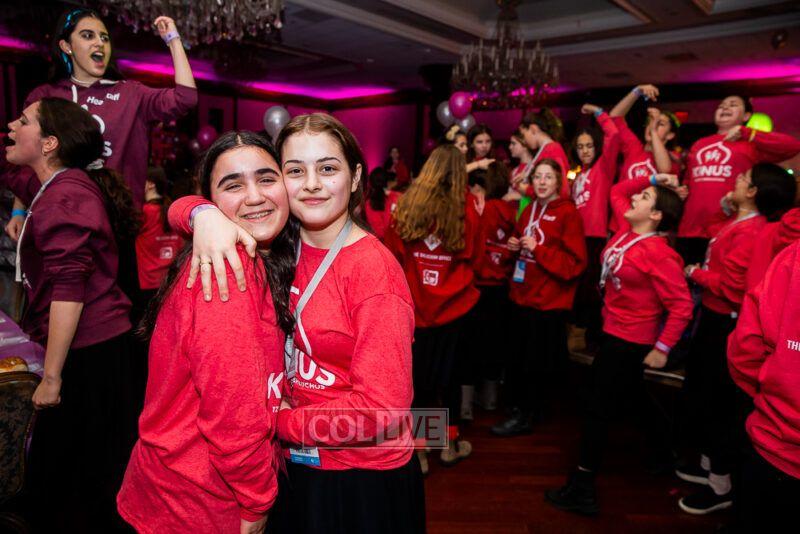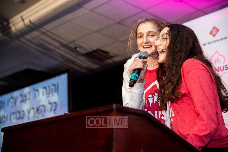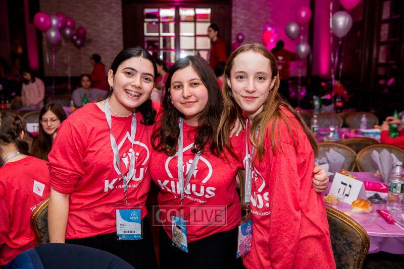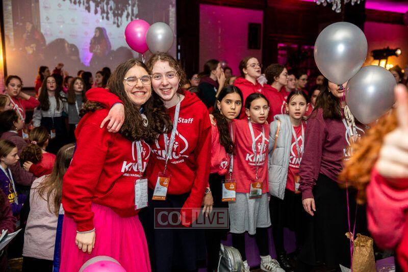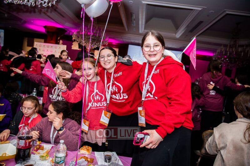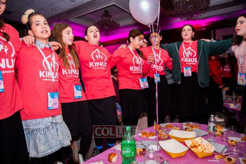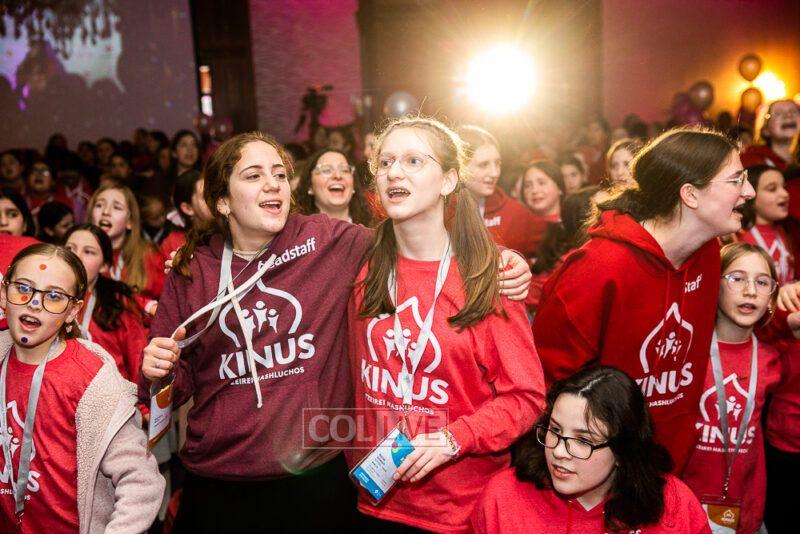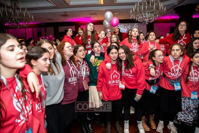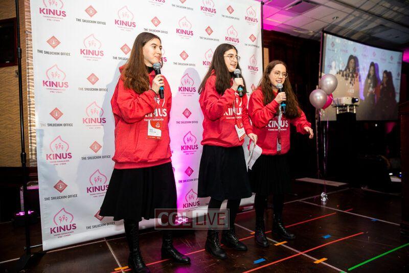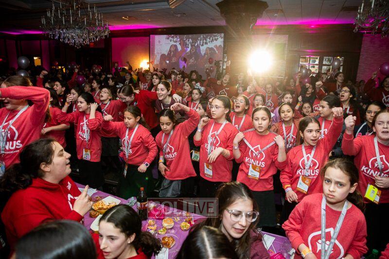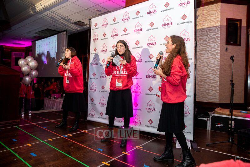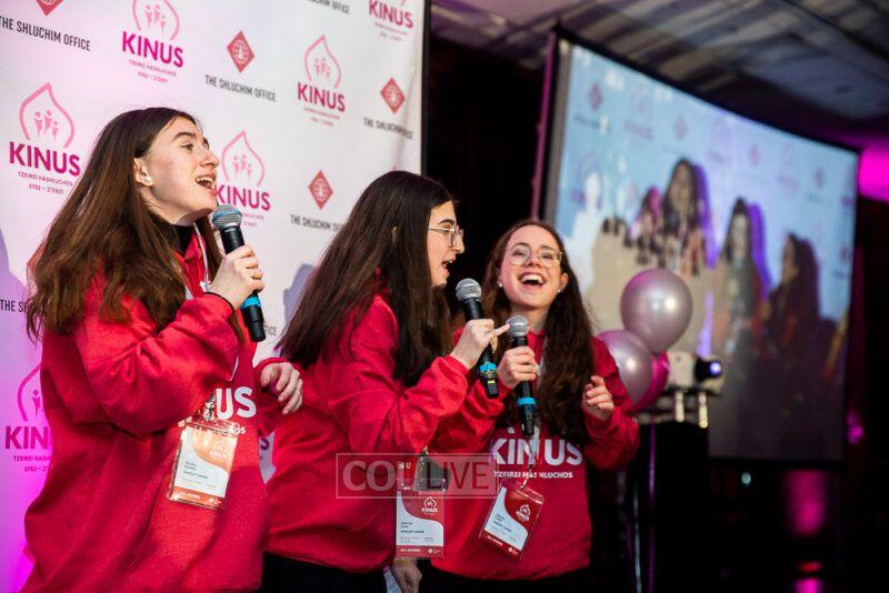 Guest singers Mushka Bluming, Chayale Groner and Shternie Levin took the stage, singing Kinus hits and Niggunim joined together by all the Young Shluchos.