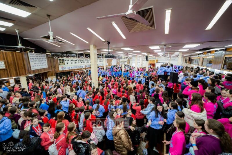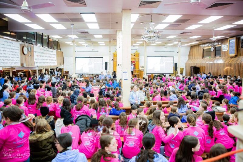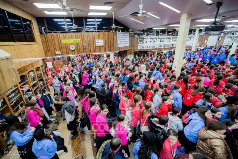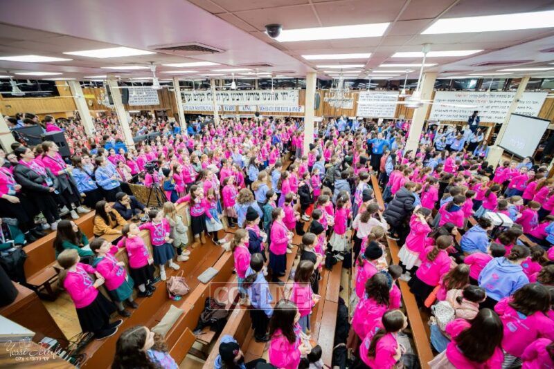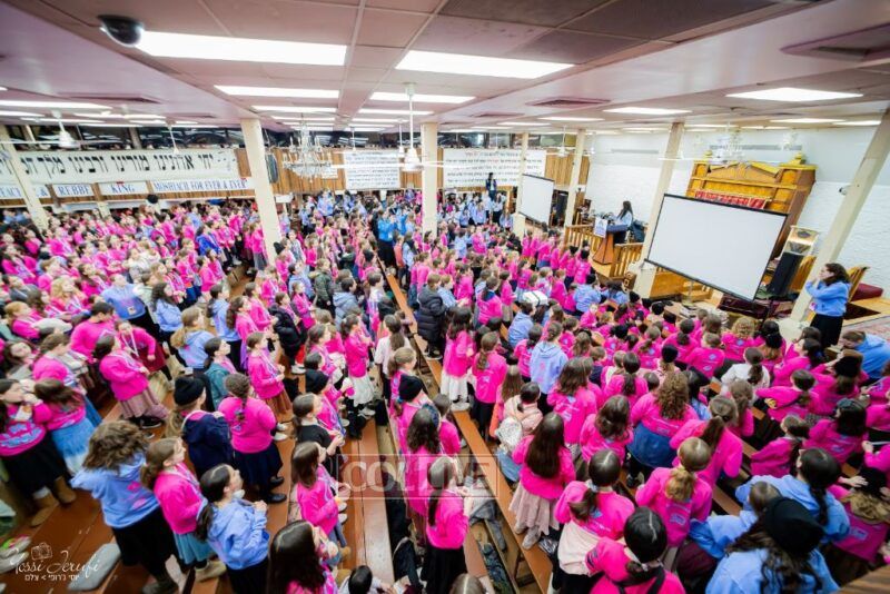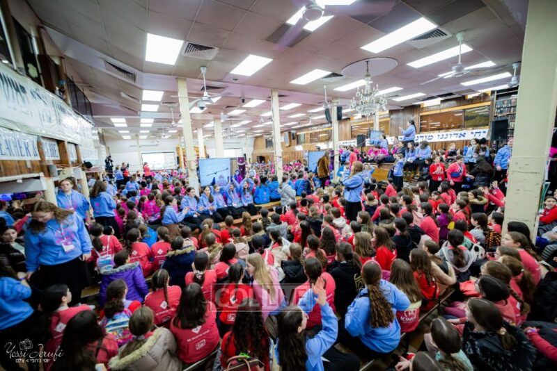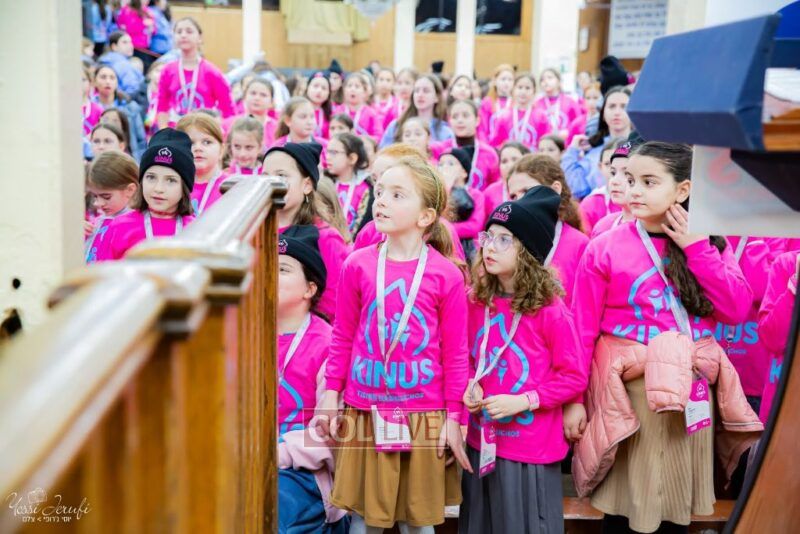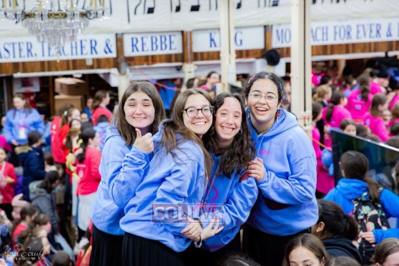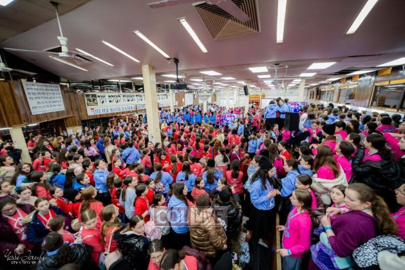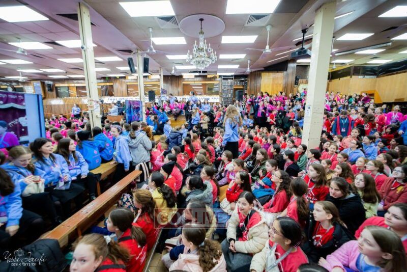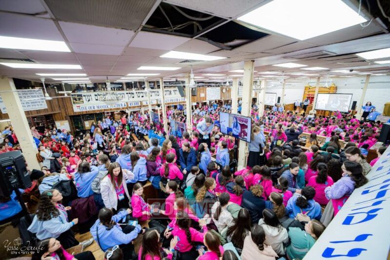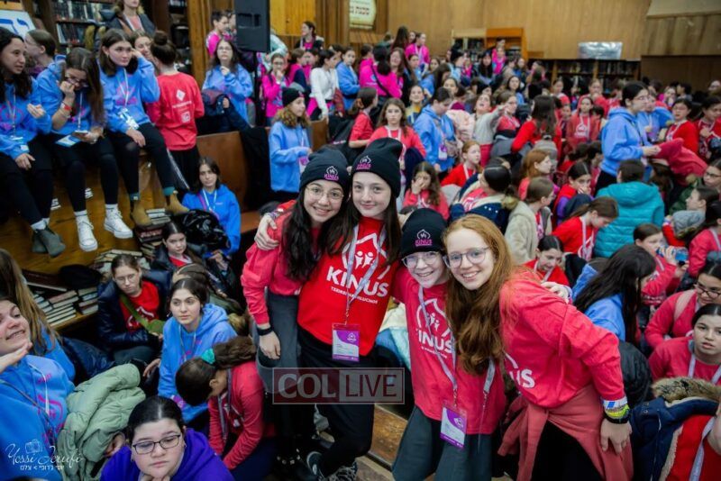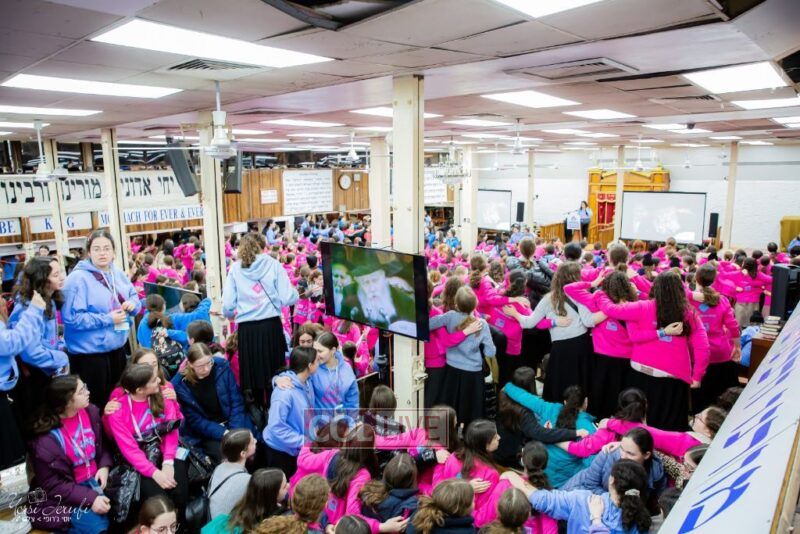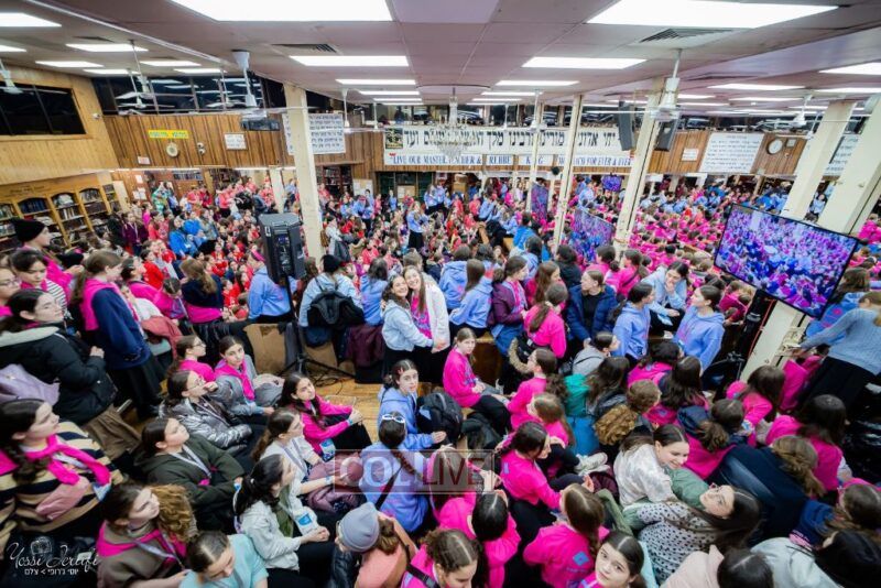Young Shluchos participating in the Kinus Tzeirei Hashluchos by the Shluchim Office gathered for a spirited Rally at 770 Eastern Parkway, after which they posed for their own group photo. Photos