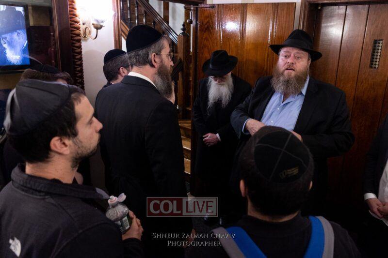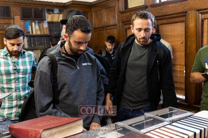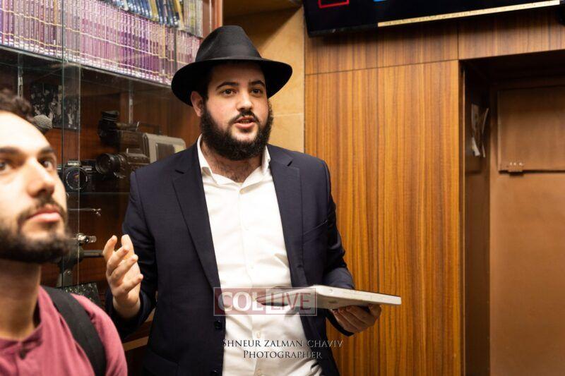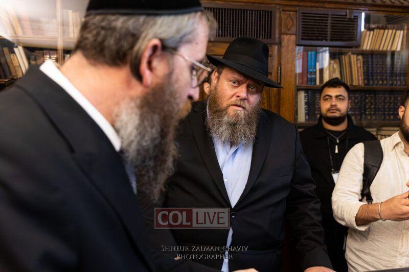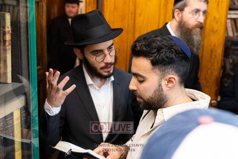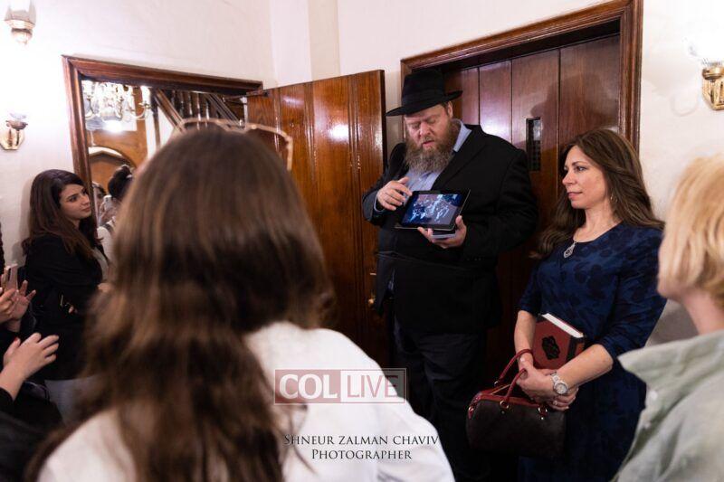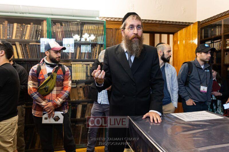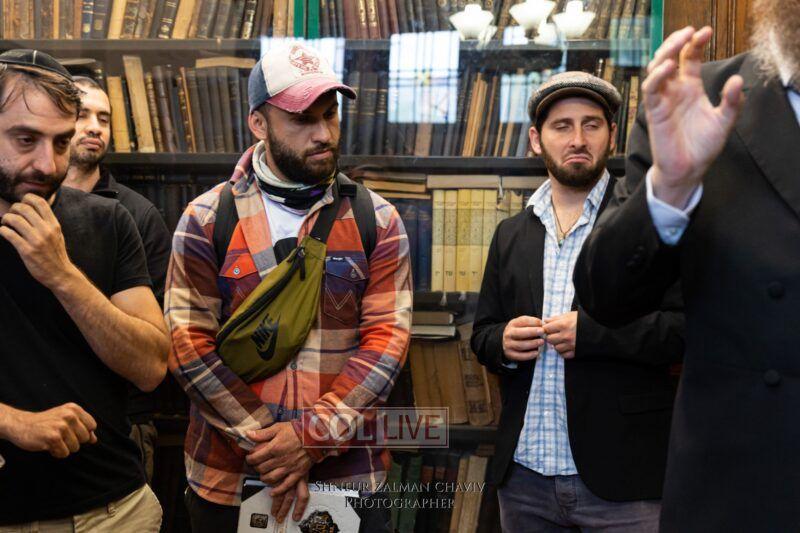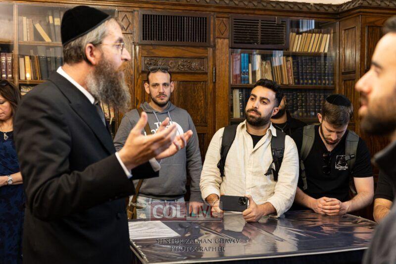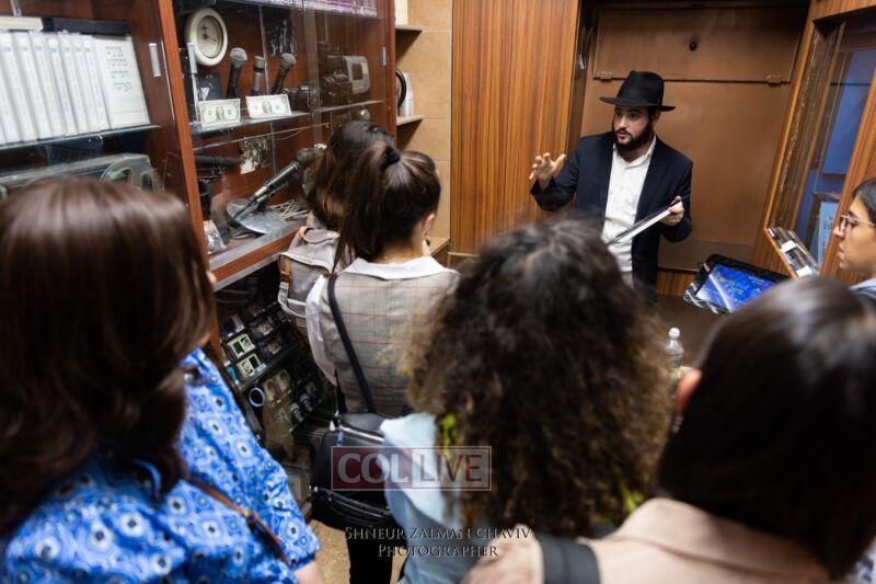 They first visited the Rebbe‘s room and the WLCC room where the Rebbe’s farbrengens were broadcast to communities around the world. Rabbi Chaim Baruch Halberstam and Rabbi Mendel Aizenbach led the tour and explained how the Rebbe’s talks were heard and then studied in depth by chassidim.