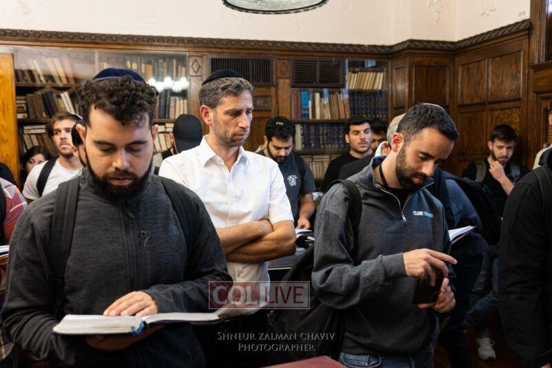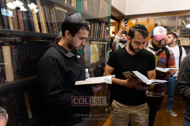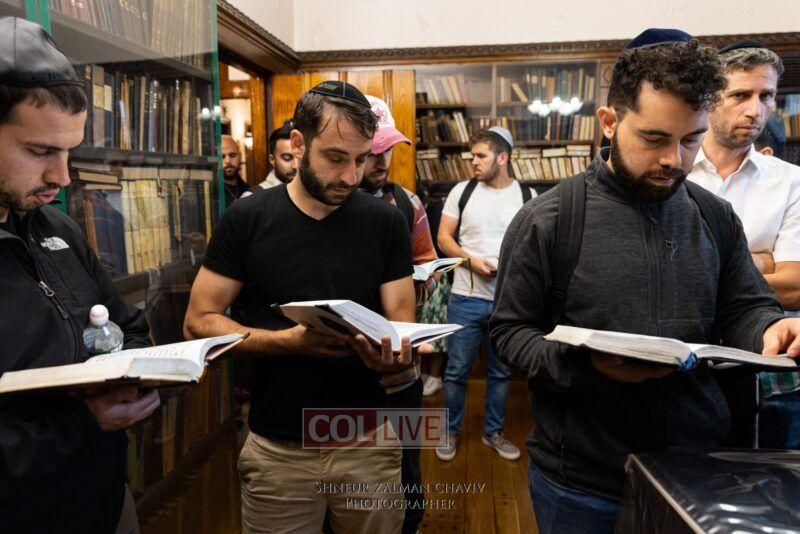 The groups then visited the main shul of 770, where they encountered the many bochurim learning Gemara as part of the Central Yeshiva Tomchei Tmimim Lubavitch, and saw the ongoing loop of davening that happens there.
