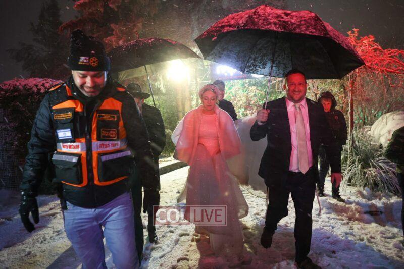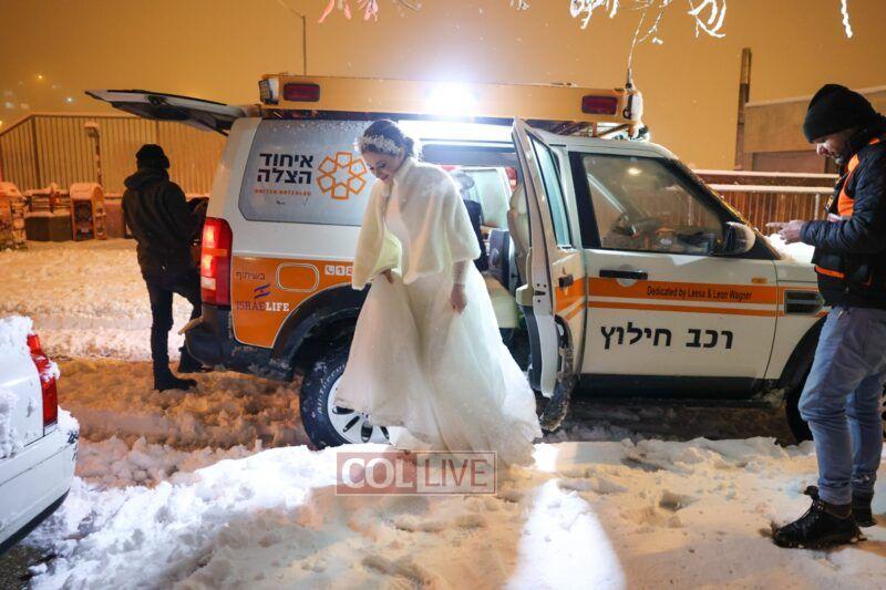 The hapless newlyweds tried to find a way home and someone reached out to emergency services to assist. United Hatzalah’s Dispatch Center who received the alert did not hesitate for a moment and sent volunteers with an emergency all-terrain vehicle to assist. In spite of the heavy snowfall, the volunteers traveled from Jerusalem to Ma’aleh HaHamisha and came to the assistance of the bride and groom.