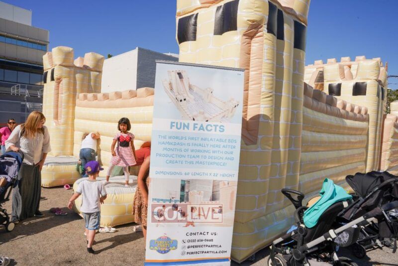 The hakhel event featured “The World’s First Inflatable Beis Hamikdash”, custom designed and created by Menachem Cohen of Perfect Party L.A. Both children and adults alike were amazed at this incredible and truly unique moon bounce that resembles the Beis Hamikdash.