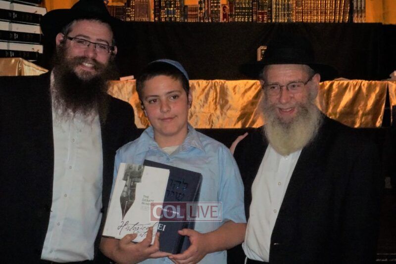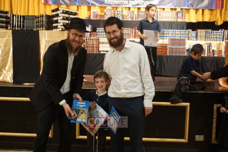 Rabbi Shmuel Schapiro, Principal of the Cheder’s middle school then presented awards to the top 3 achievers in the older grades, Avremel Heidingsfeld, Mendel Raigorodsky and Mendel Zaetz.