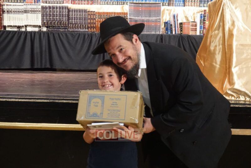 Afterwards each talmid came up to the stage to receive their prizes for their efforts.