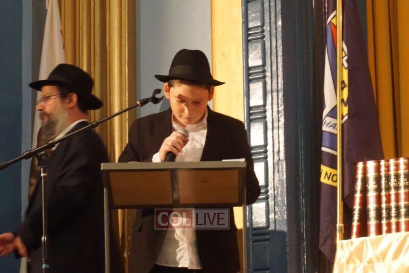 Rabbi Mendel Greenbaum, Menahel of the Cheder, then spoke and introduced Kitah Zayin talmid Menny Hecht who was mesayem the entire Shisha Sidrei Mishnah on behalf of the Talmidim and faculty of the Cheder, which was learned Liluy Nishmas Mrs Ruchie Stillman obm, affectionately known as the “Bubby of the Cheder” and coordinated the Mishnayos Baal Peh award ceremony with all her heart and soul for many years.