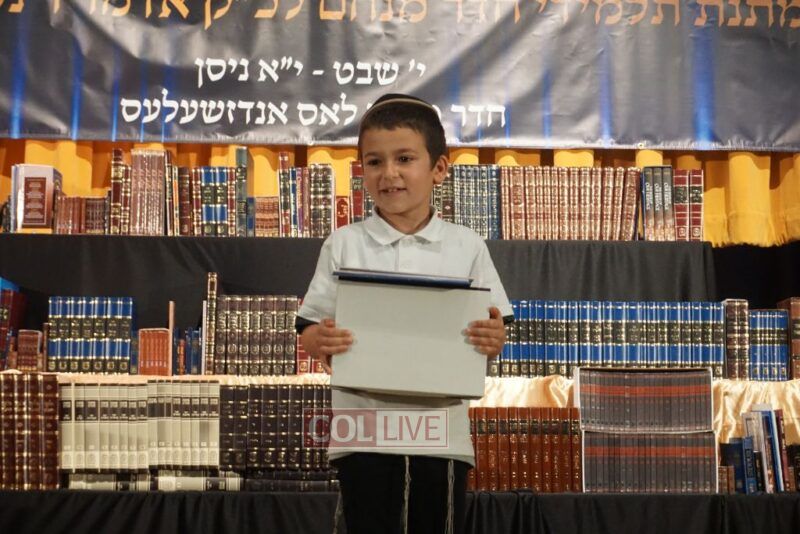 On Sunday, 29 Sivan, talmidim of Cheder Menachem Los Angeles and their mechanchim, families, and friends gathered together to award the Talmidim for their achievements in Mishnayos Baal Peh. The Mishnayos Baal Peh program ran from Yud Shvat and continued until Yud Alef Nissan, as a present to the Rebbe.