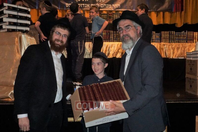 Rabbi Heidingsfwld then made a special presentation to 3 talmidim who learned the first 12 perakim of Tanya Baal peh, Arye Leib Kramer, Mendel Zaetz and Levi Yitzchok Hecht.