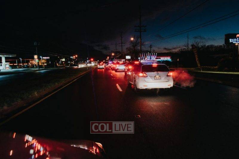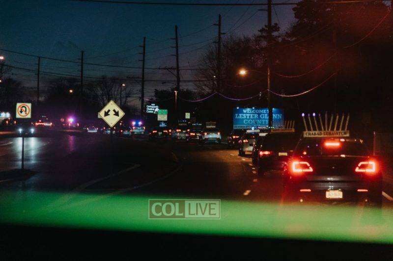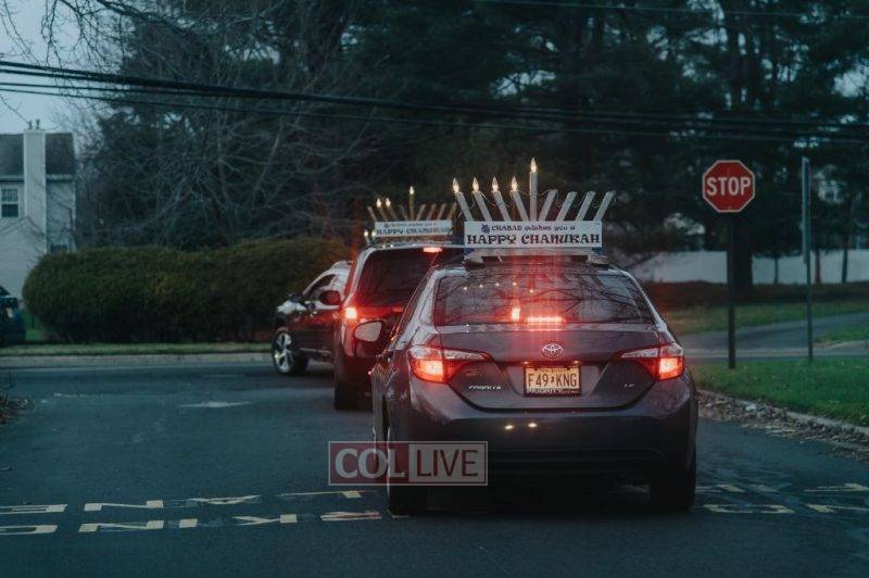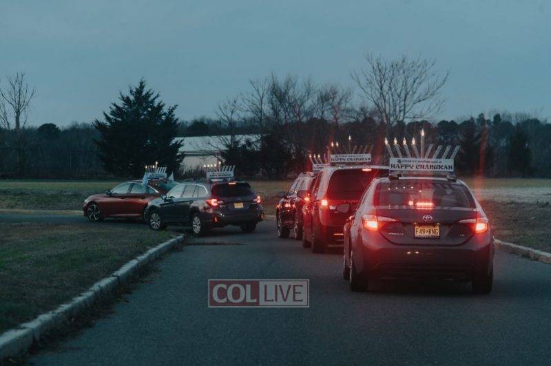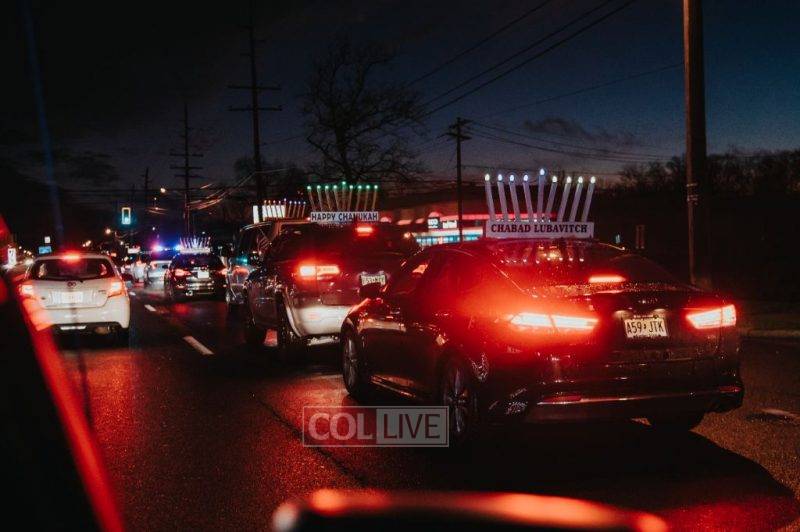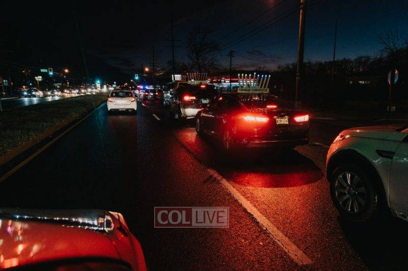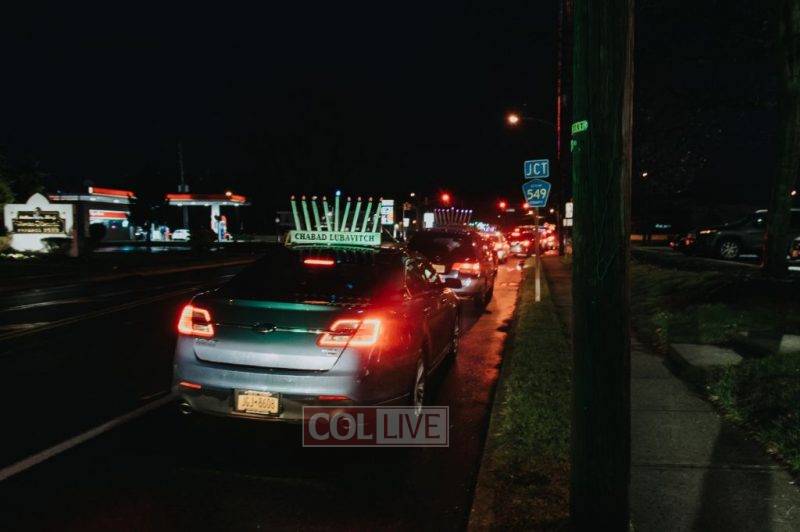 Approximately 15 cars took part in the Jackson lineup under the direction of Rav Shmuel Naparstek of Jackson, which was accompanied by a Jackson Police Department escort as it drove through the township, followed by a car menorah lighting.