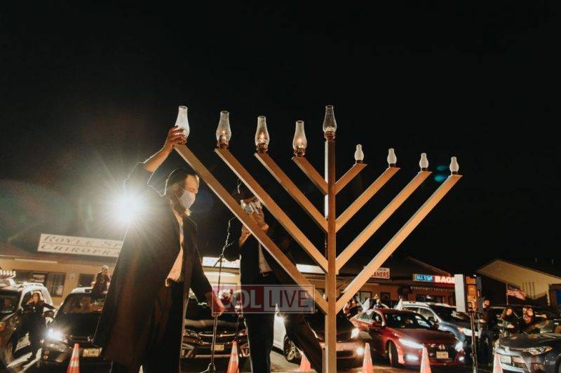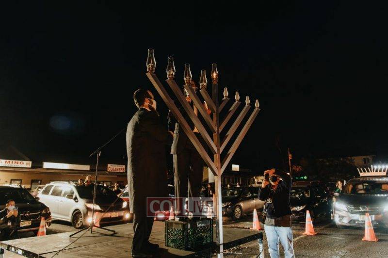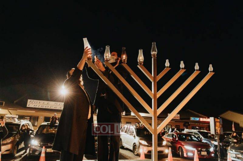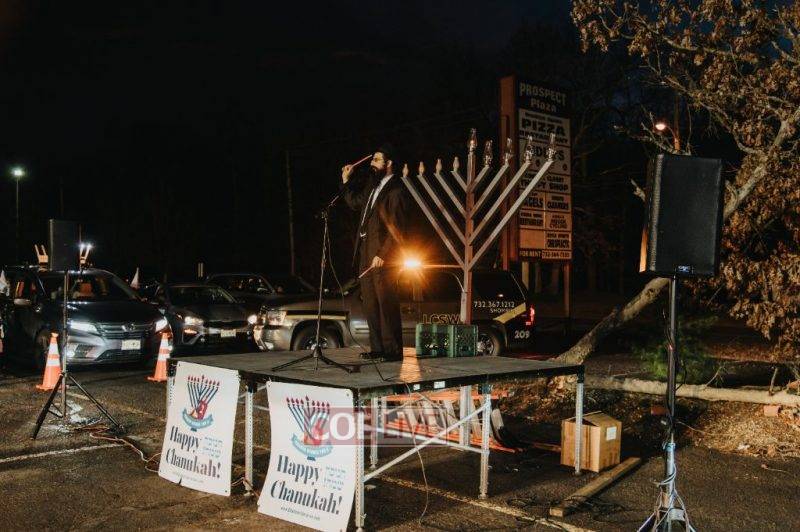 More than 30 cars participated in the Toms River car parade headed by Rav Moshe Gourarie of Chabad of Toms River and accompanied by the Toms River Police Department and the Pleasant Plains Volunteer Fire Department. Chanukah also saw local shluchim lighting menorahs with area mayors at socially distant events that were publicly viewable via Zoom.