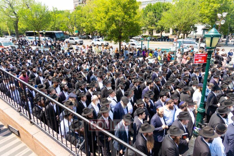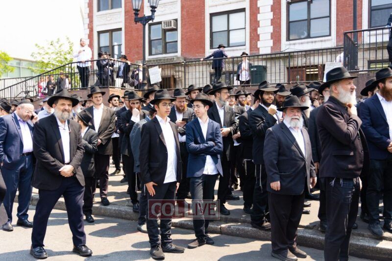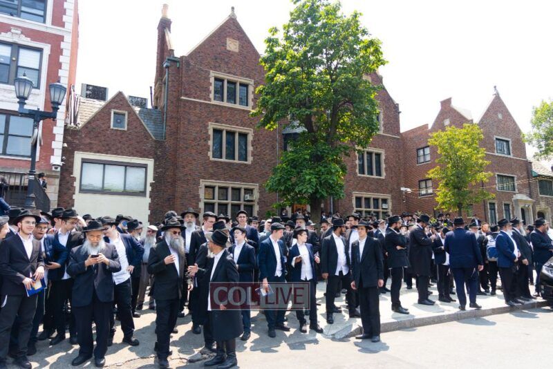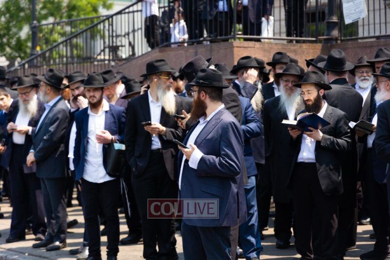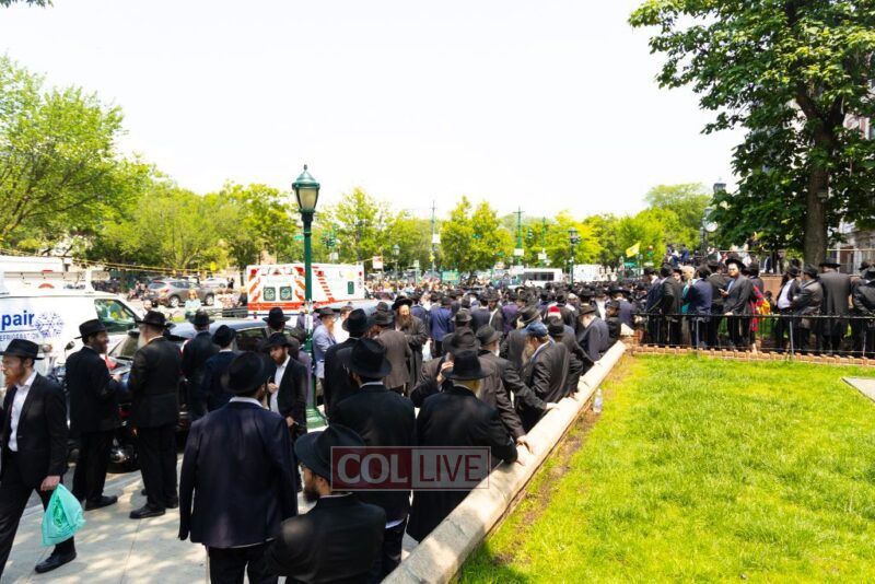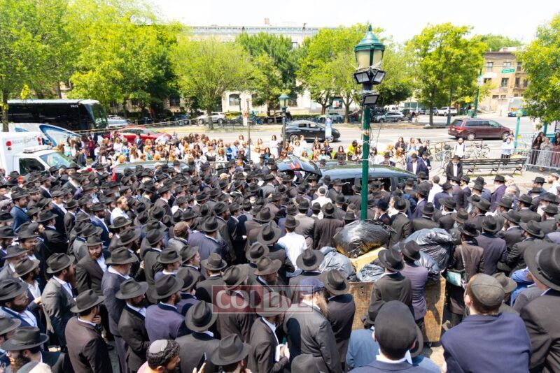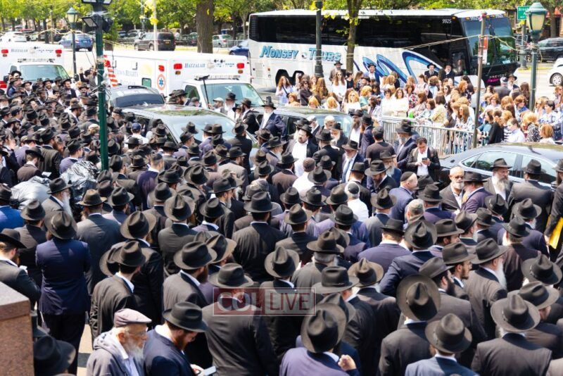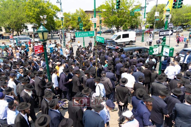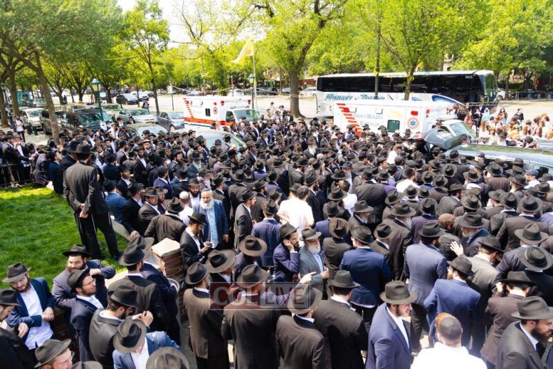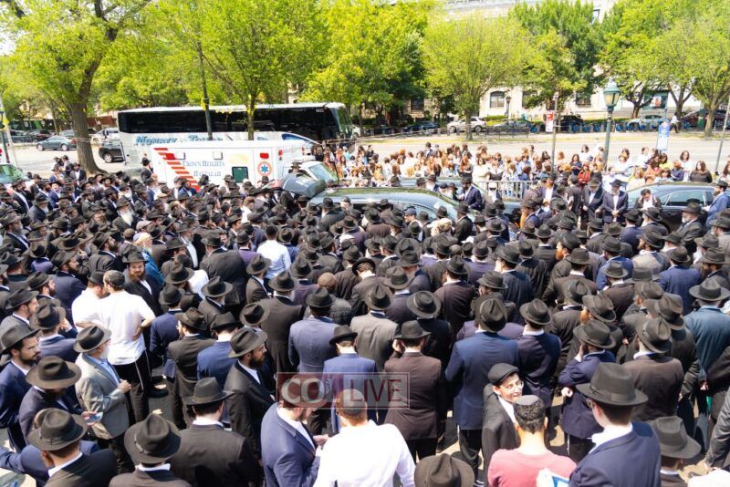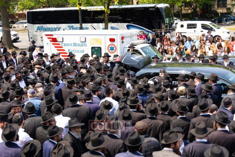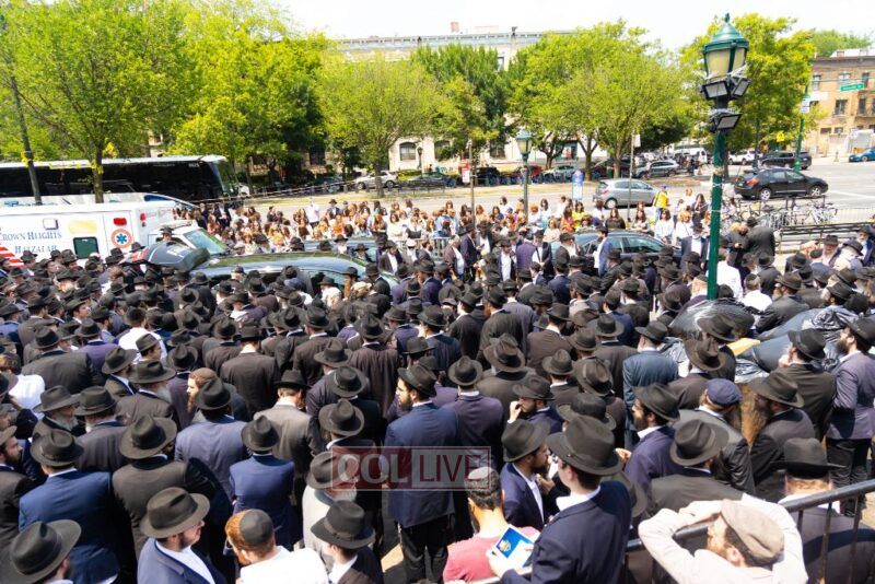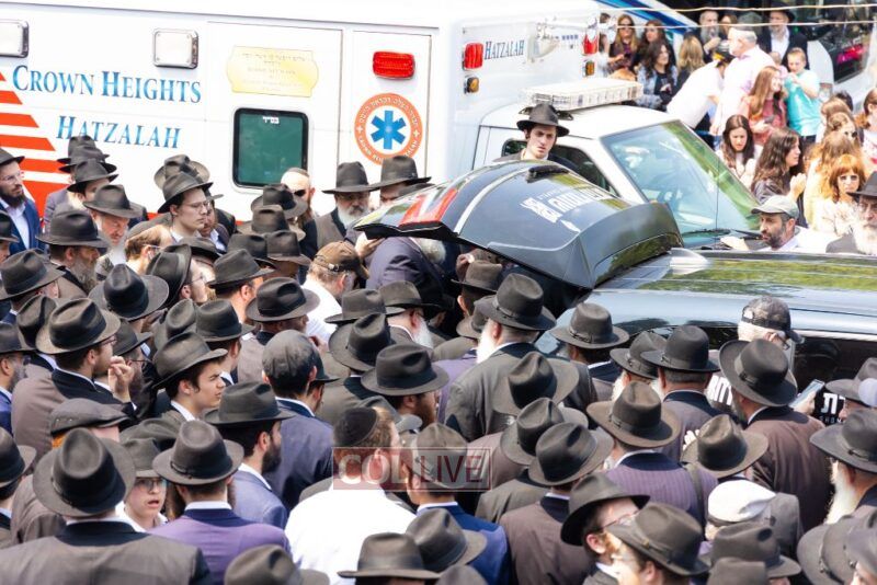 A large crowd attended the Levaya of Rabbi Meir Yehuda Yisroel Harlig obm, a Gabbai of 770 who served as the Rebbe's Mashbak, as it passed by 770 on the way to burial on Monday.