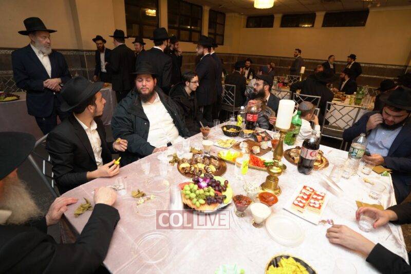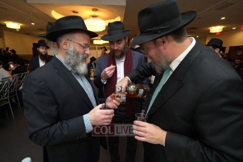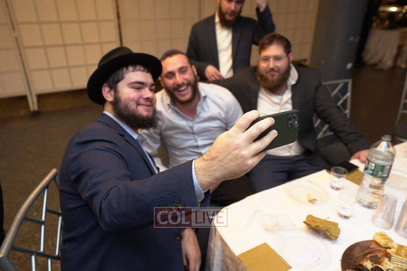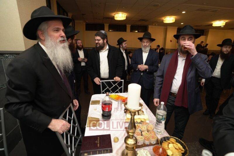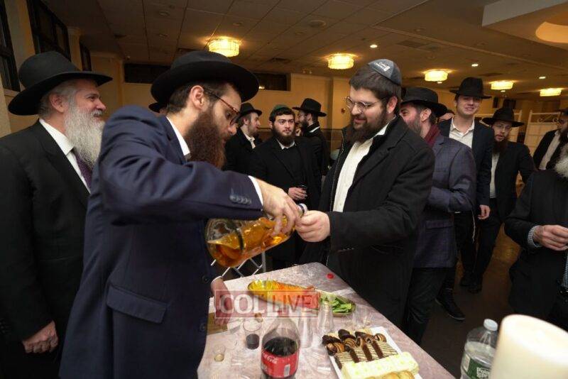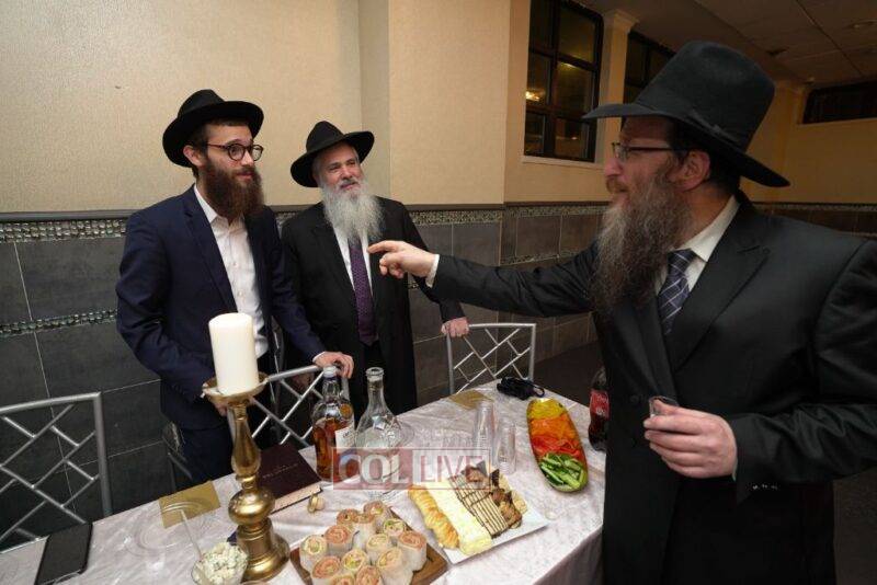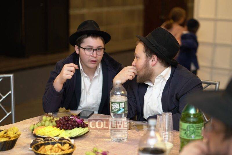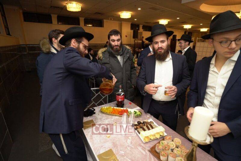 The L'Chaim of Yossi Bryski of Agoura Hills, CA and Leah Wineberg of Cape Town, South Africa at Lubavitch Yeshiva Hall in Crown Heights. Photos