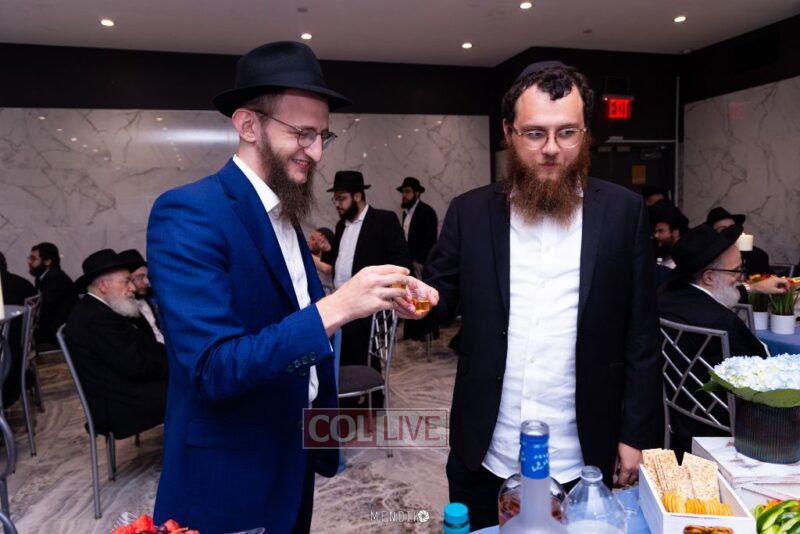 The L'Chaim of Laizer Oberlander of Budapest, Hungary and Mussie Itzinger of London, England took place at Lubavitch Yeshiva Hall in Crown Heights. Photos